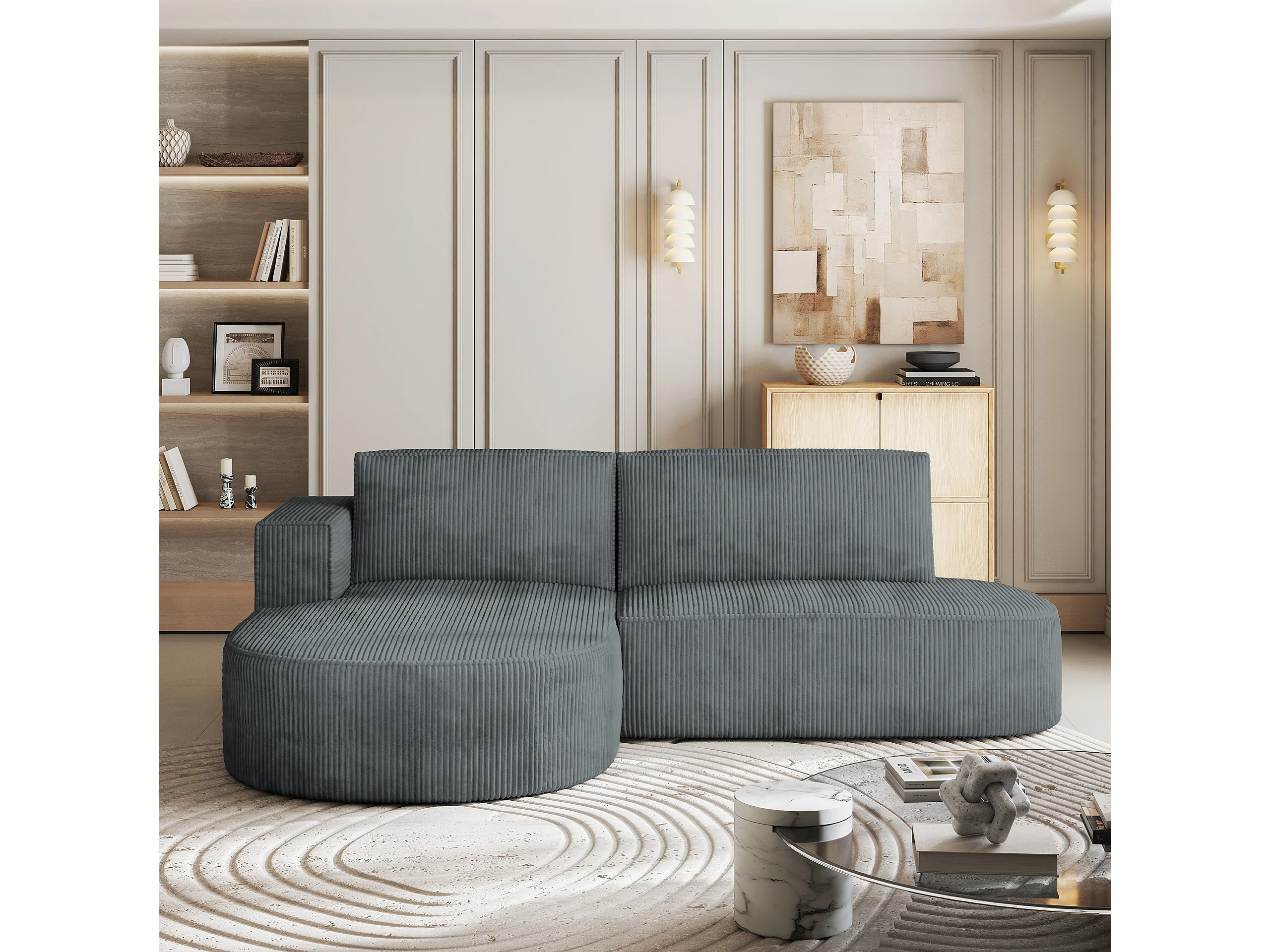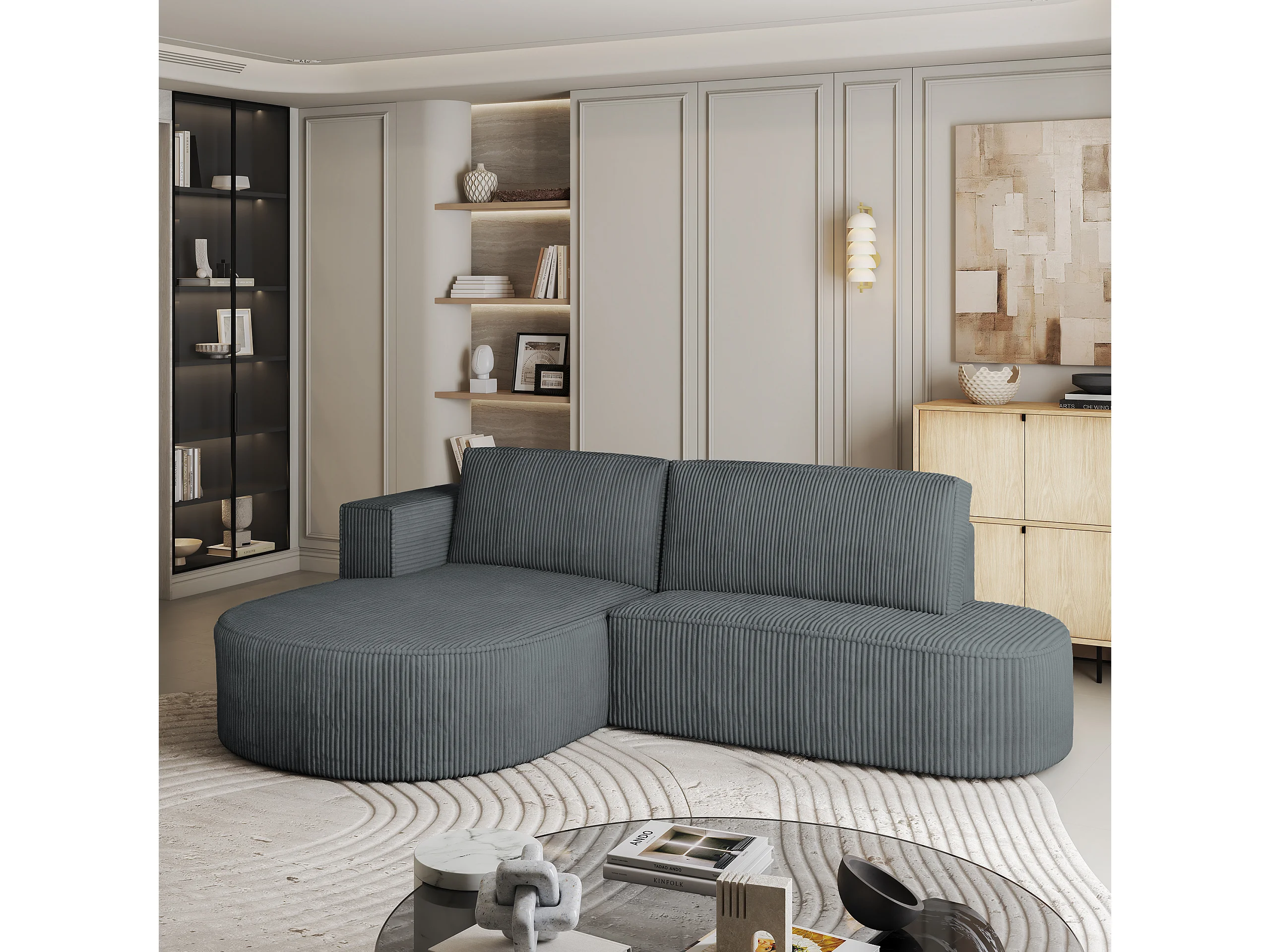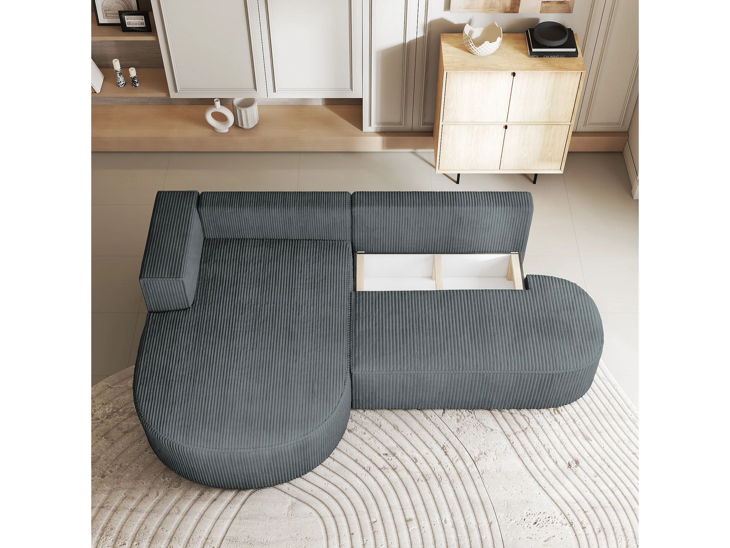 Canapé d'angle CORTIO Gris en velours côtelé avec fonction de couchage