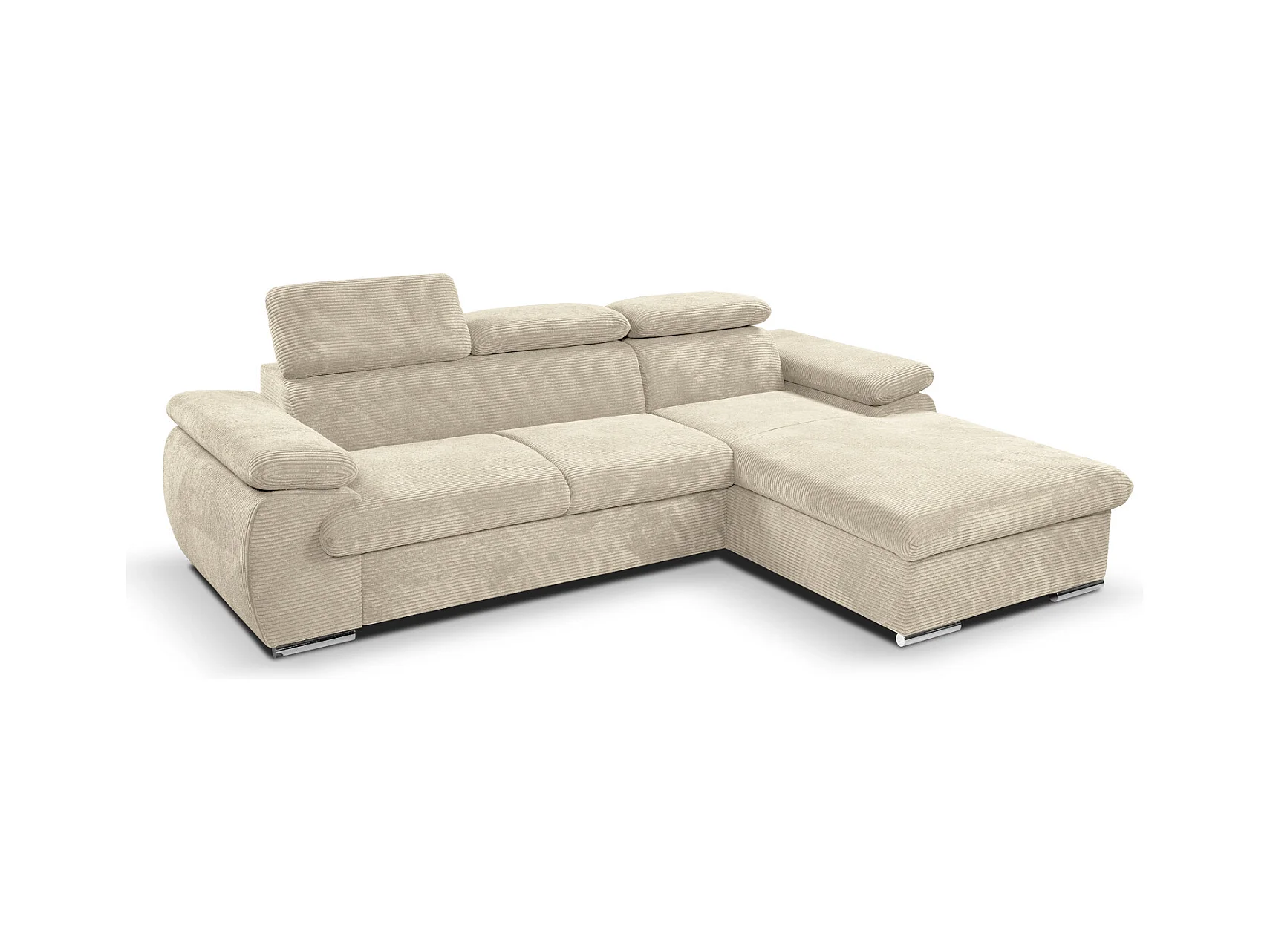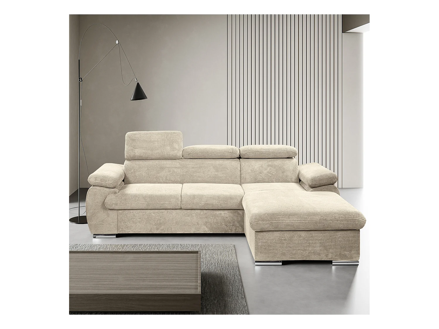 Canapé d'angle coté droit convertible velours côtelé beige avec têtières - KOST