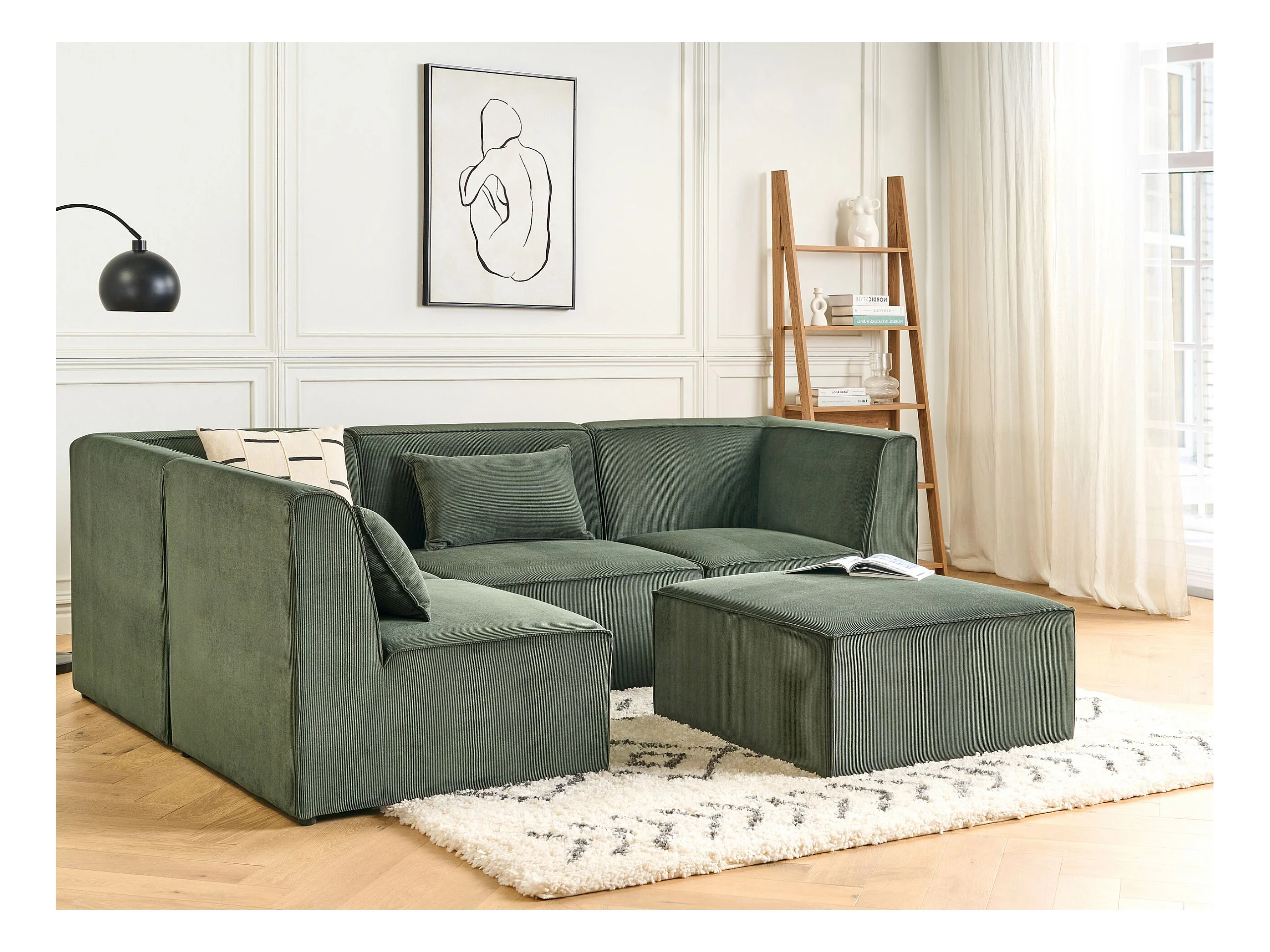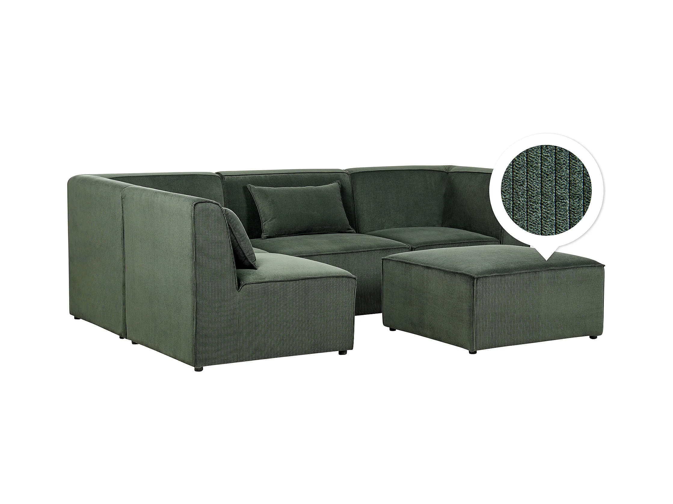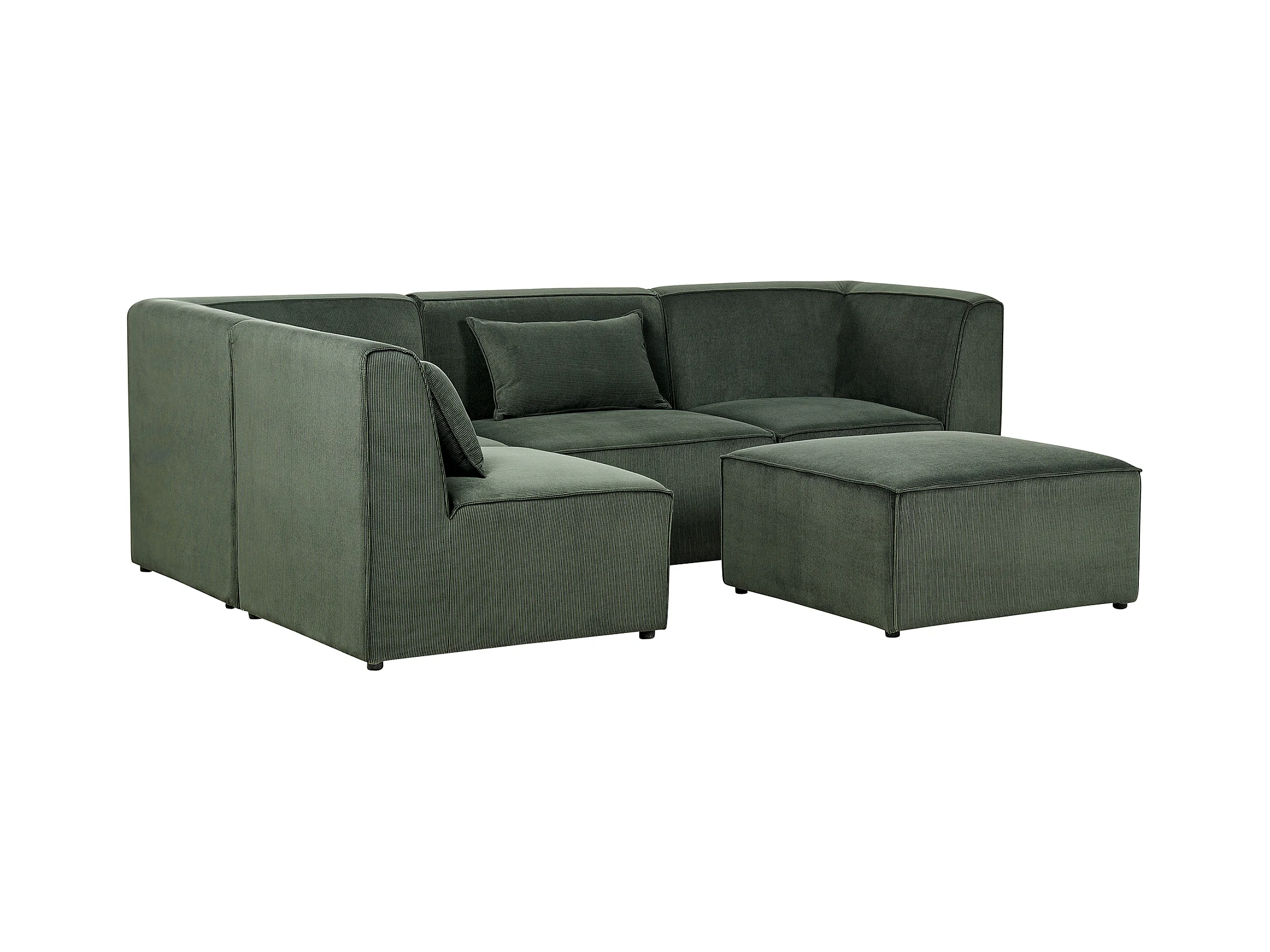 Canapé d'angle modulable 4 places LEMVIG Velours côtelé Vert foncé avec ottoman Côté droit