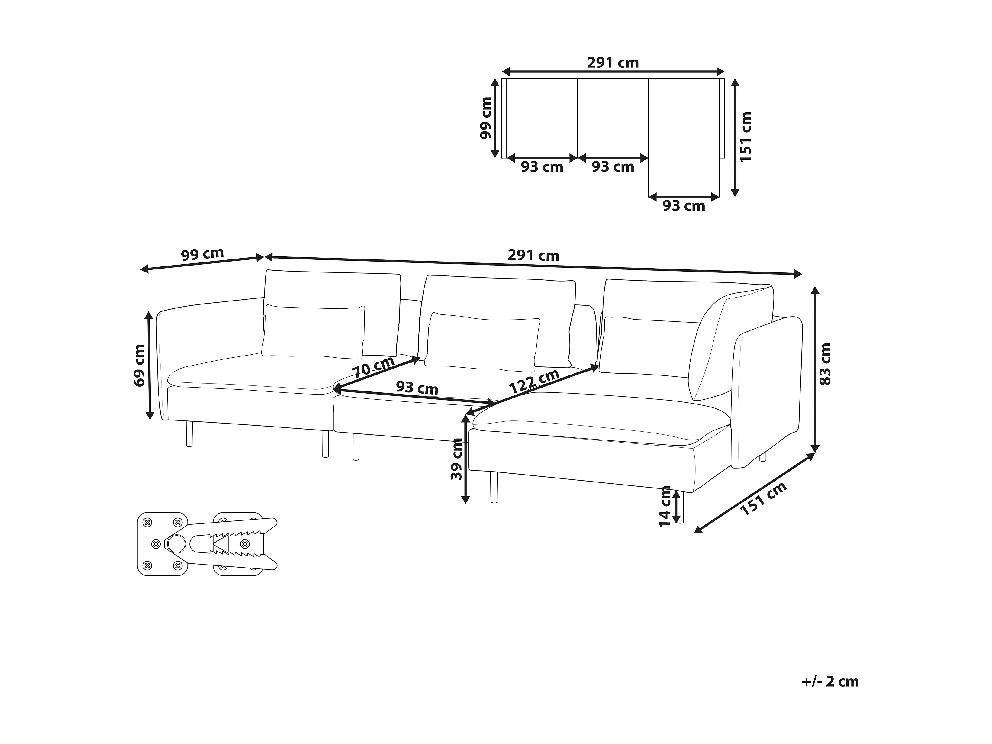 Canapé d'angle modulable 3 places EGERIS Tissu Beige clair Côté droite