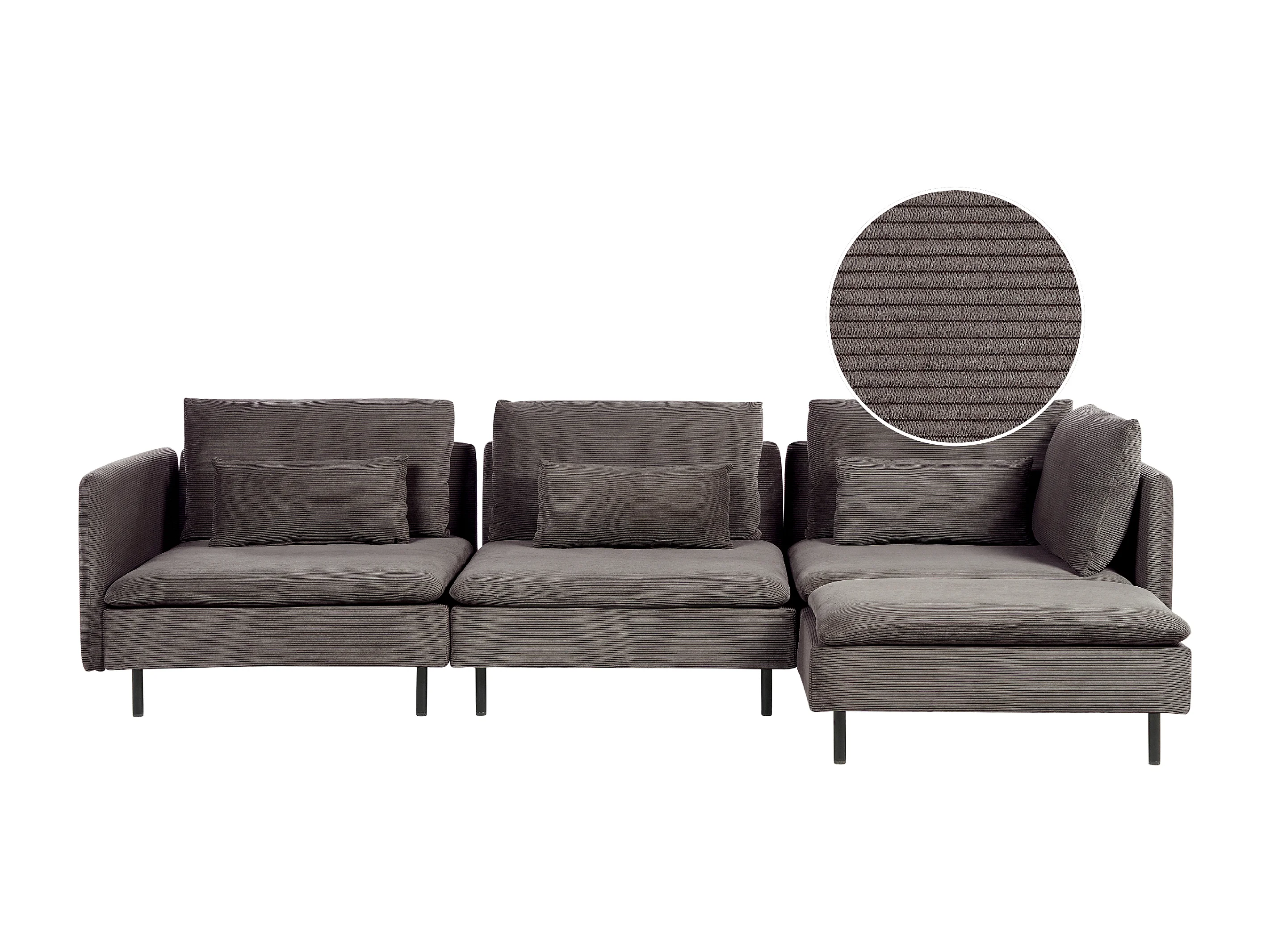 Canapé d'angle modulable 3 places EGERIS Velours côtelé Marron foncé Côté droite