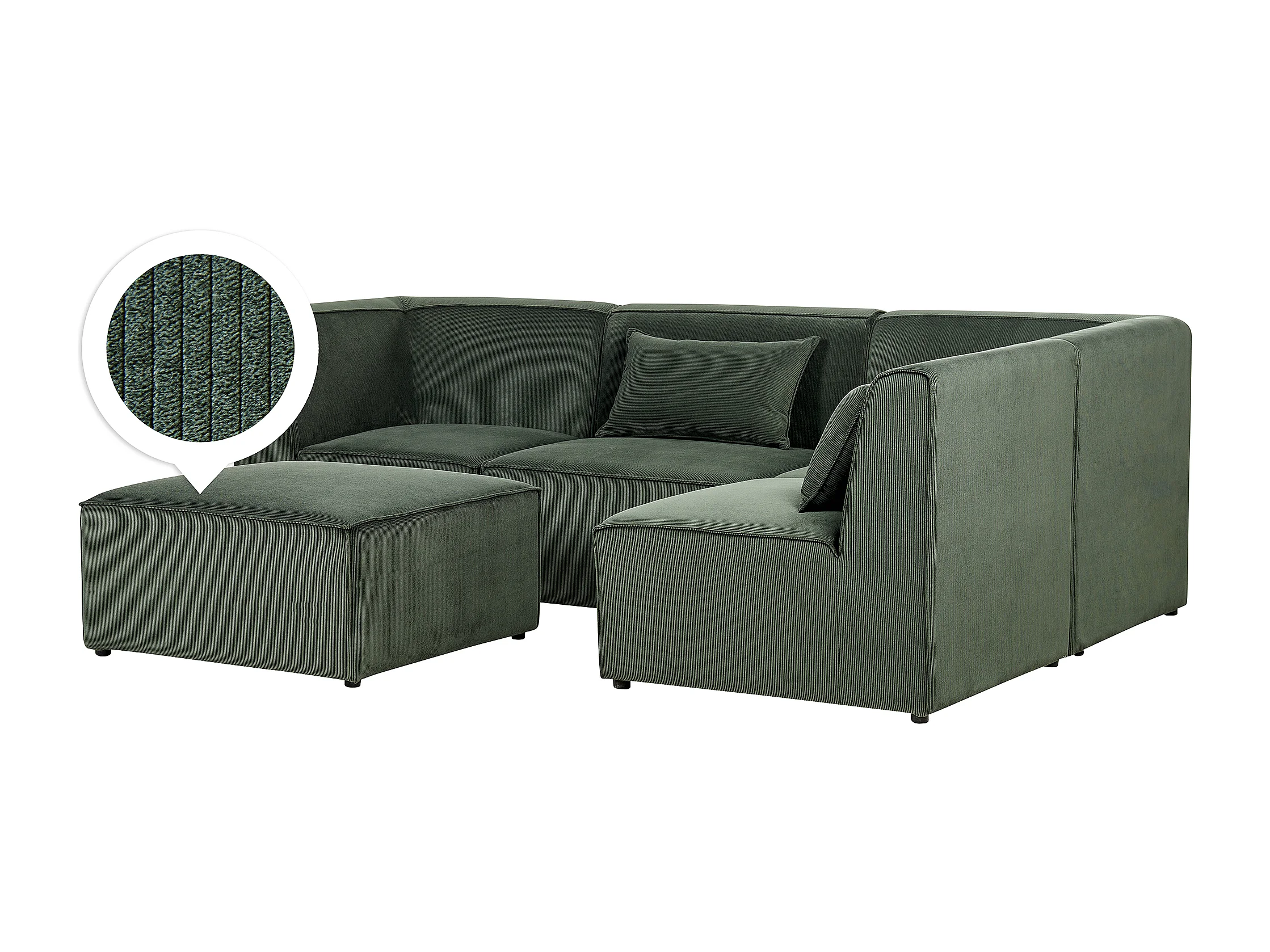 Canapé d'angle modulable 4 places LEMVIG Velours côtelé Vert foncé avec ottoman Côté gauche
