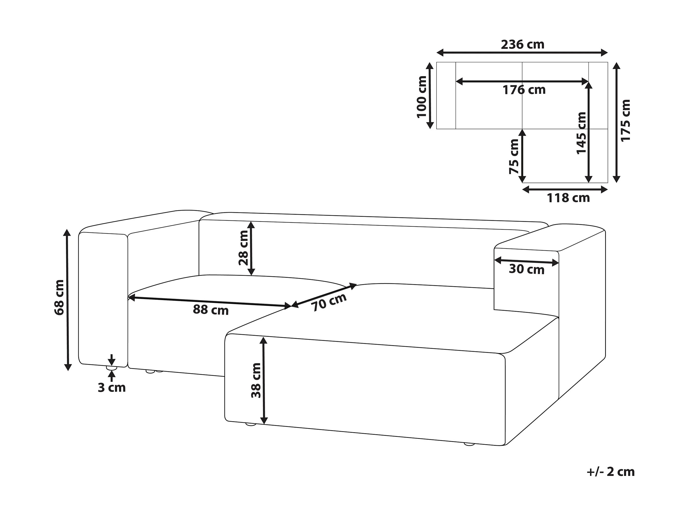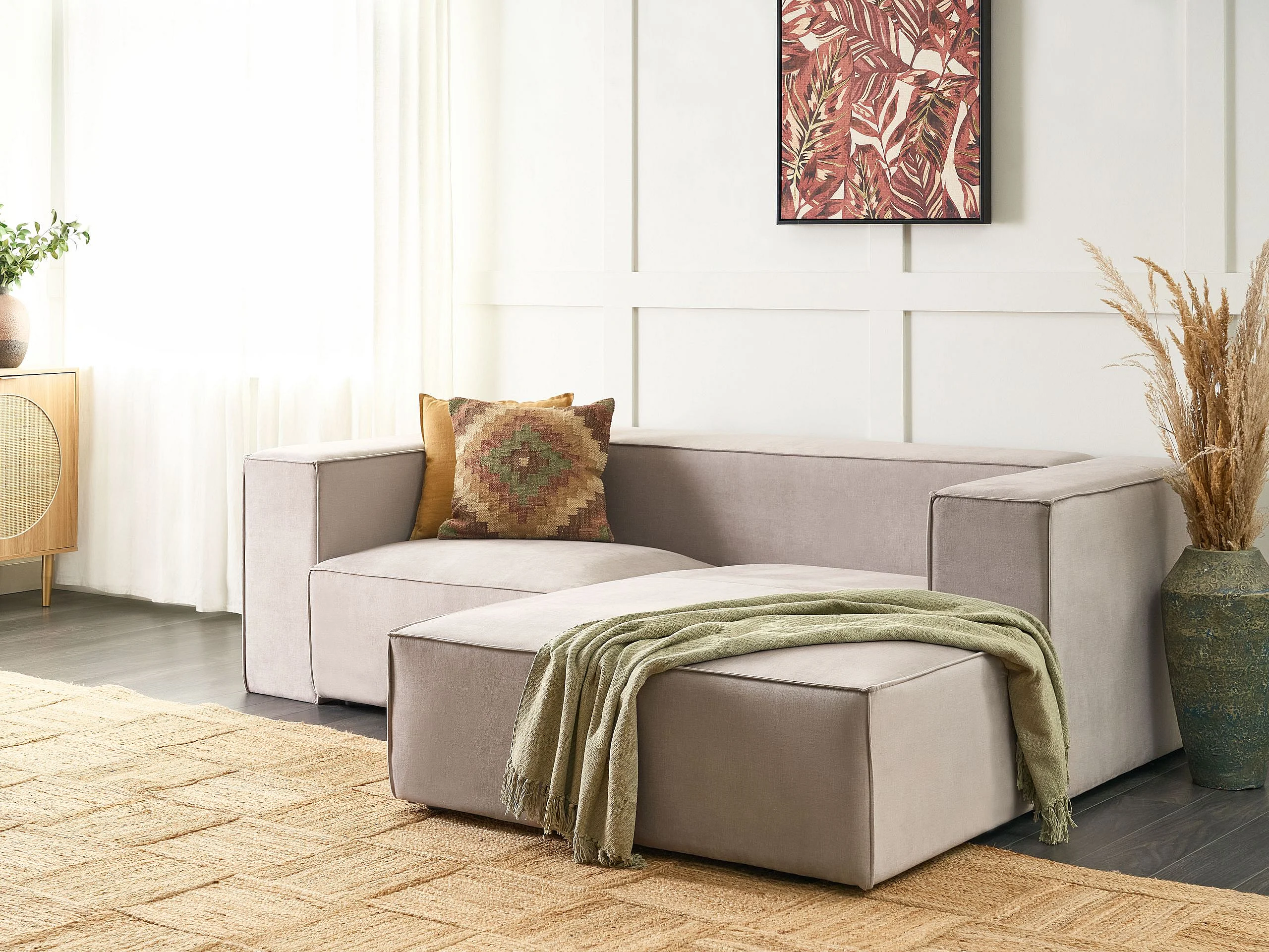 Canapé d'angle 2 places VERNON Velours Taupe Côté droite