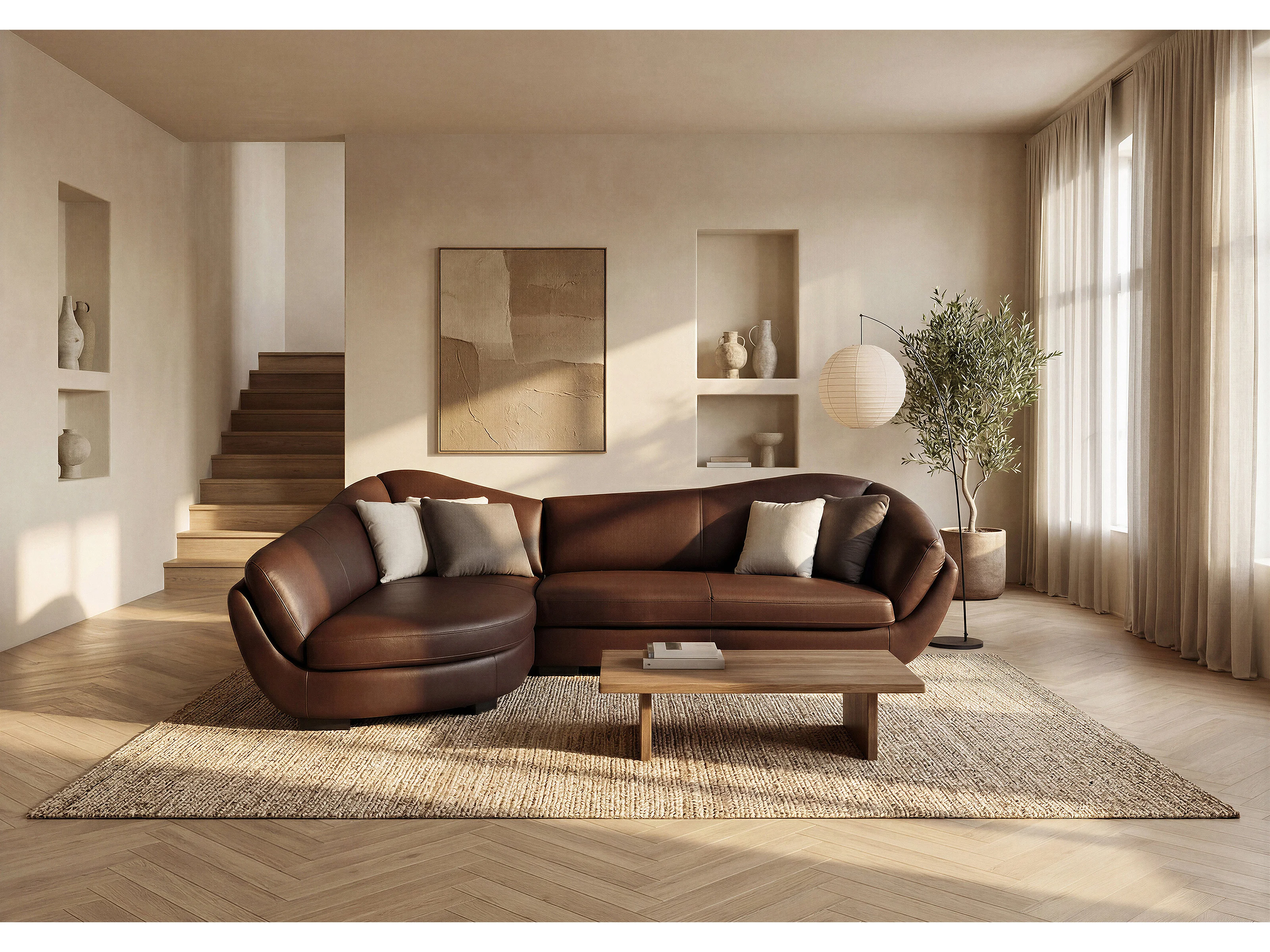 Canapé d'angle cuir de buffle 5 places CAIPI - Marron - Angle gauche
