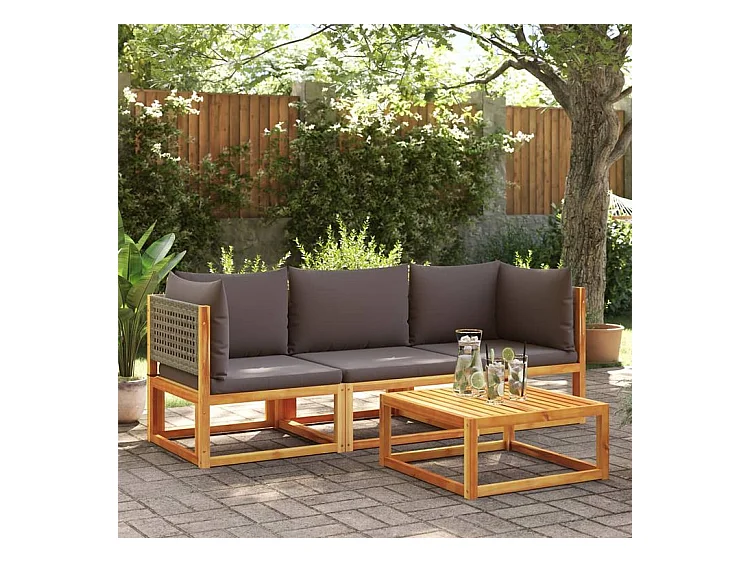 Canapé d'angle de jardin avec coussins bois massif d'acacia