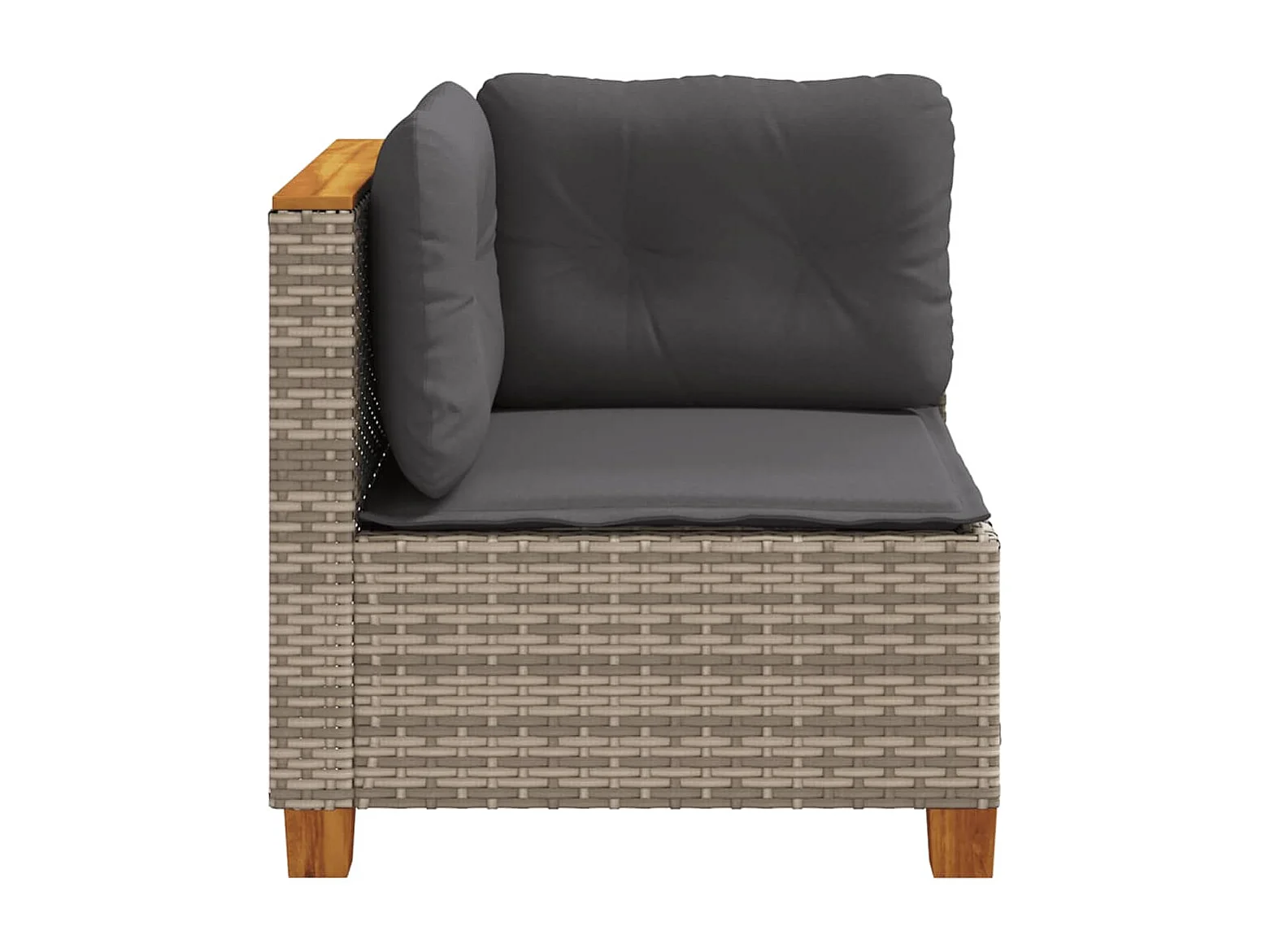 Canapé de jardin sans accoudoirs coussins gris résine tressée