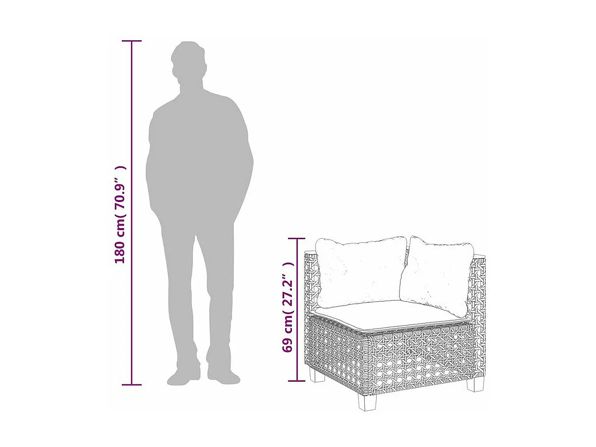 Canapé de jardin sans accoudoirs coussins gris clair poly rotin