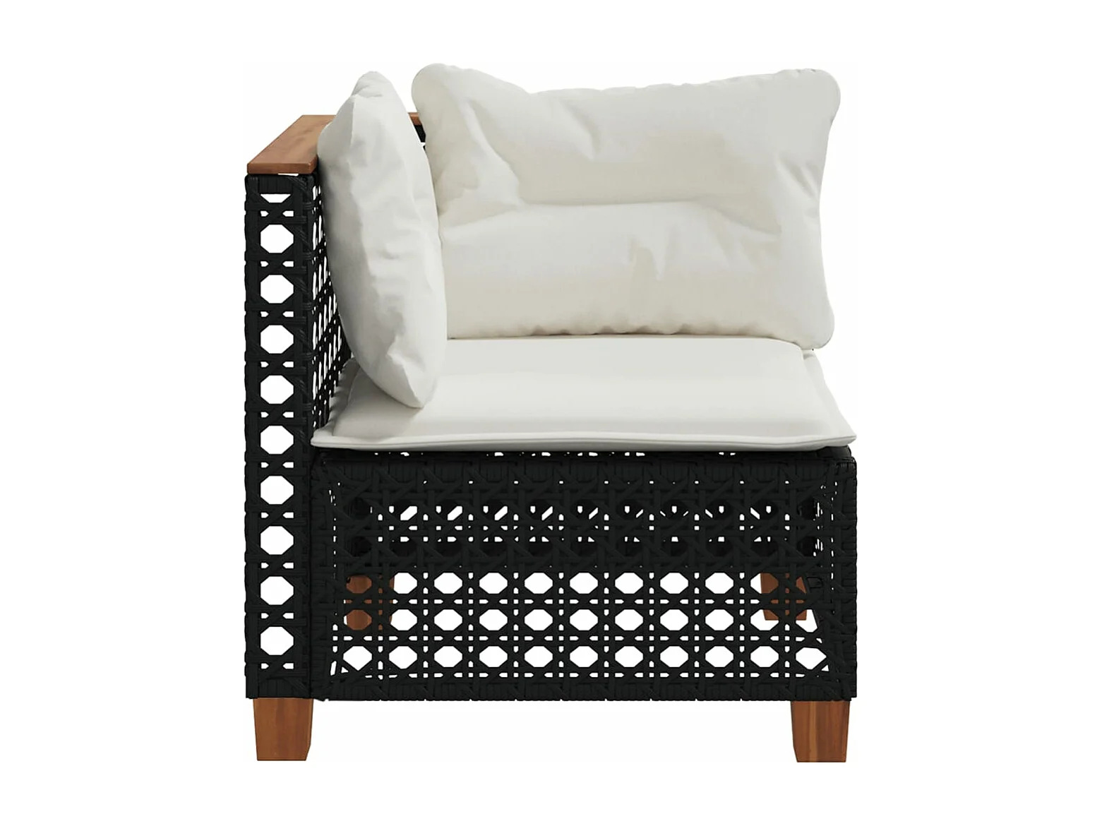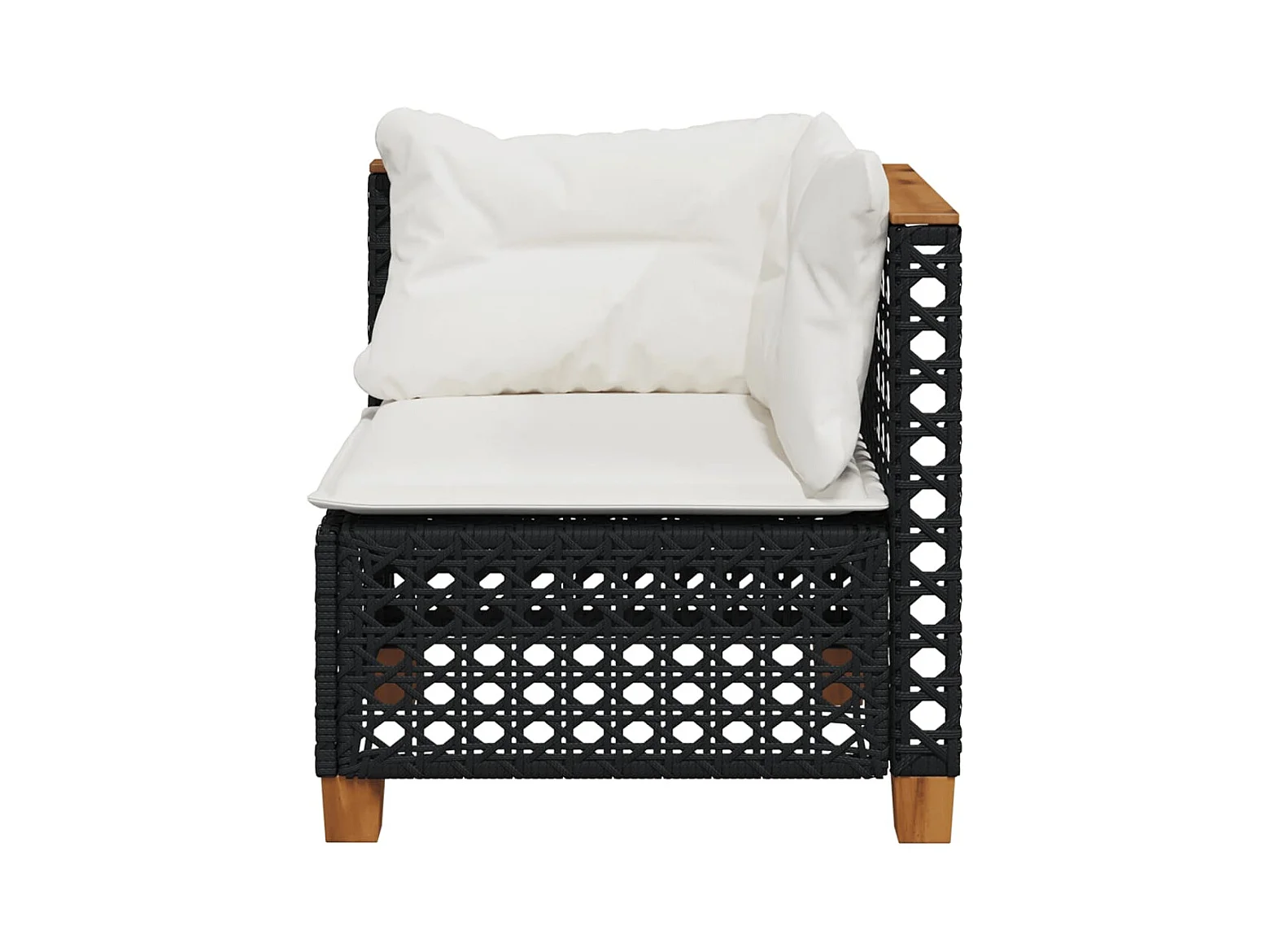 Canapé d'angle de jardin avec coussins noir résine tressée