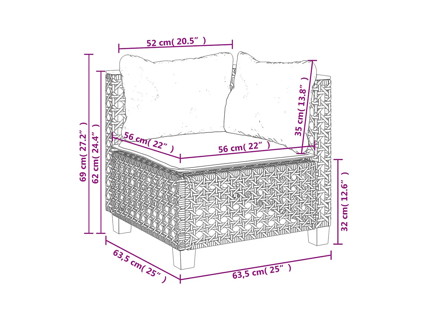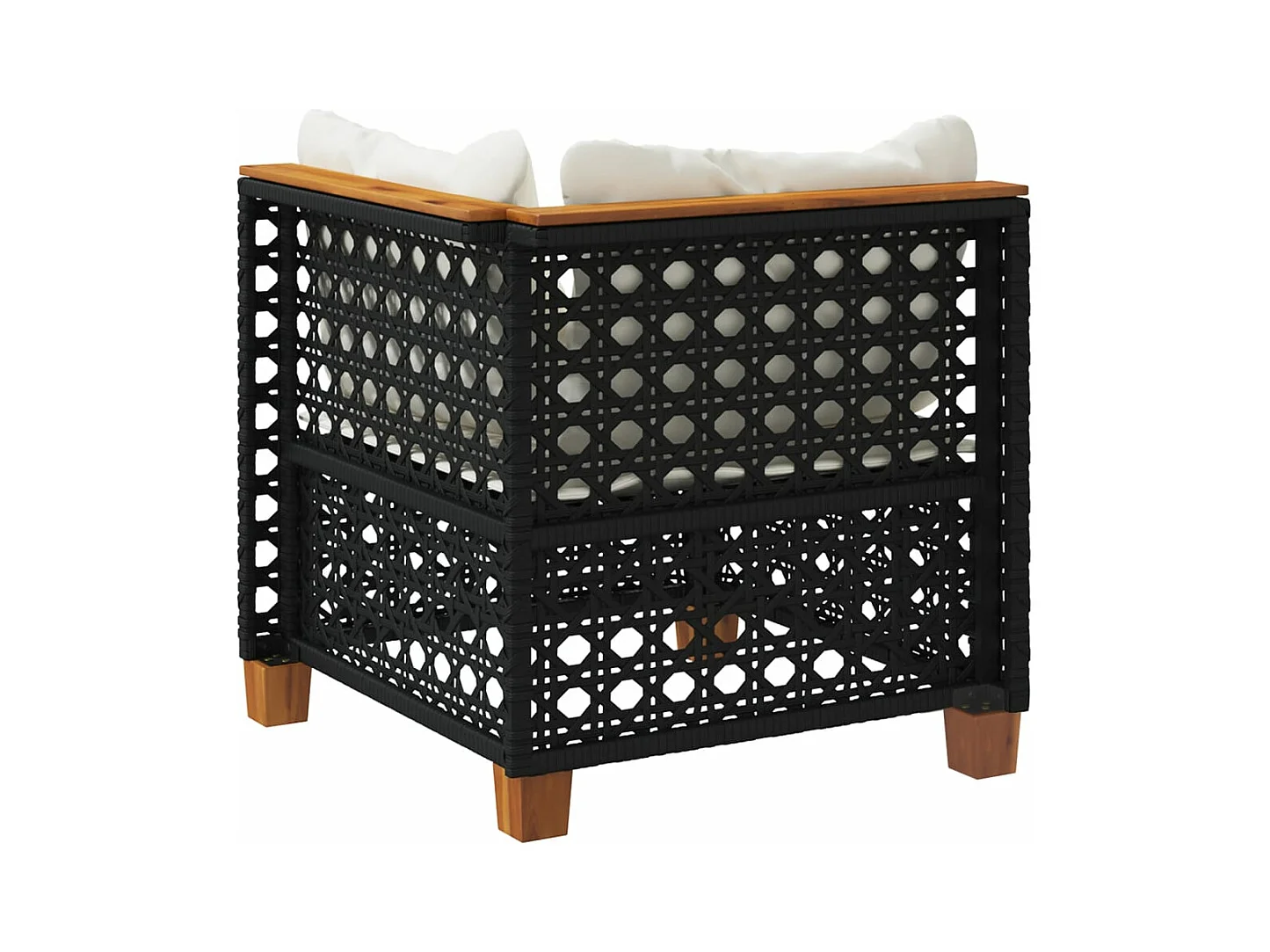 Canapés d'angle de jardin et coussins 2 pcs noir résine tressée