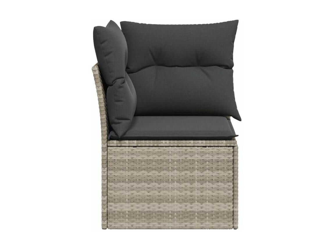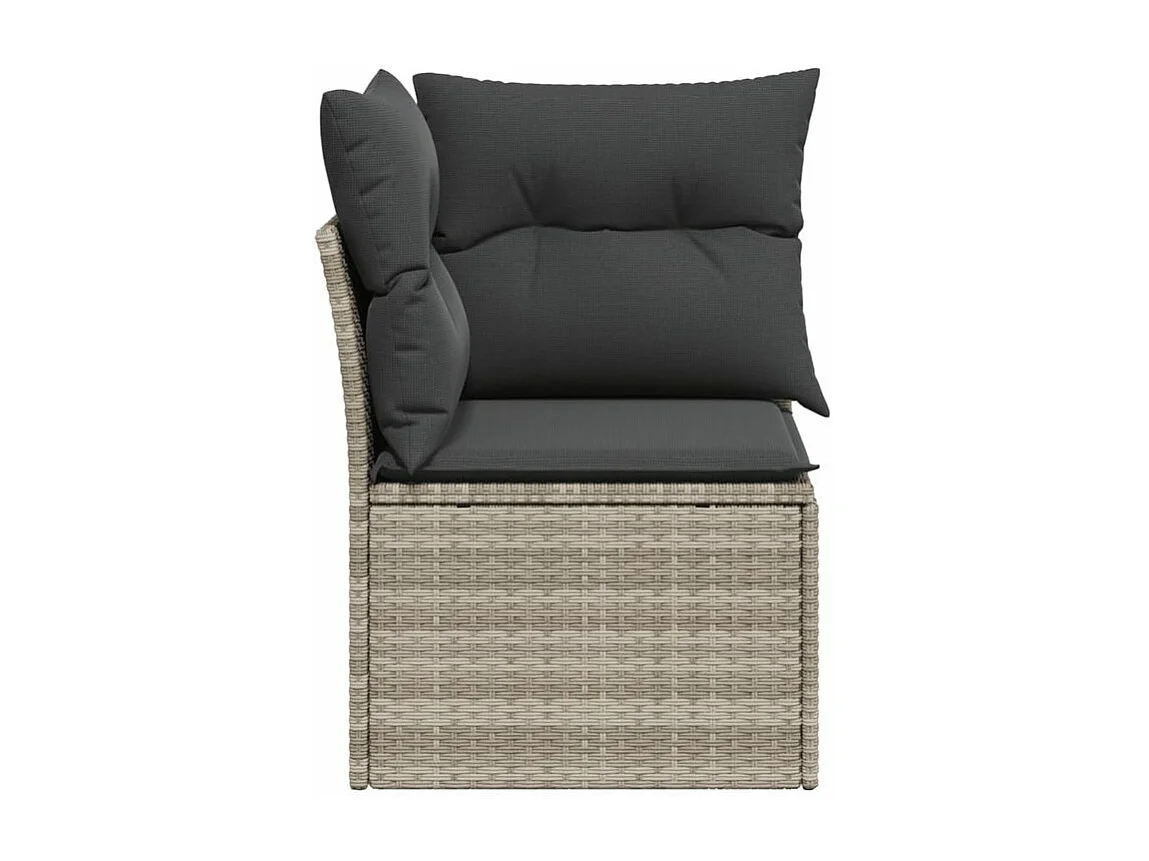 Canapé d'angle de jardin et coussins gris clair résine tressée