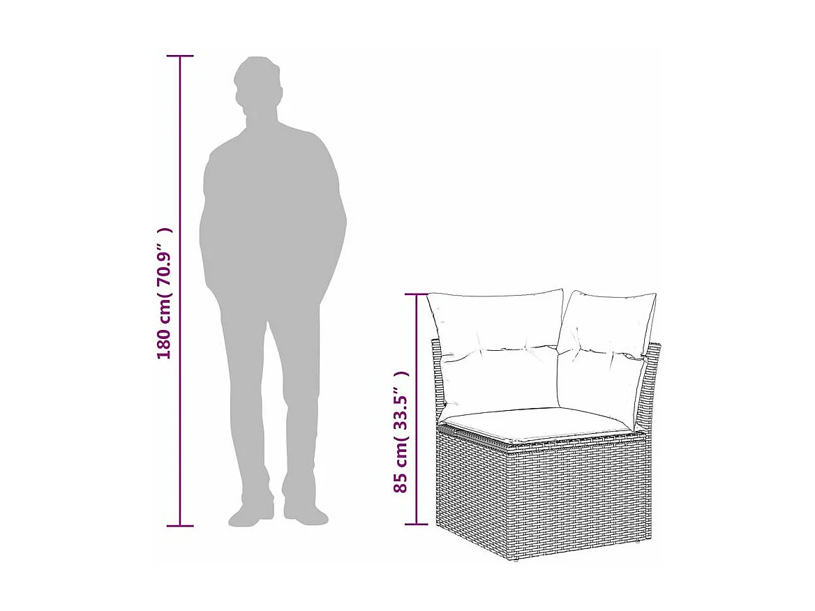 Canapé d'angle de jardin avec coussins gris résine tressée