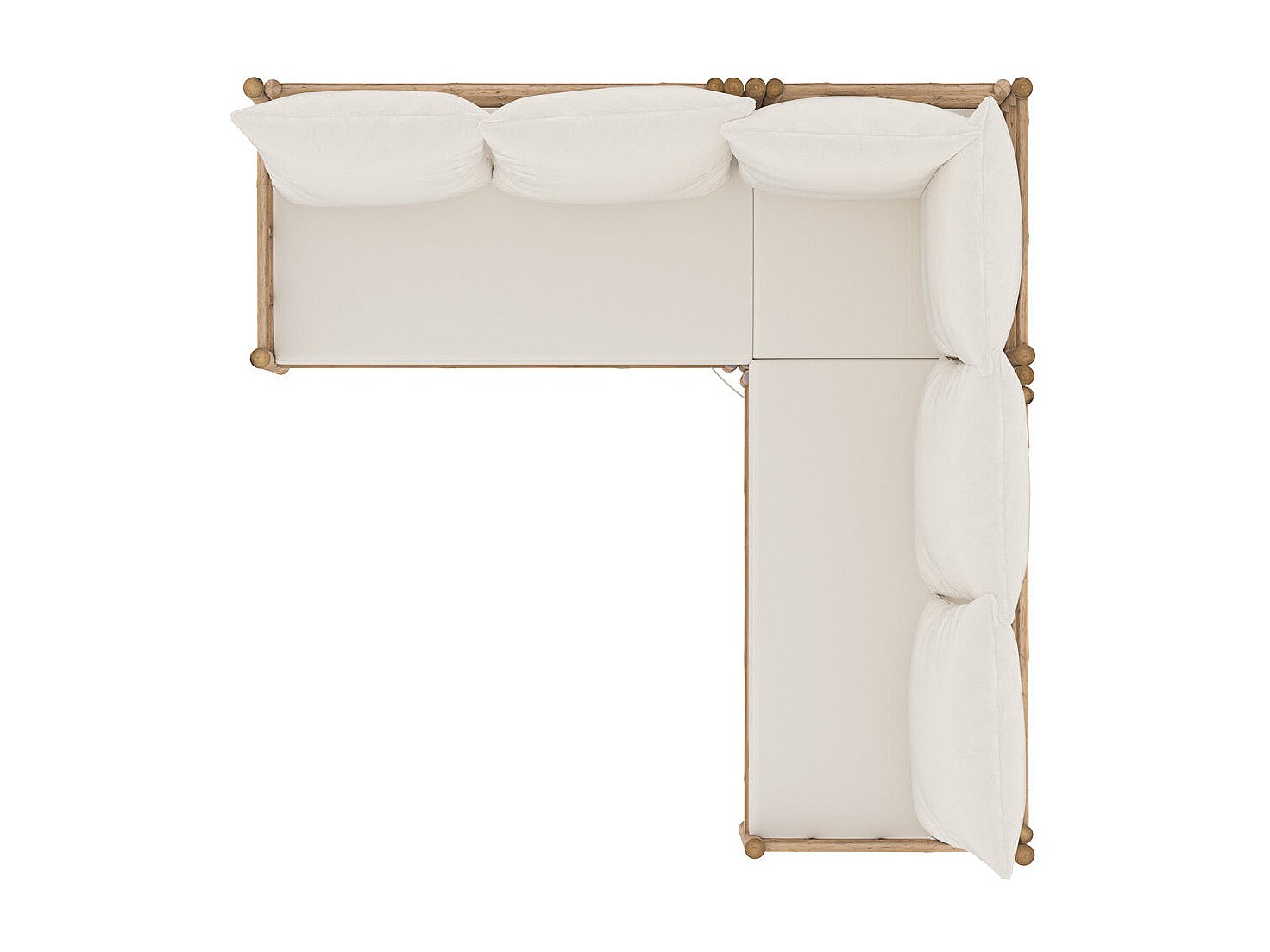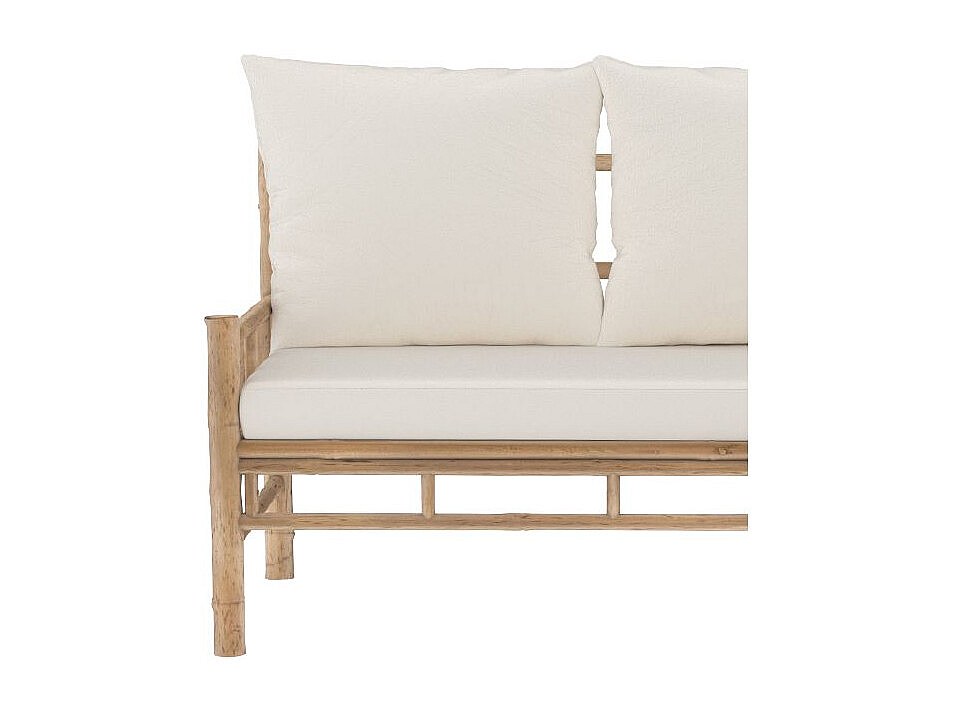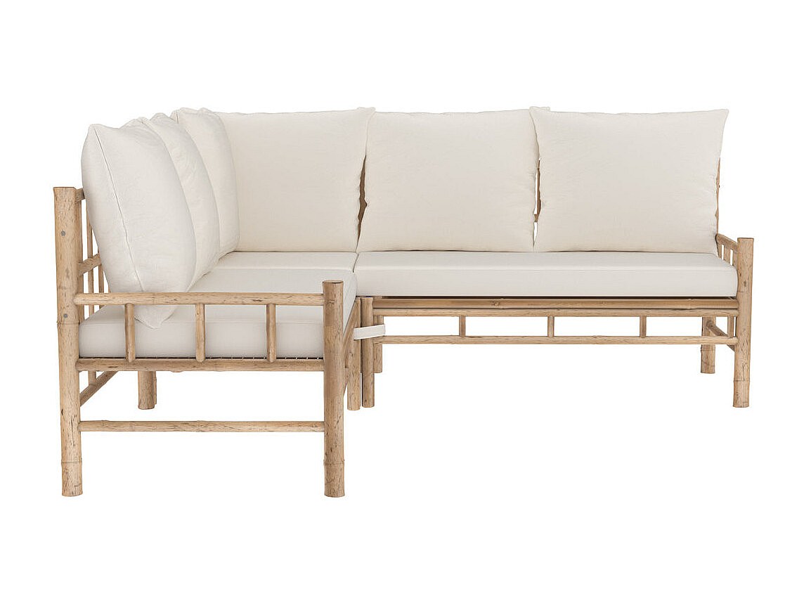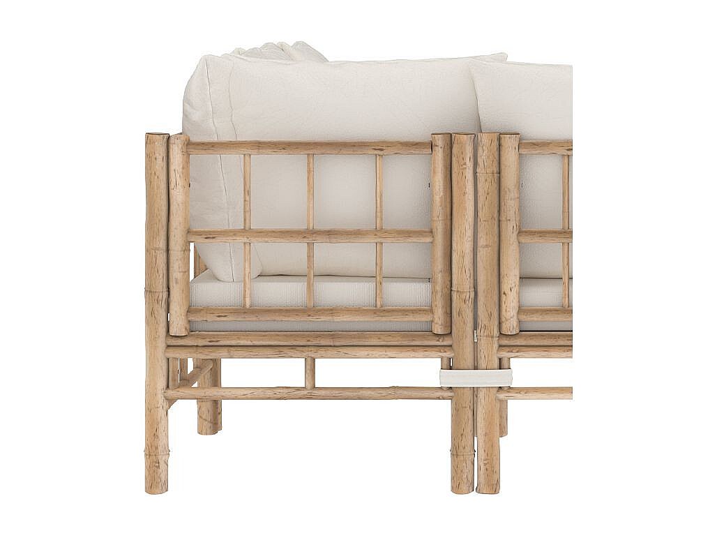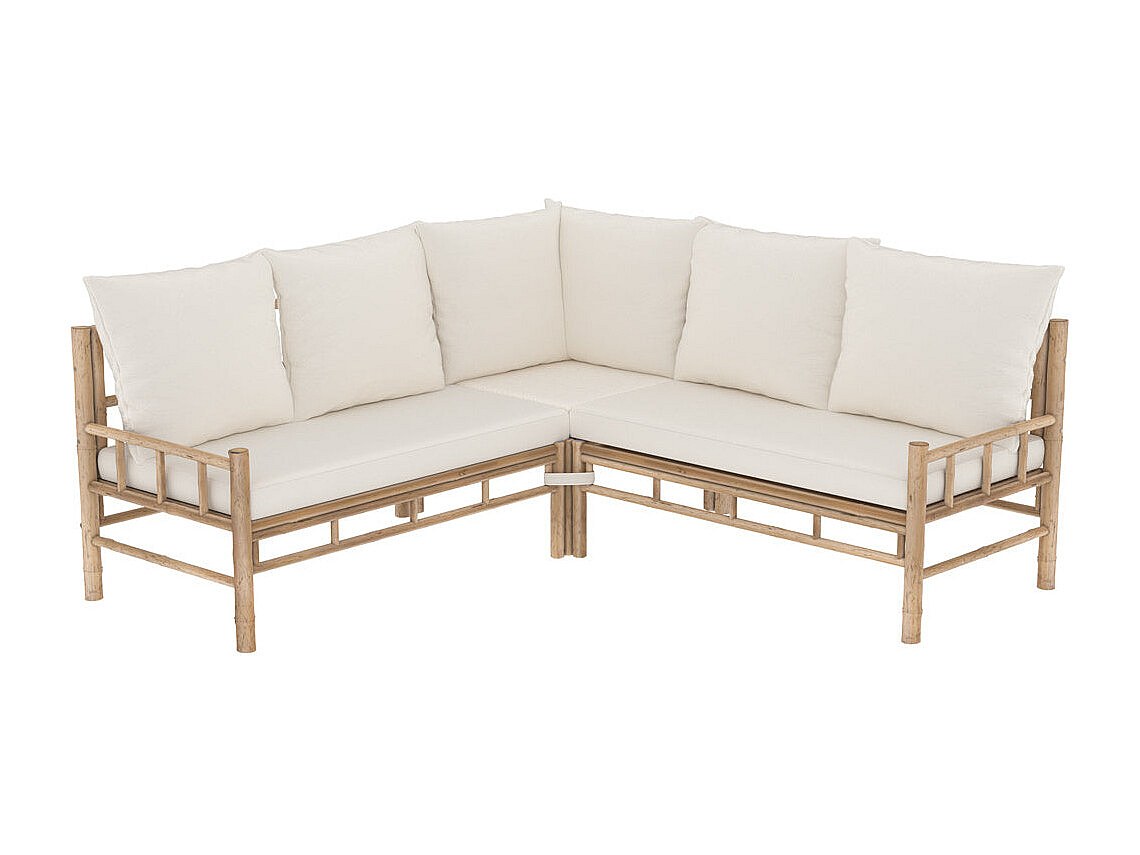 Canapé d'angle de jardin 4/5 places en bambou et coussins blancs - Vadella