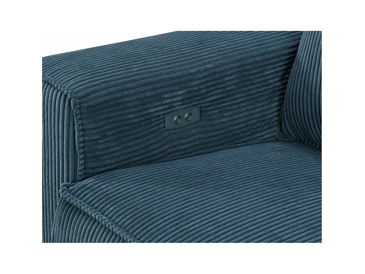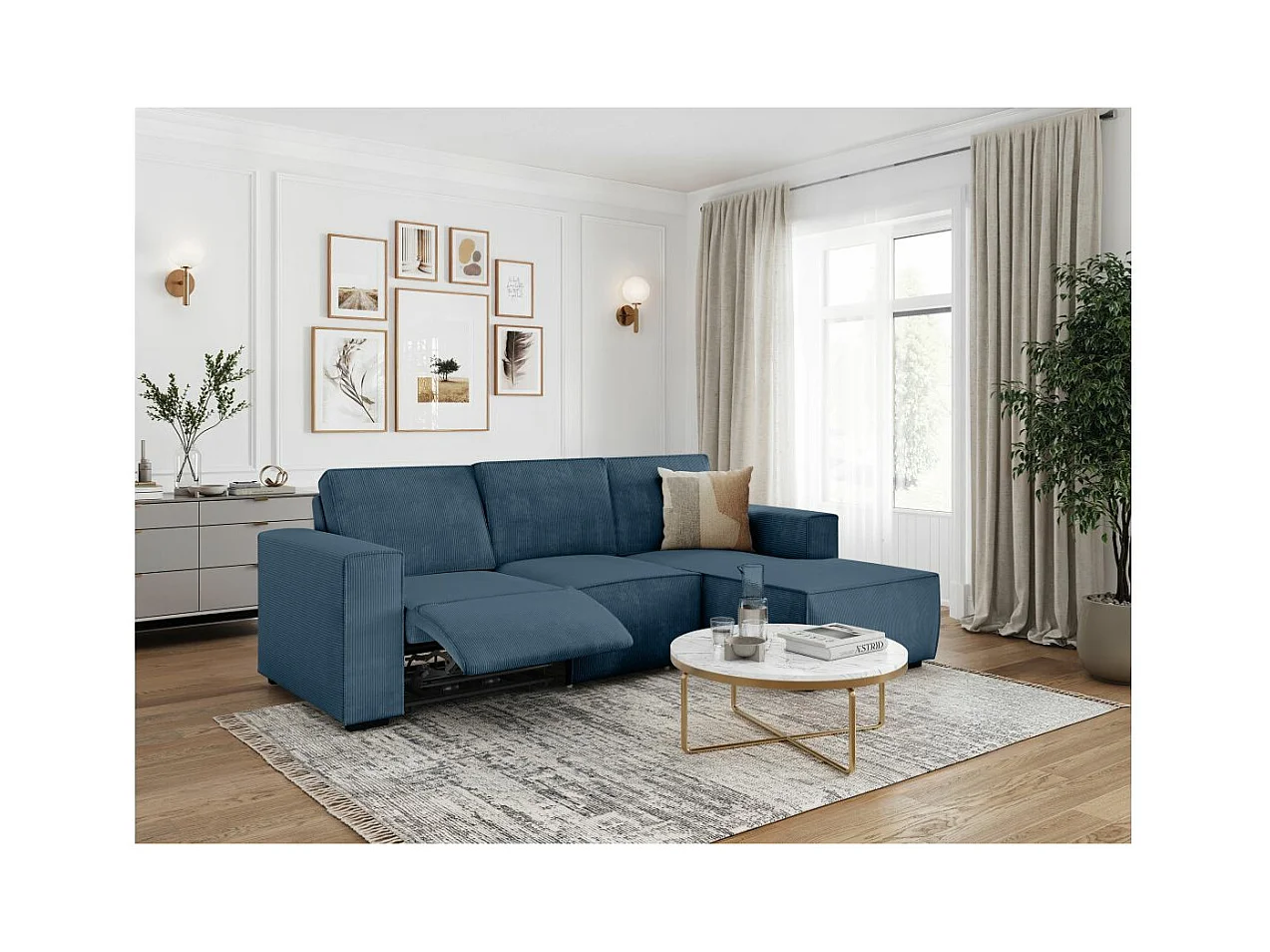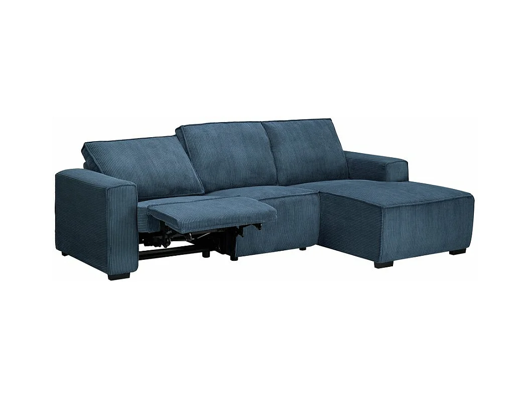 Canapé d'angle droit de relaxation électrique Charline 3 places en velours côtelé - Bleu foncé - L269 x P166 x H92cm - Loungitude