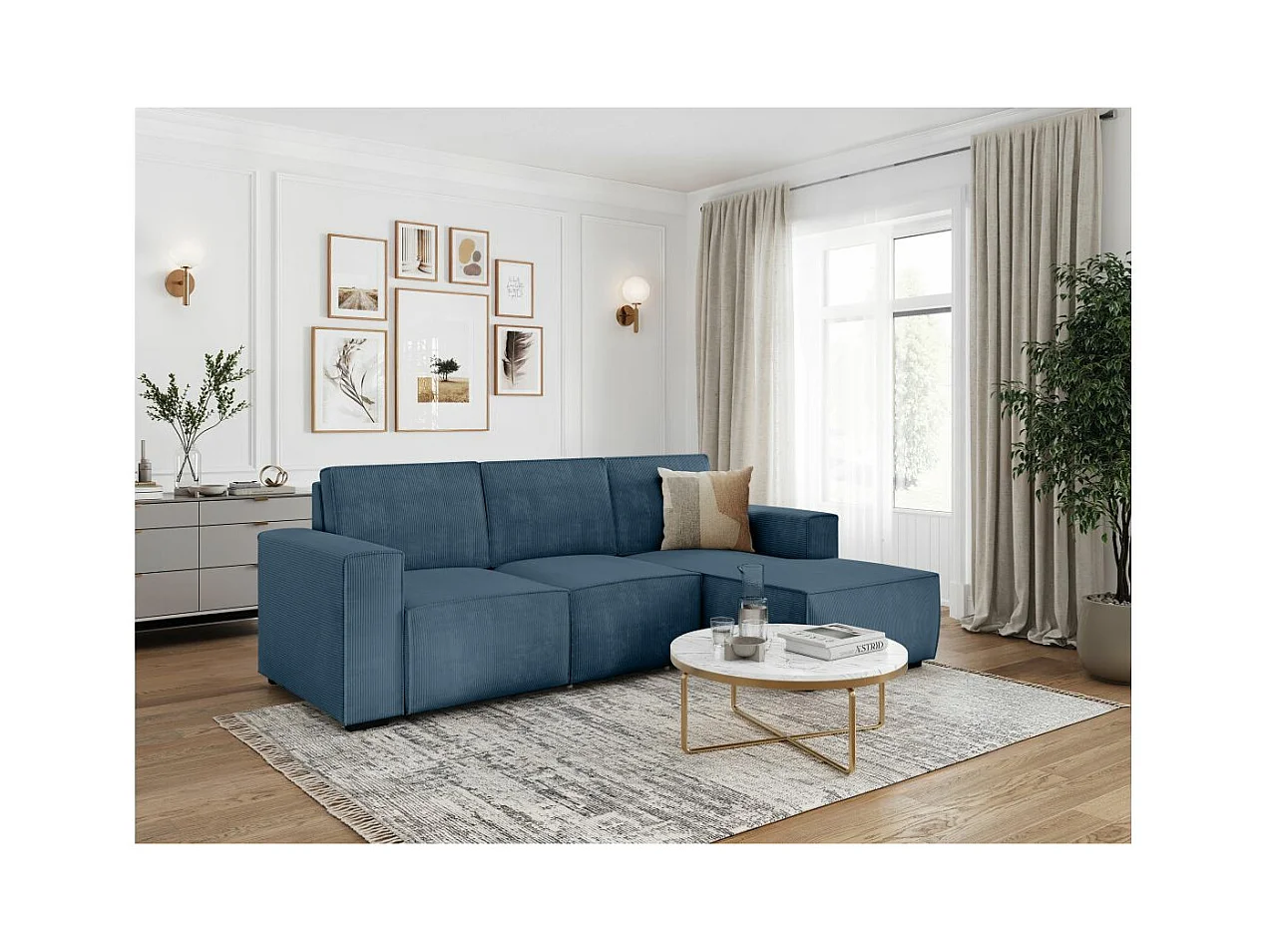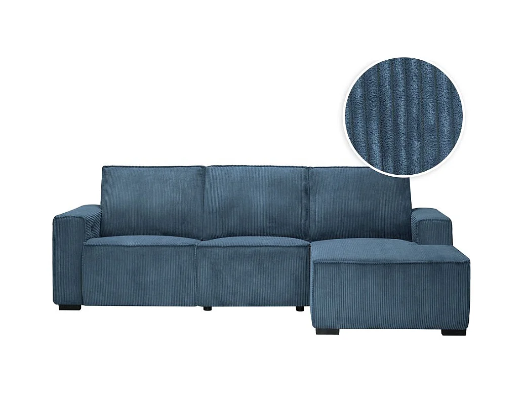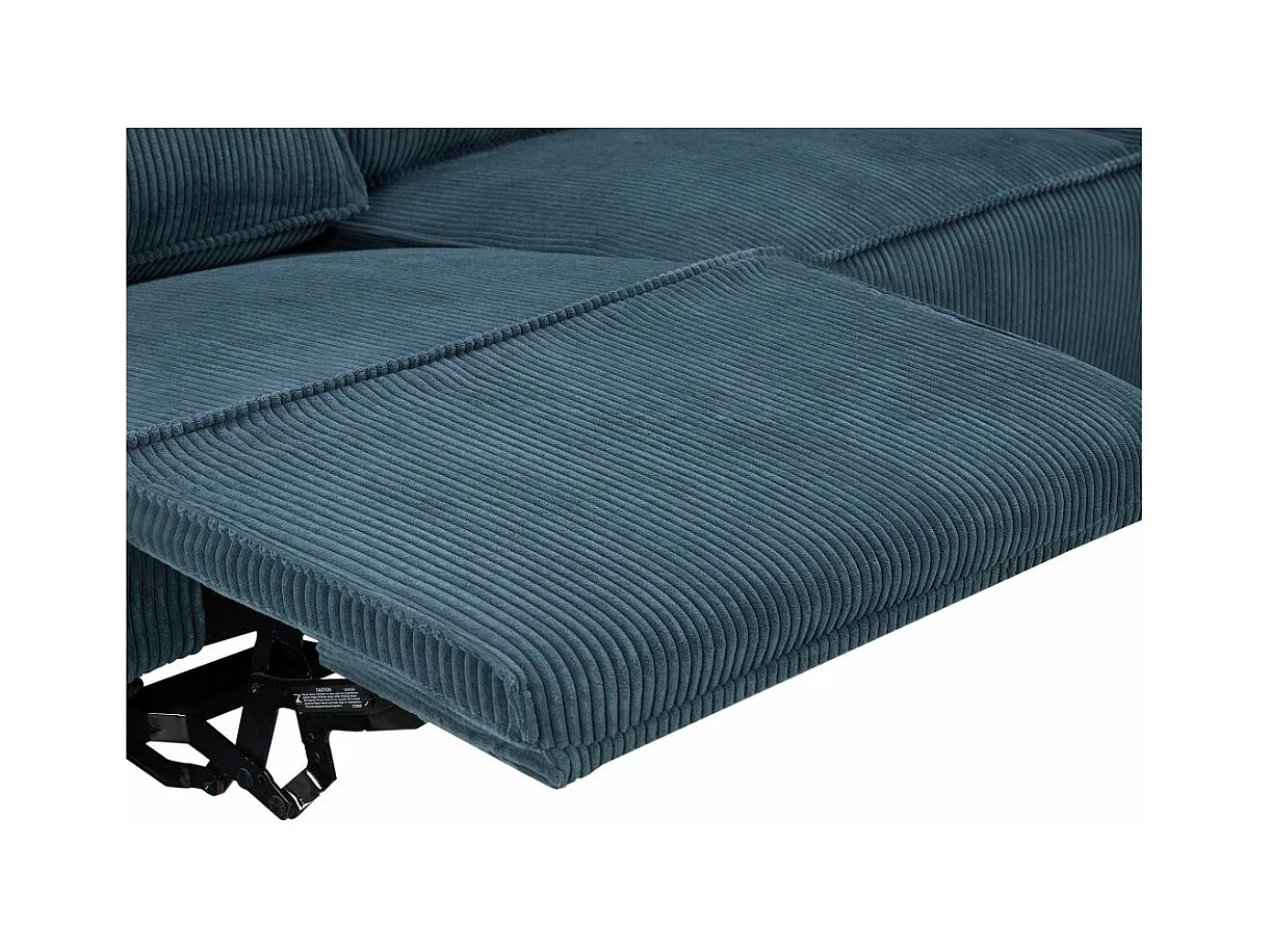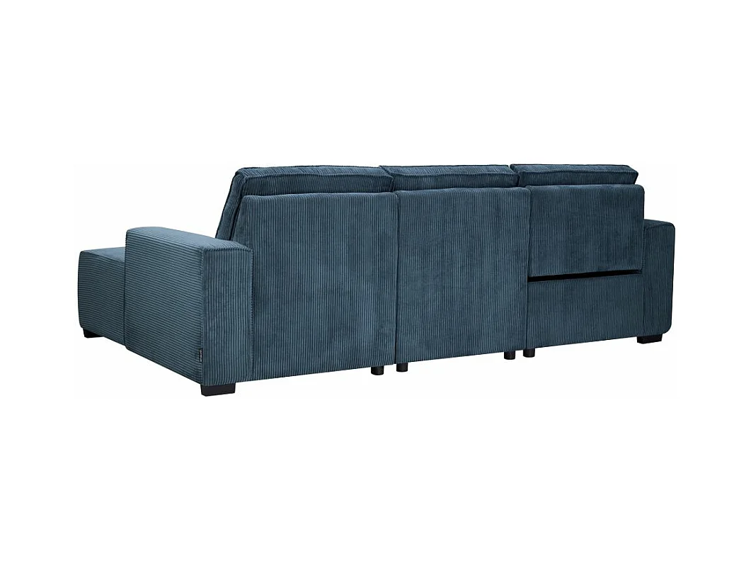 Canapé d'angle droit de relaxation électrique Charline 3 places en velours côtelé - Bleu foncé - L269 x P166 x H92cm - Loungitude