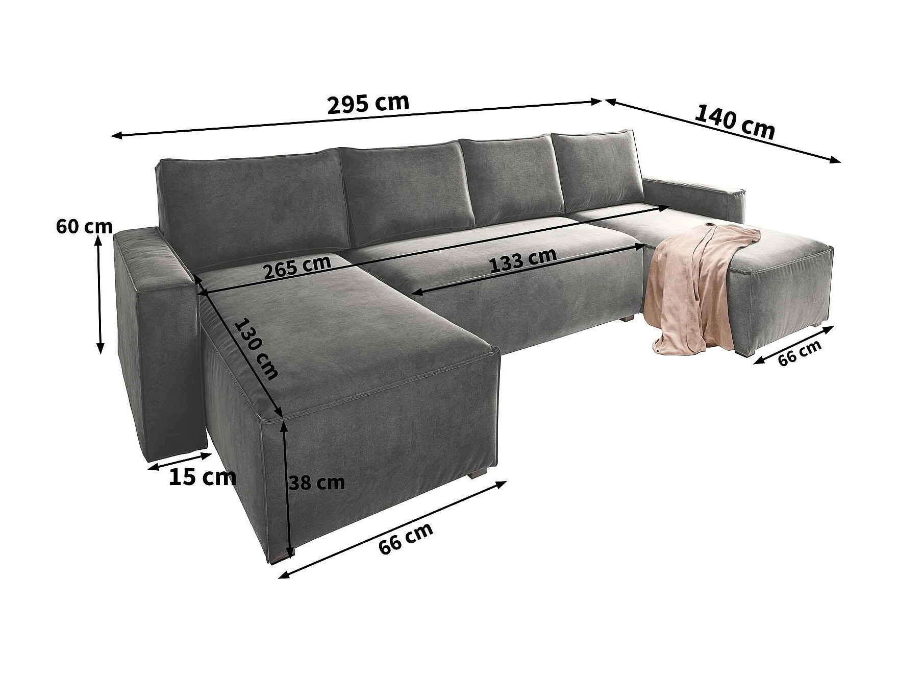 Canapé d'angle DENI Beige en velours avec fonction de couchage