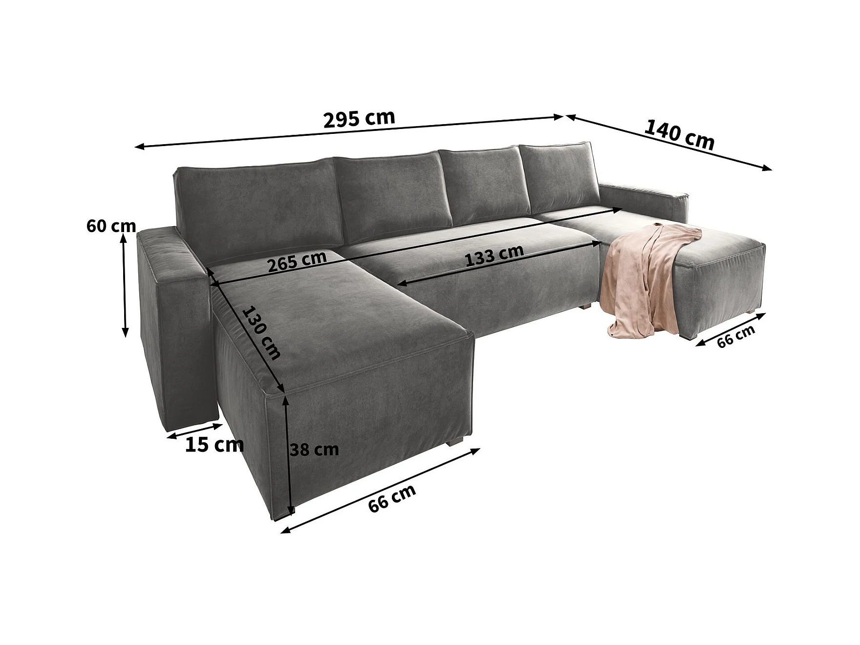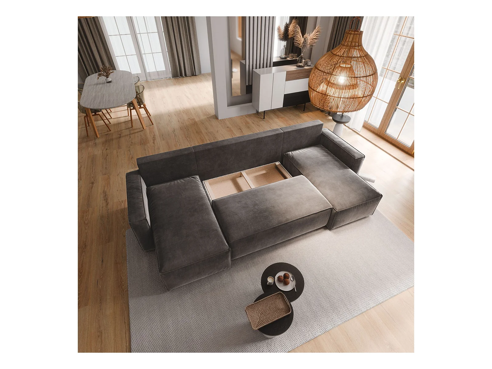 Canapé d'angle DENI Gris en velours avec fonction de couchage