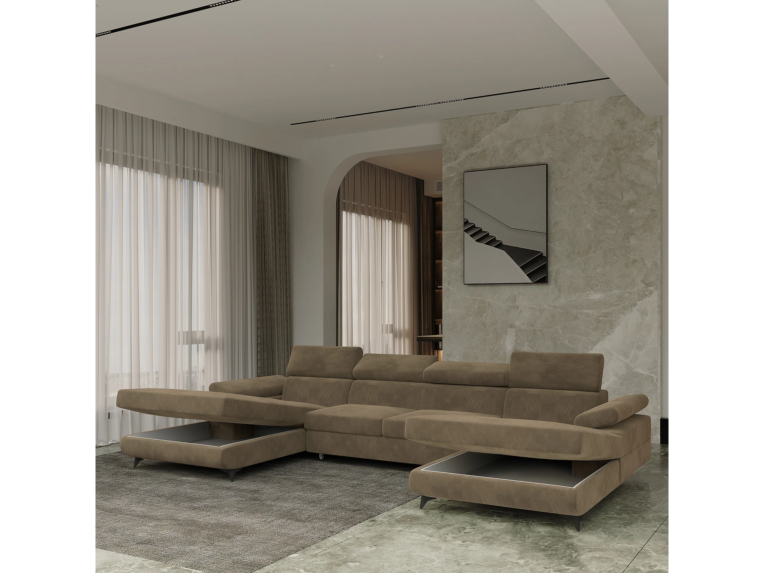 Canapé d'angle DETTI Beige en velours avec fonction de couchage