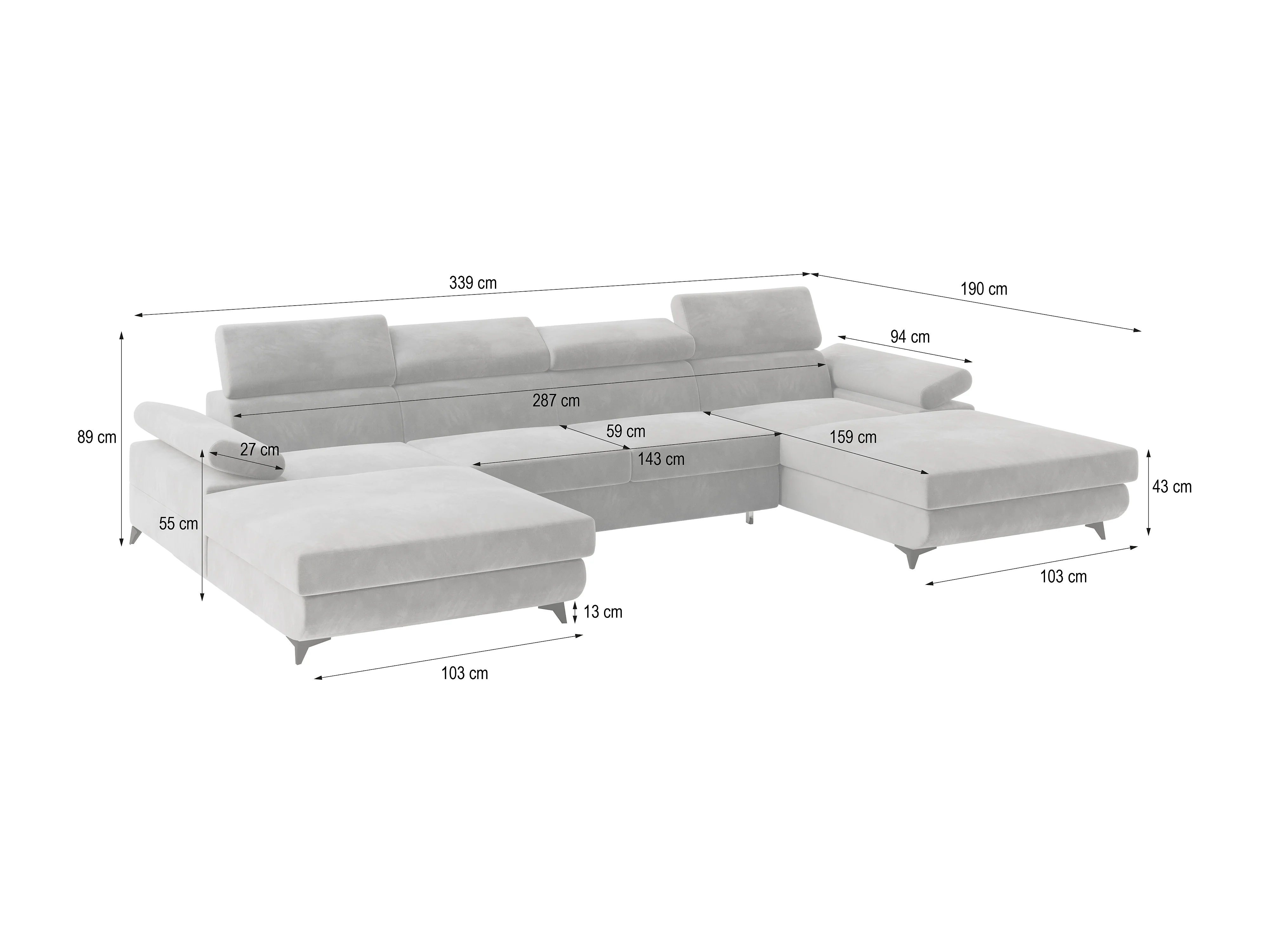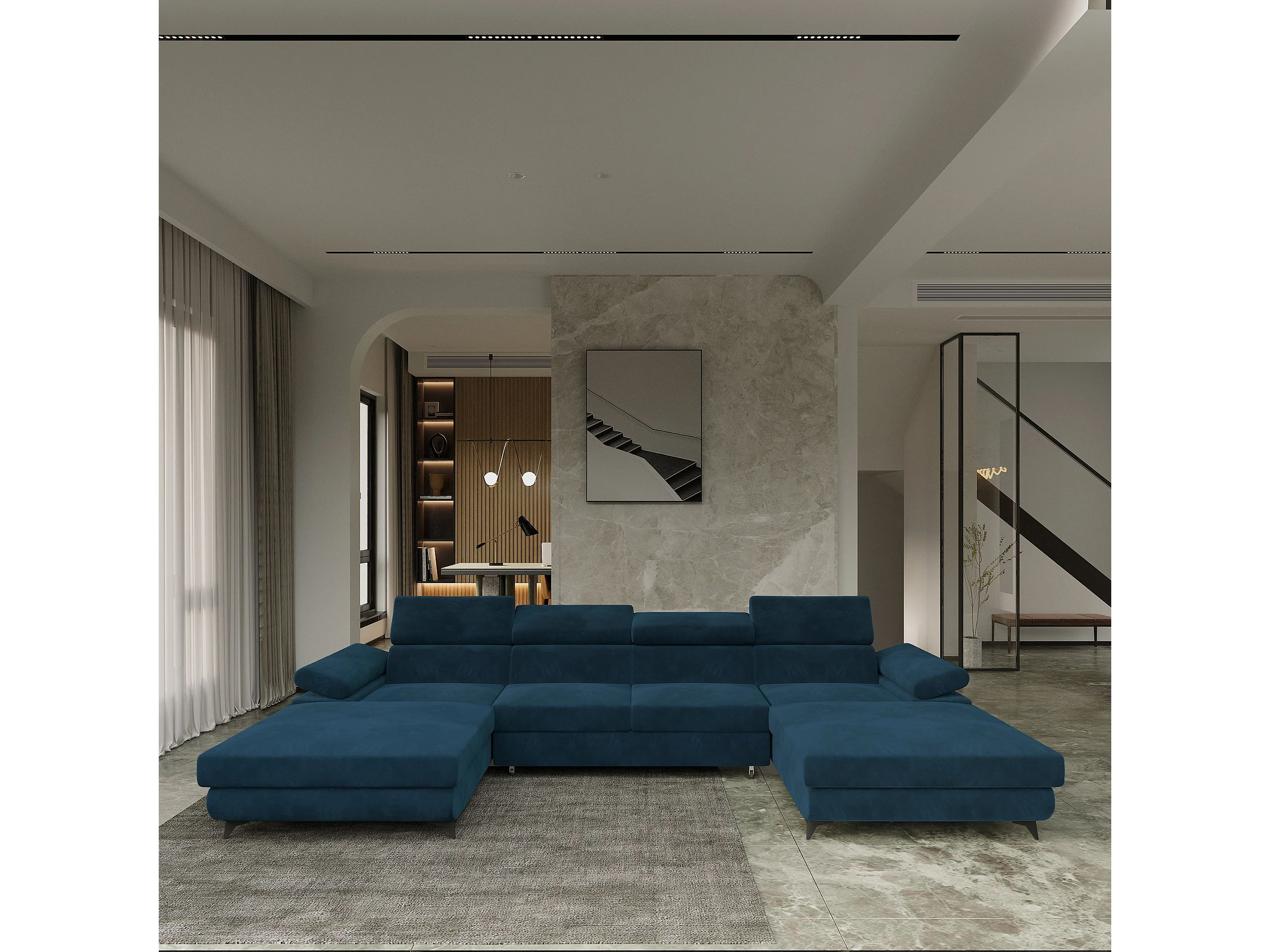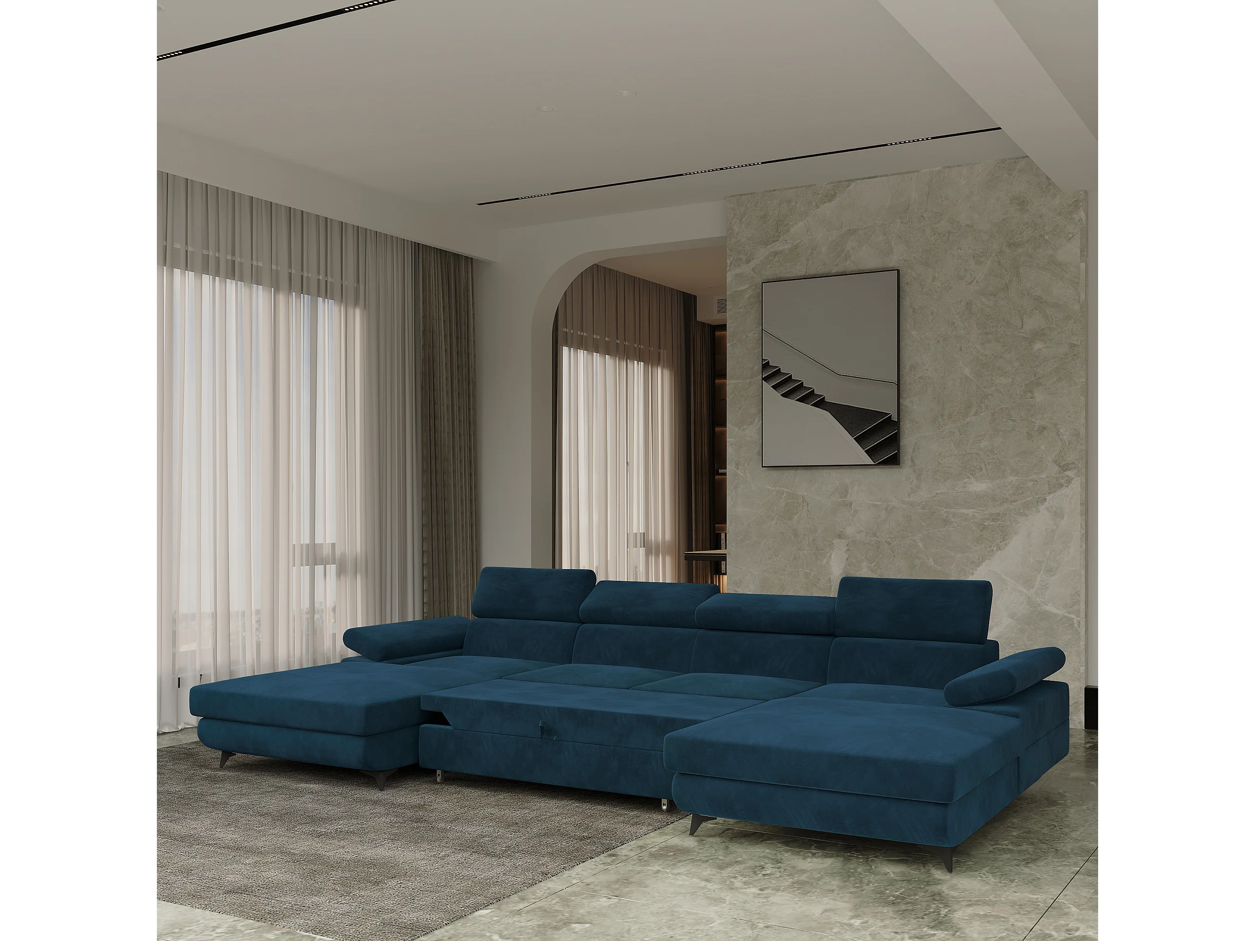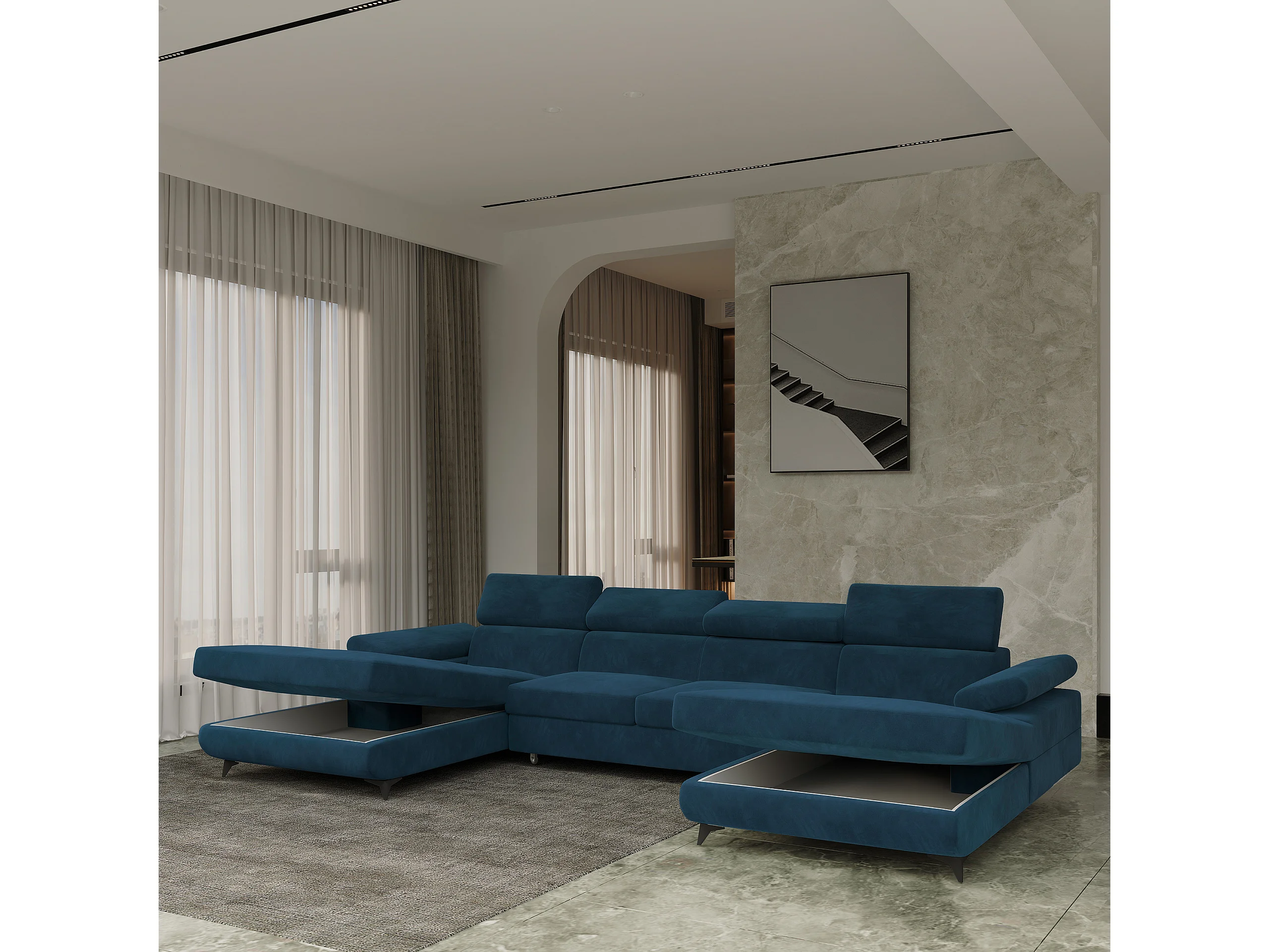 Canapé d'angle DETTI Bleu en velours avec fonction de couchage