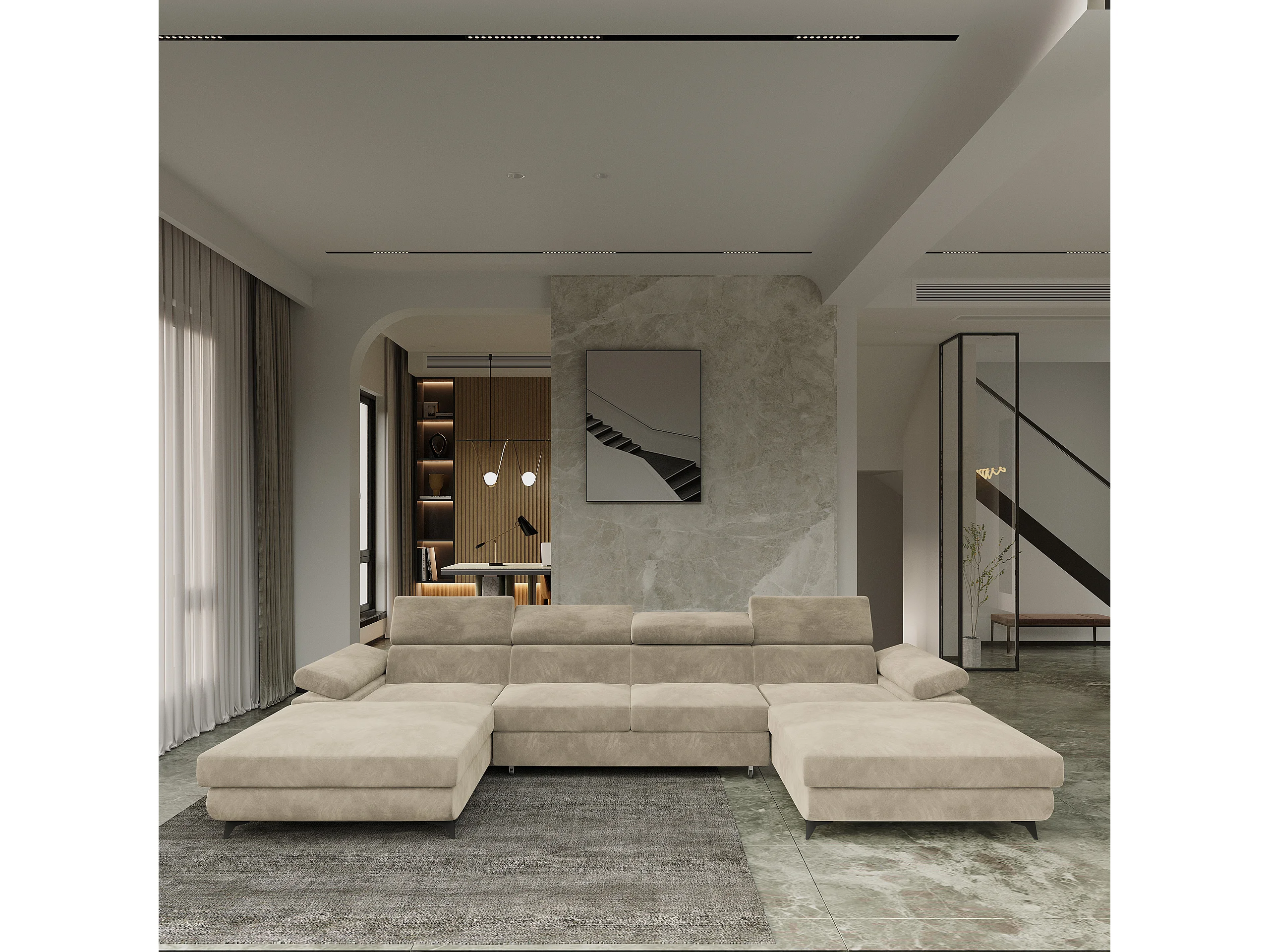 Canapé d'angle DETTI Crème en velours avec fonction de couchage