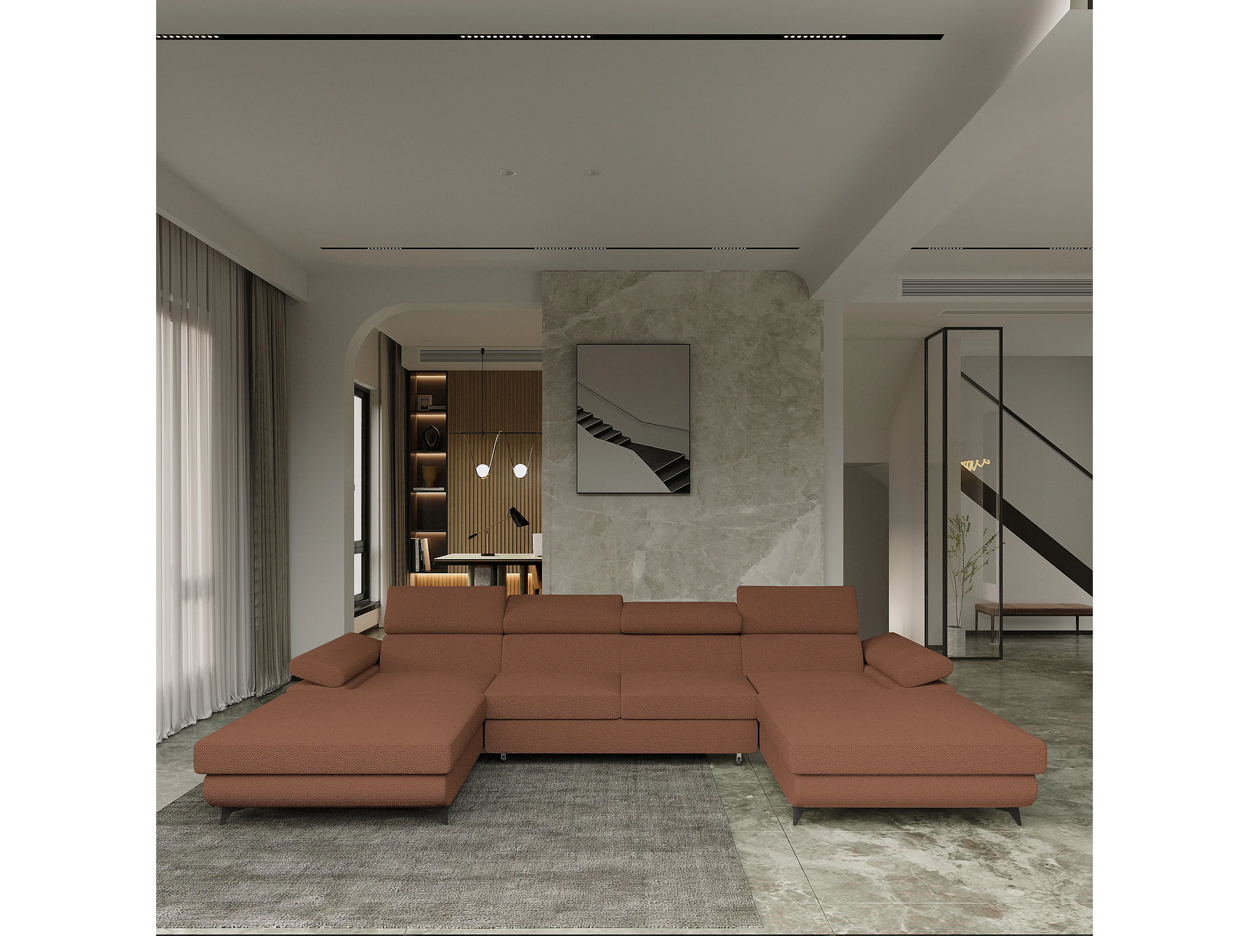 Canapé d'angle DETTI Cuivré en bouclé avec fonction de couchage