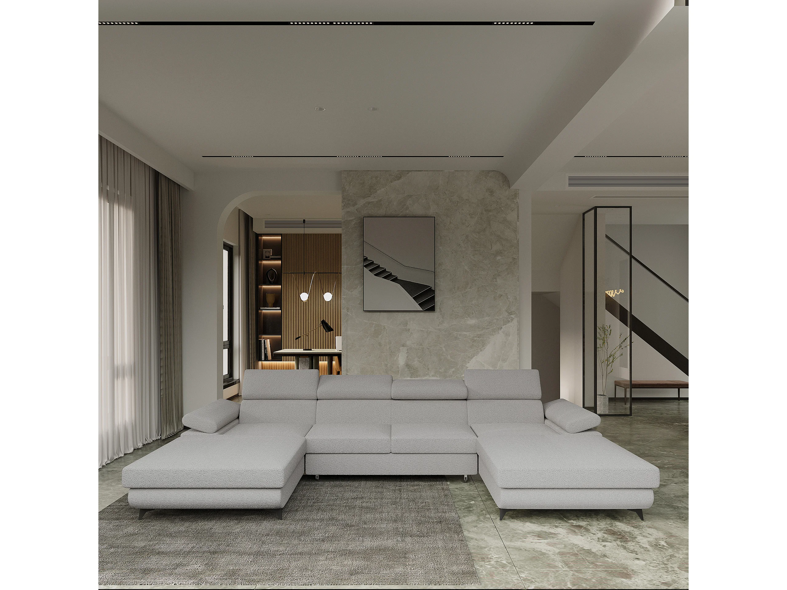 Canapé d'angle DETTI Gris clair en bouclé avec fonction de couchage