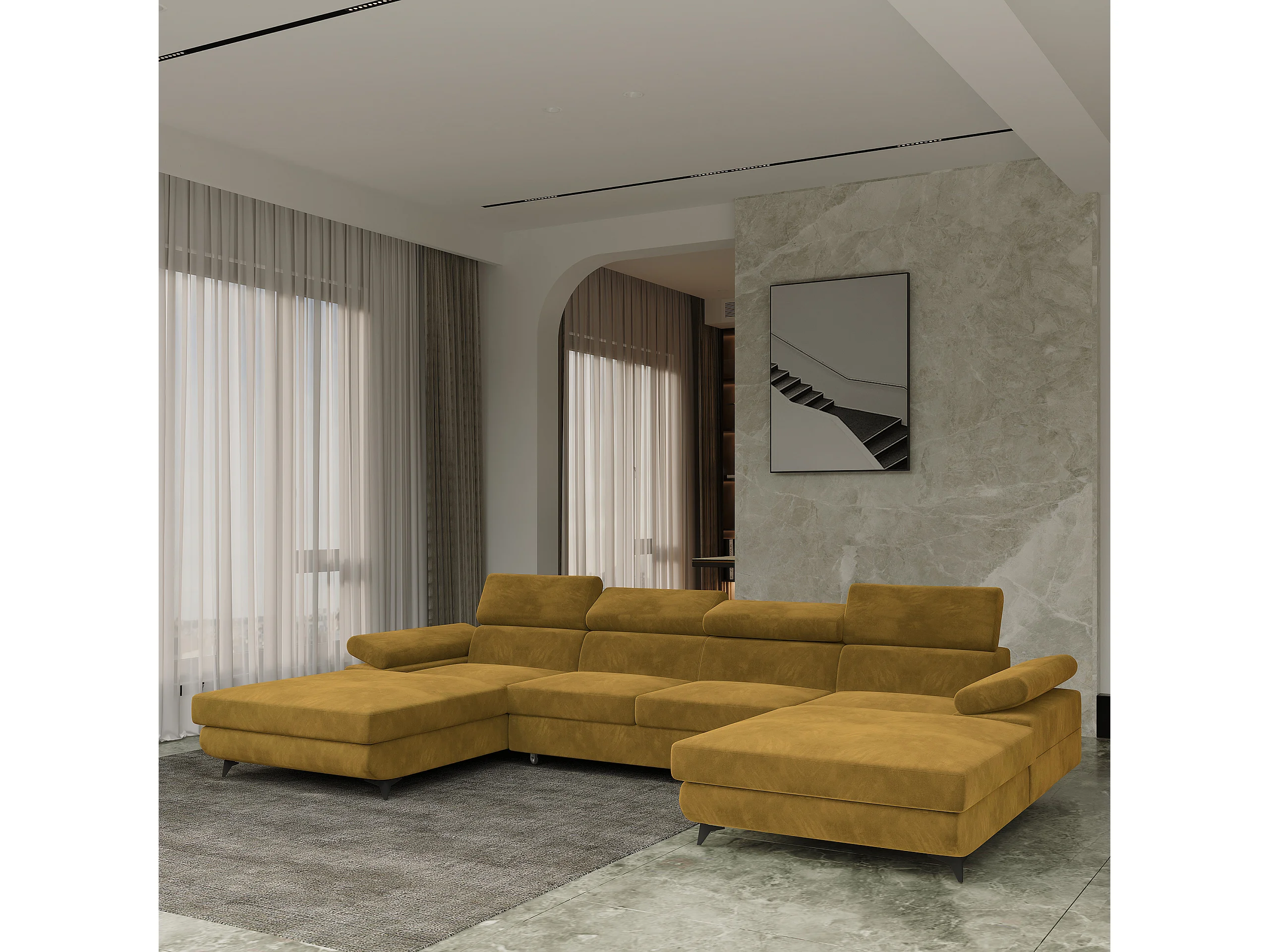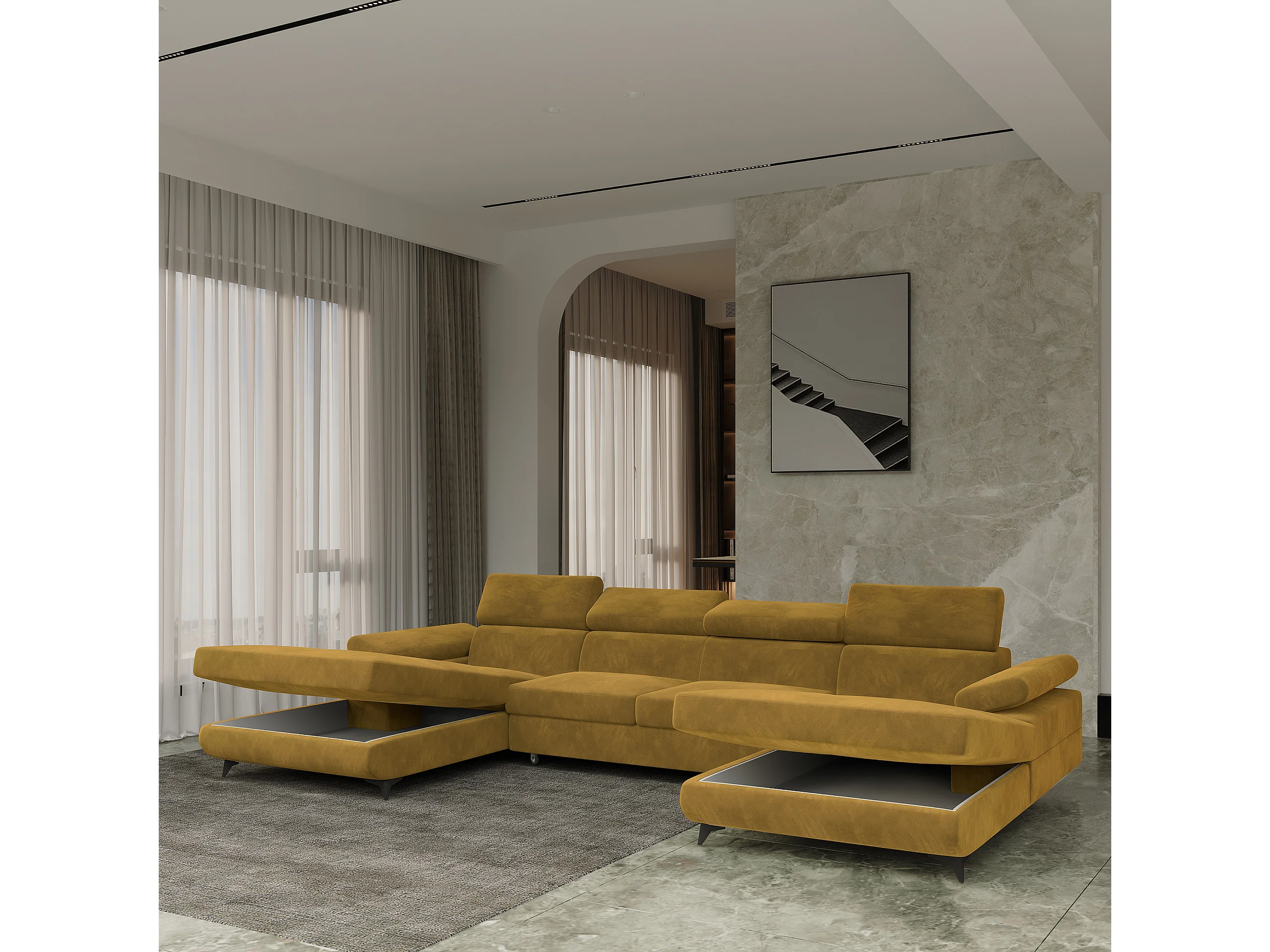 Canapé d'angle DETTI Jaune en velours avec fonction de couchage