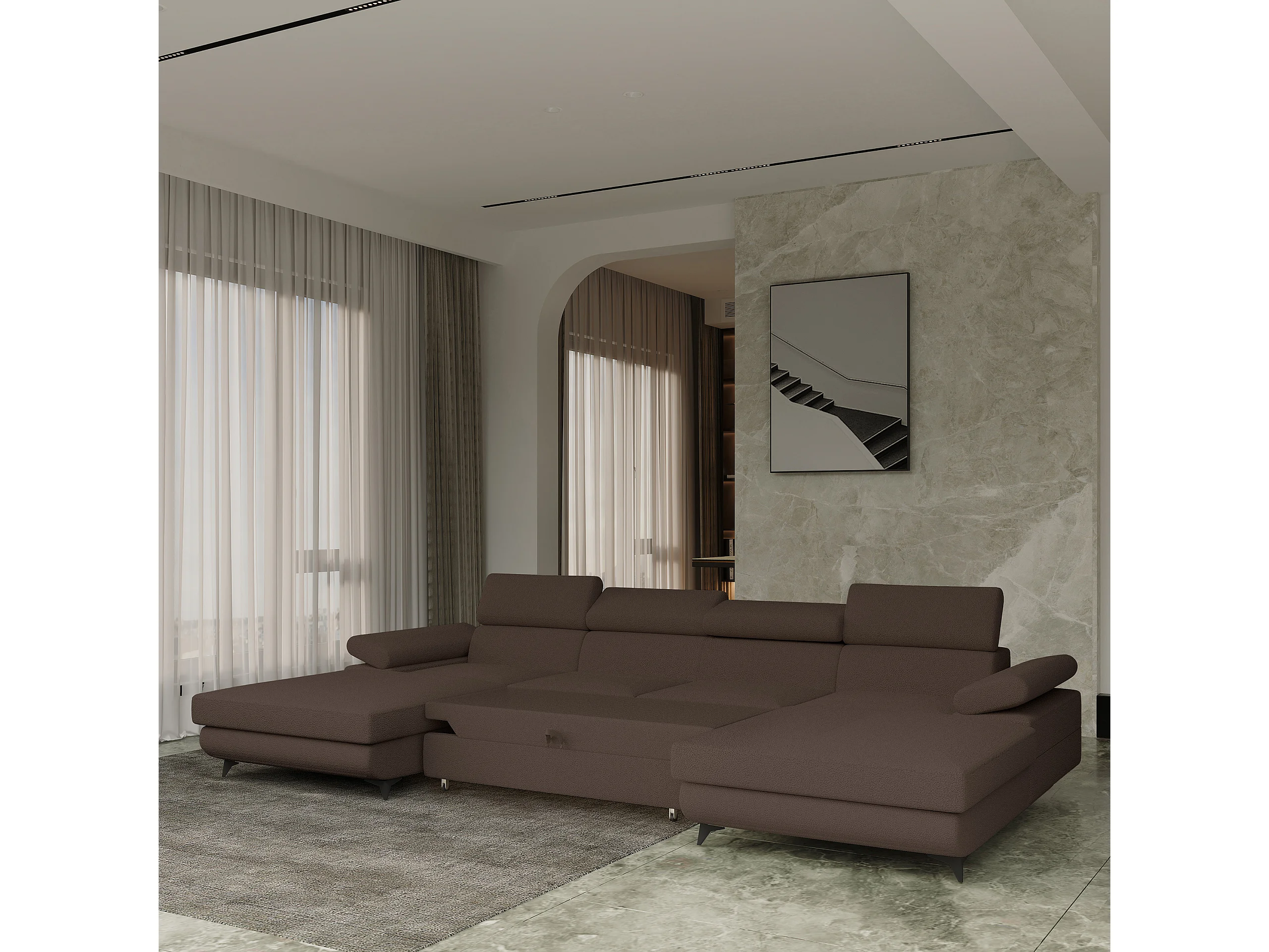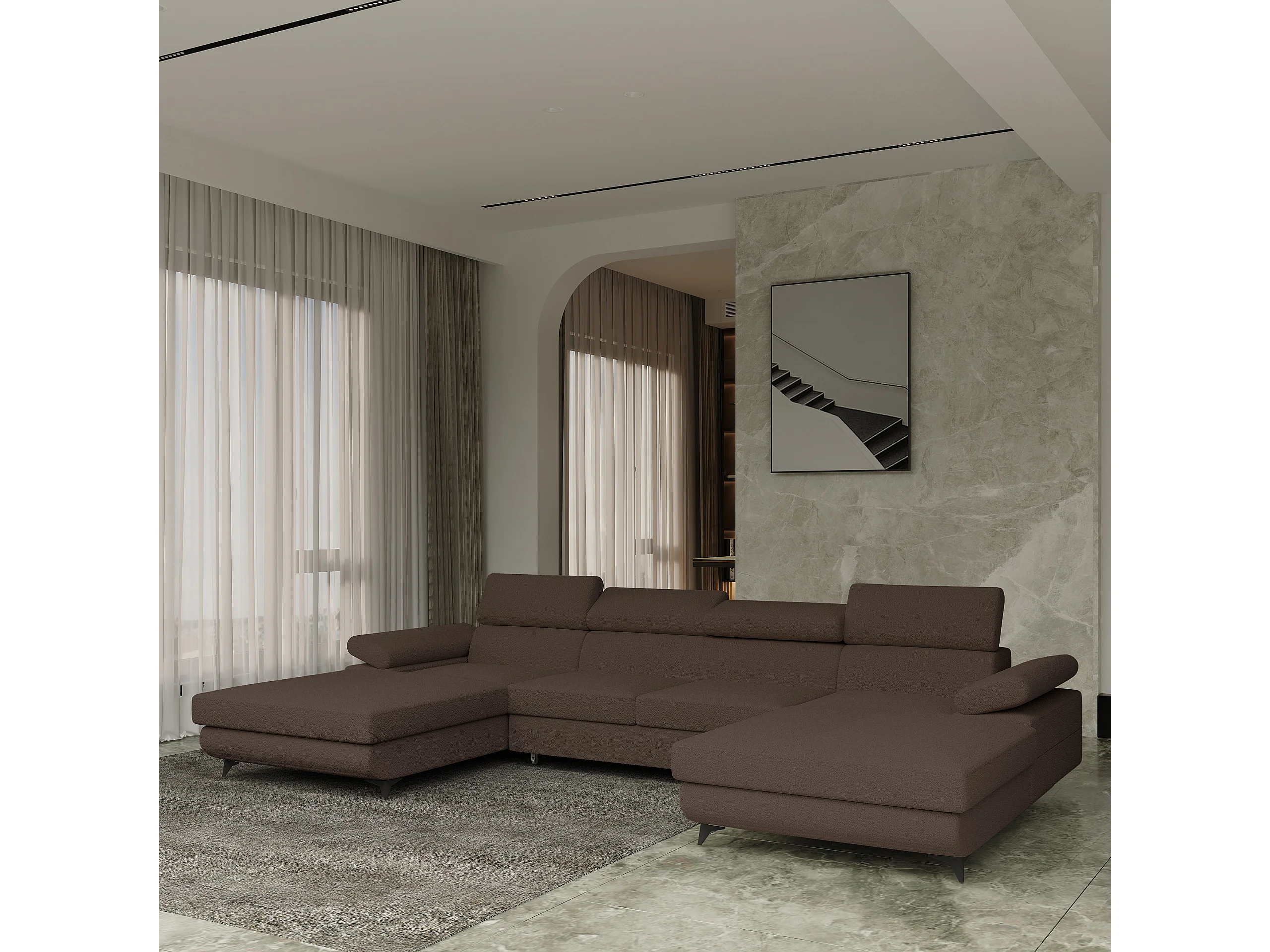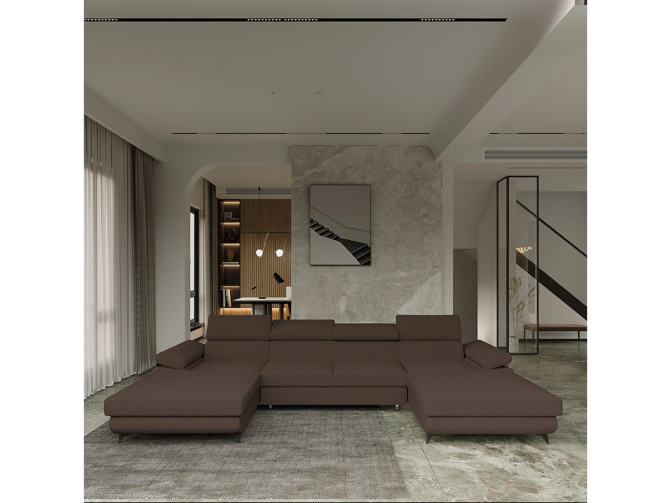 Canapé d'angle DETTI Marron en bouclé avec fonction de couchage