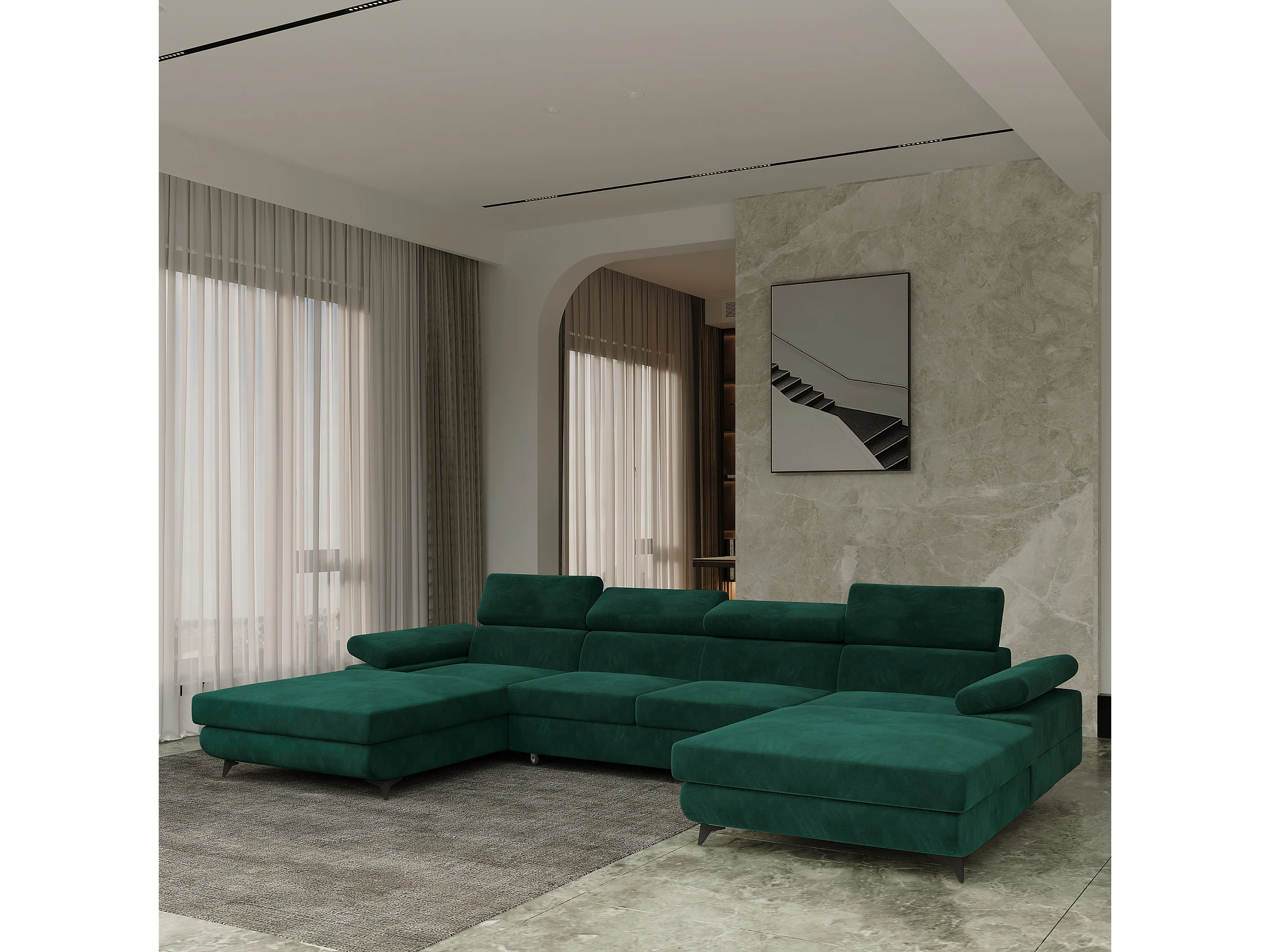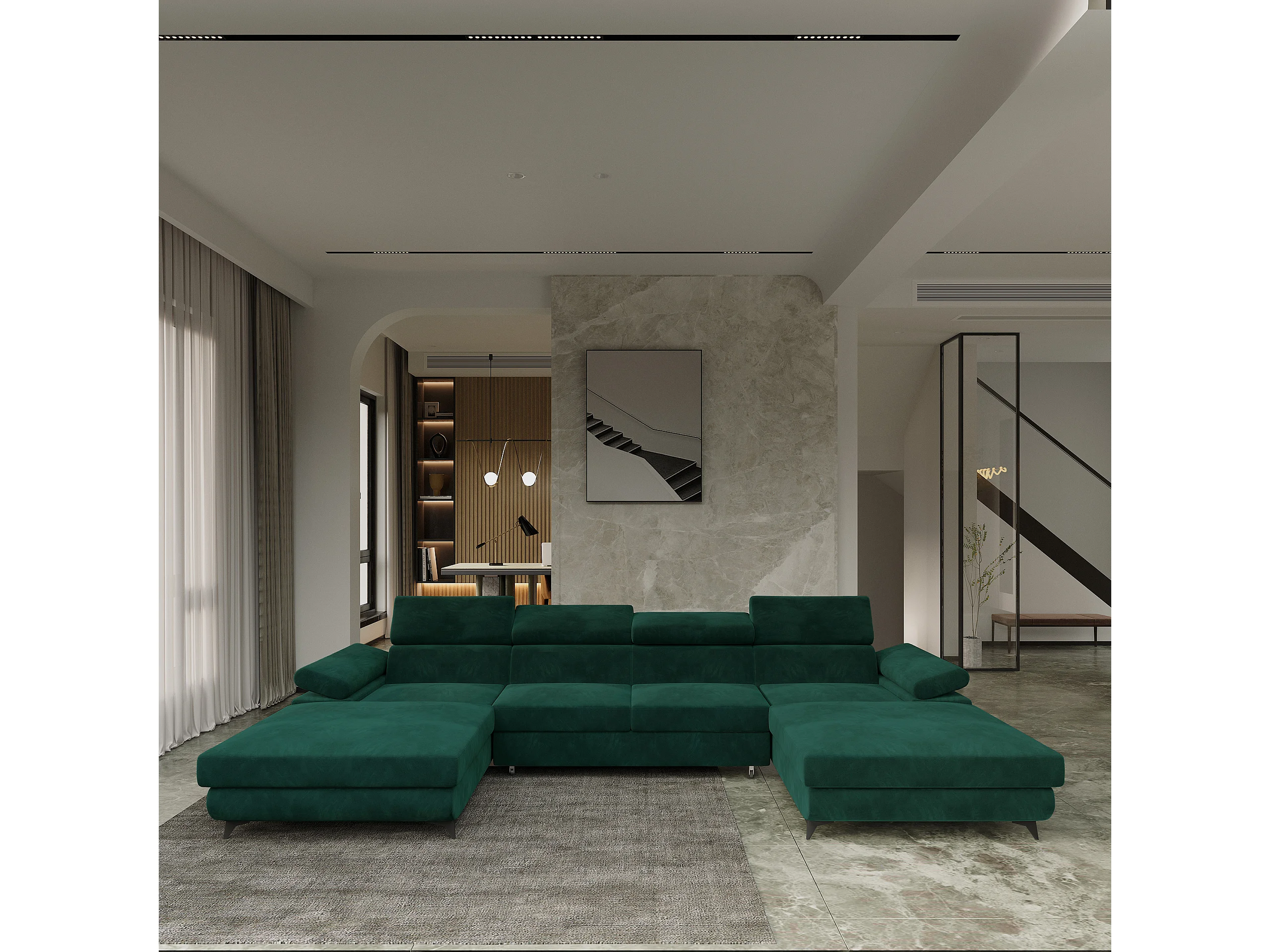Canapé d'angle DETTI Vert en velours avec fonction de couchage