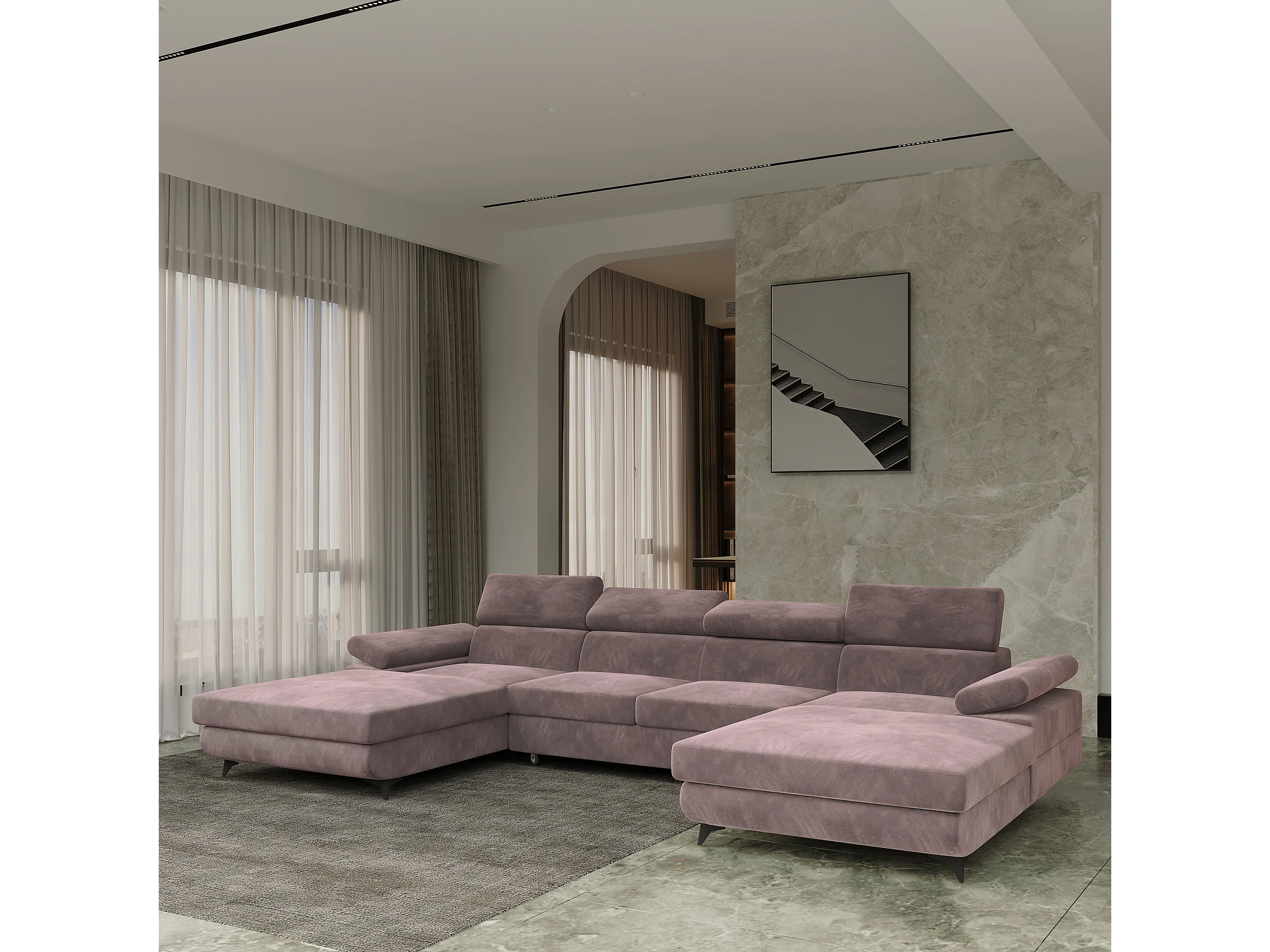 Canapé d'angle DETTI Violet en velours avec fonction de couchage