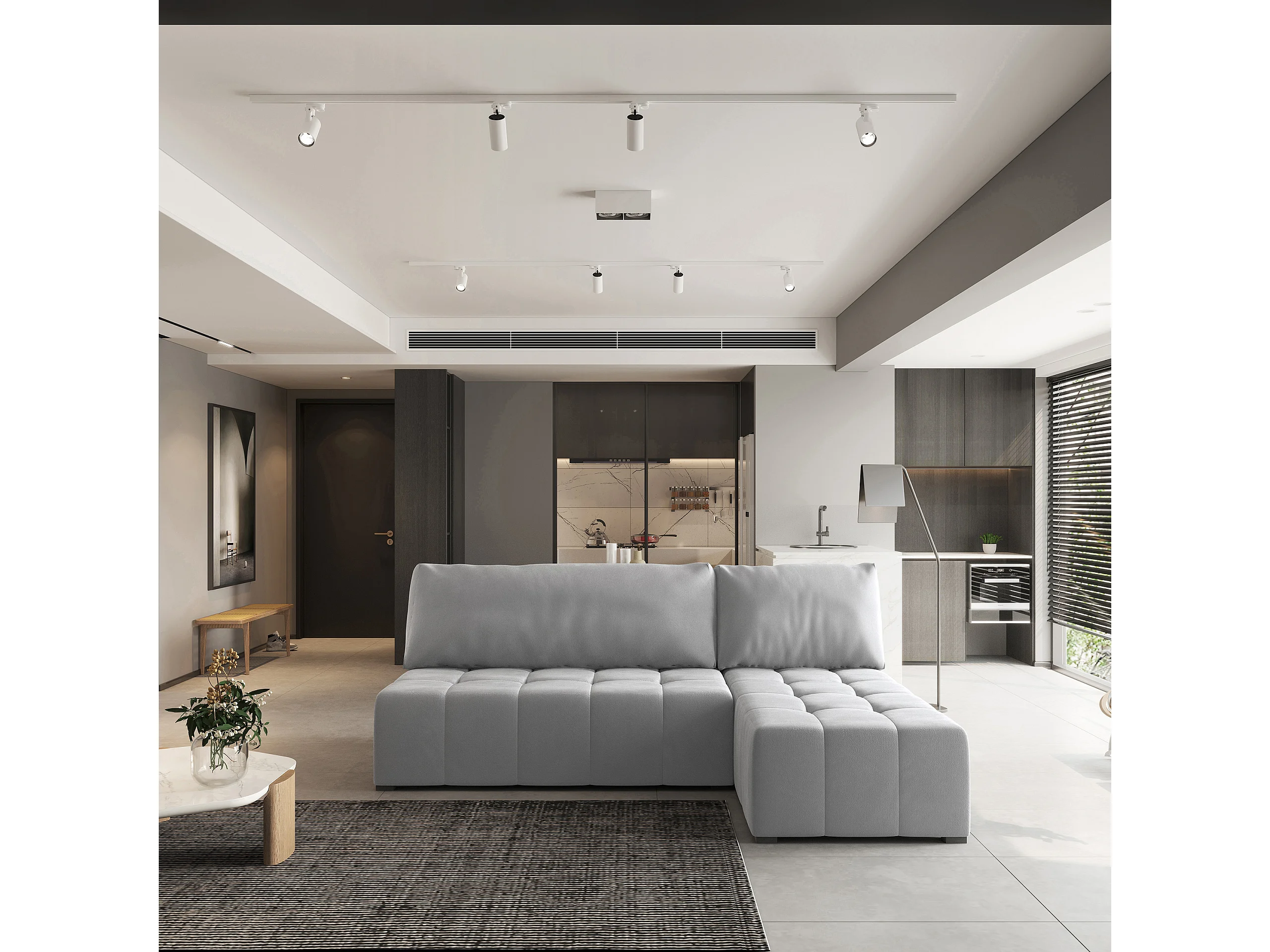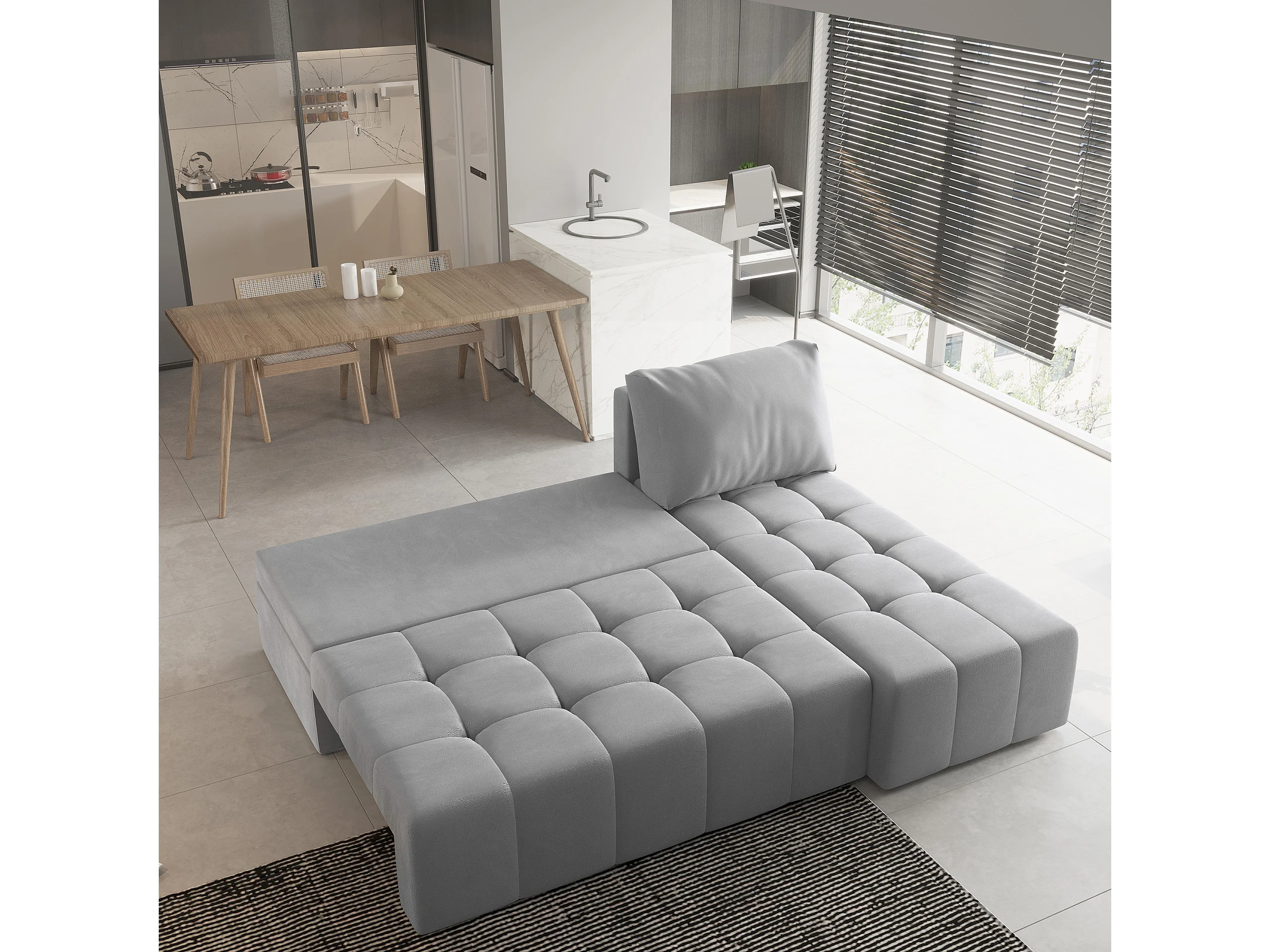 Canapé d'angle DOMIRA Gris clair en peluche avec fonction de couchage