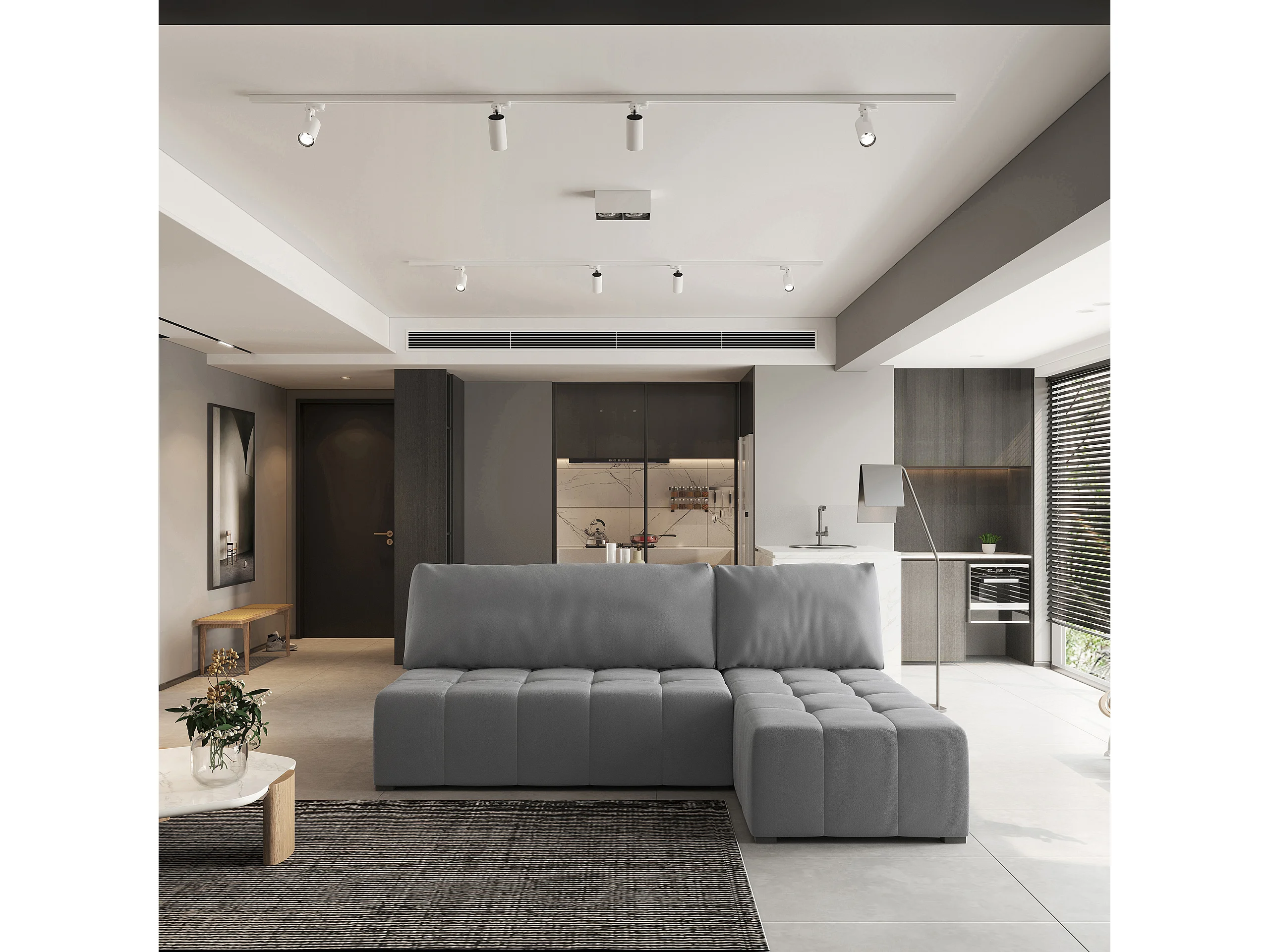 Canapé d'angle DOMIRA Gris en peluche avec fonction de couchage