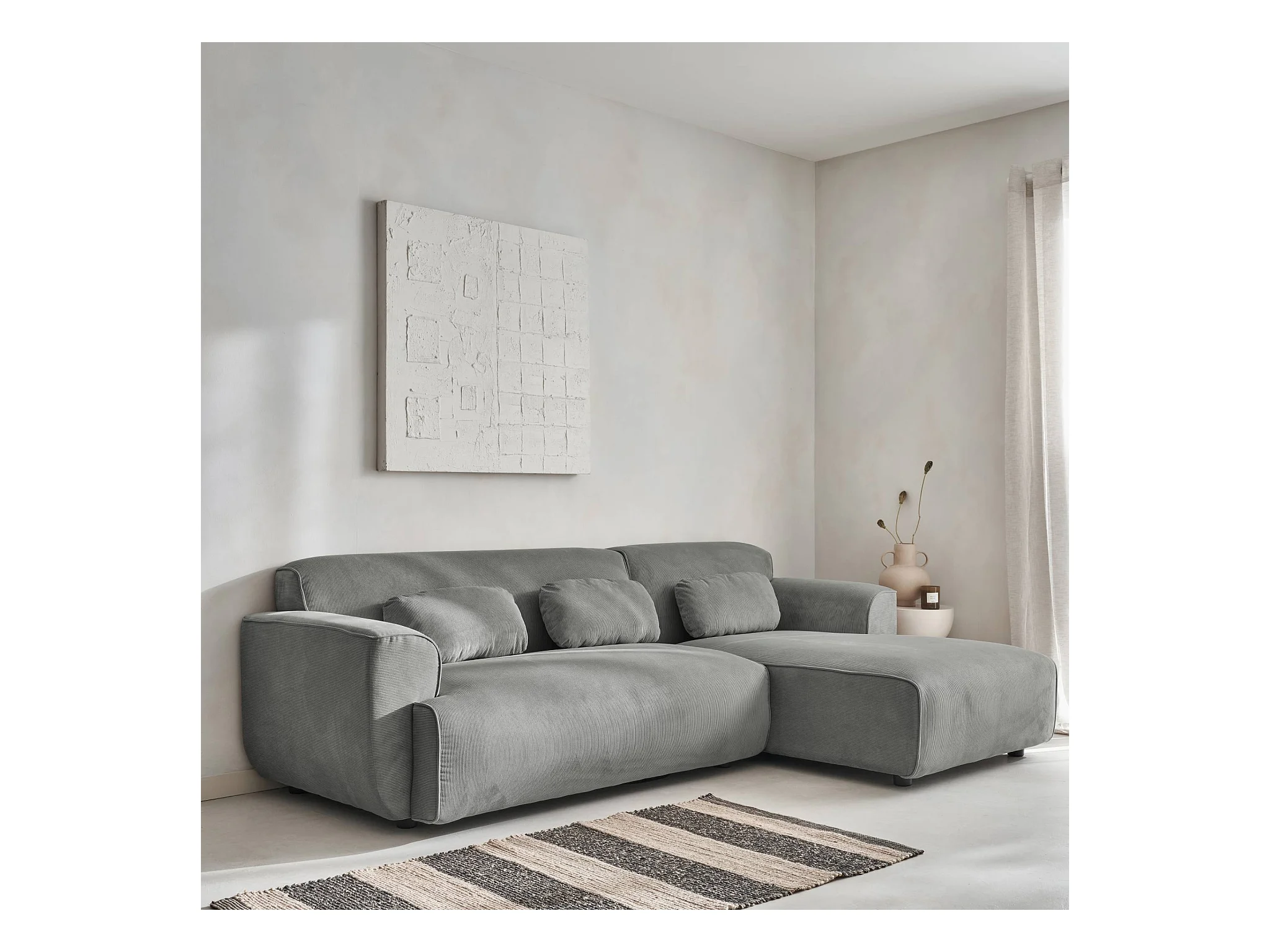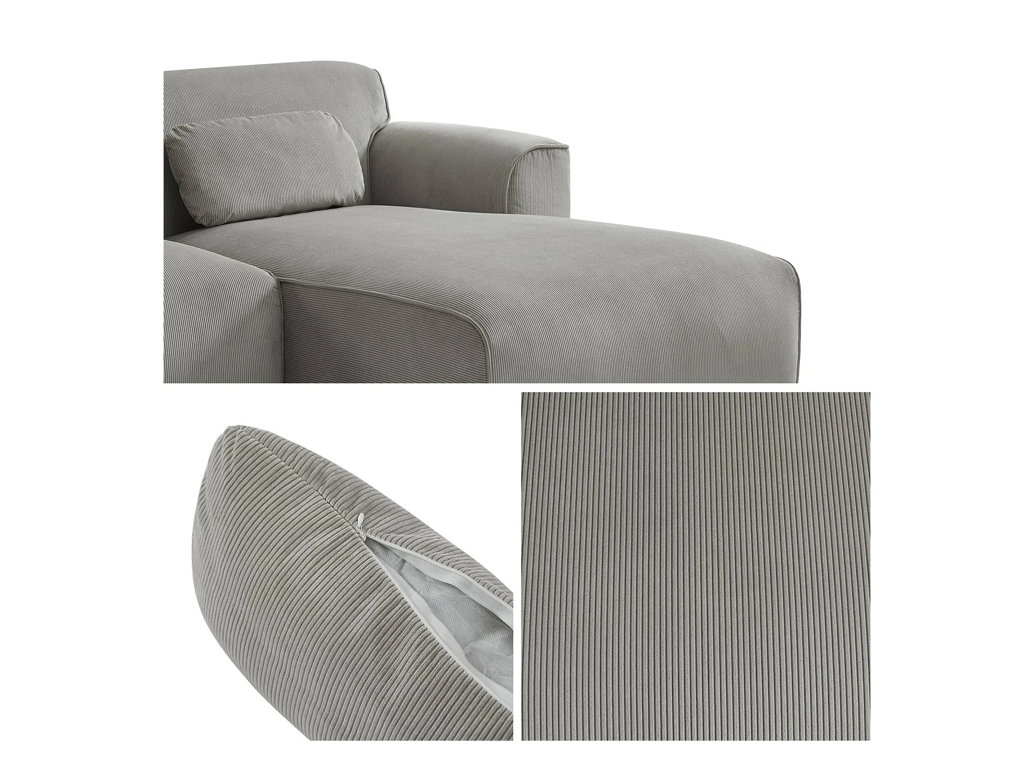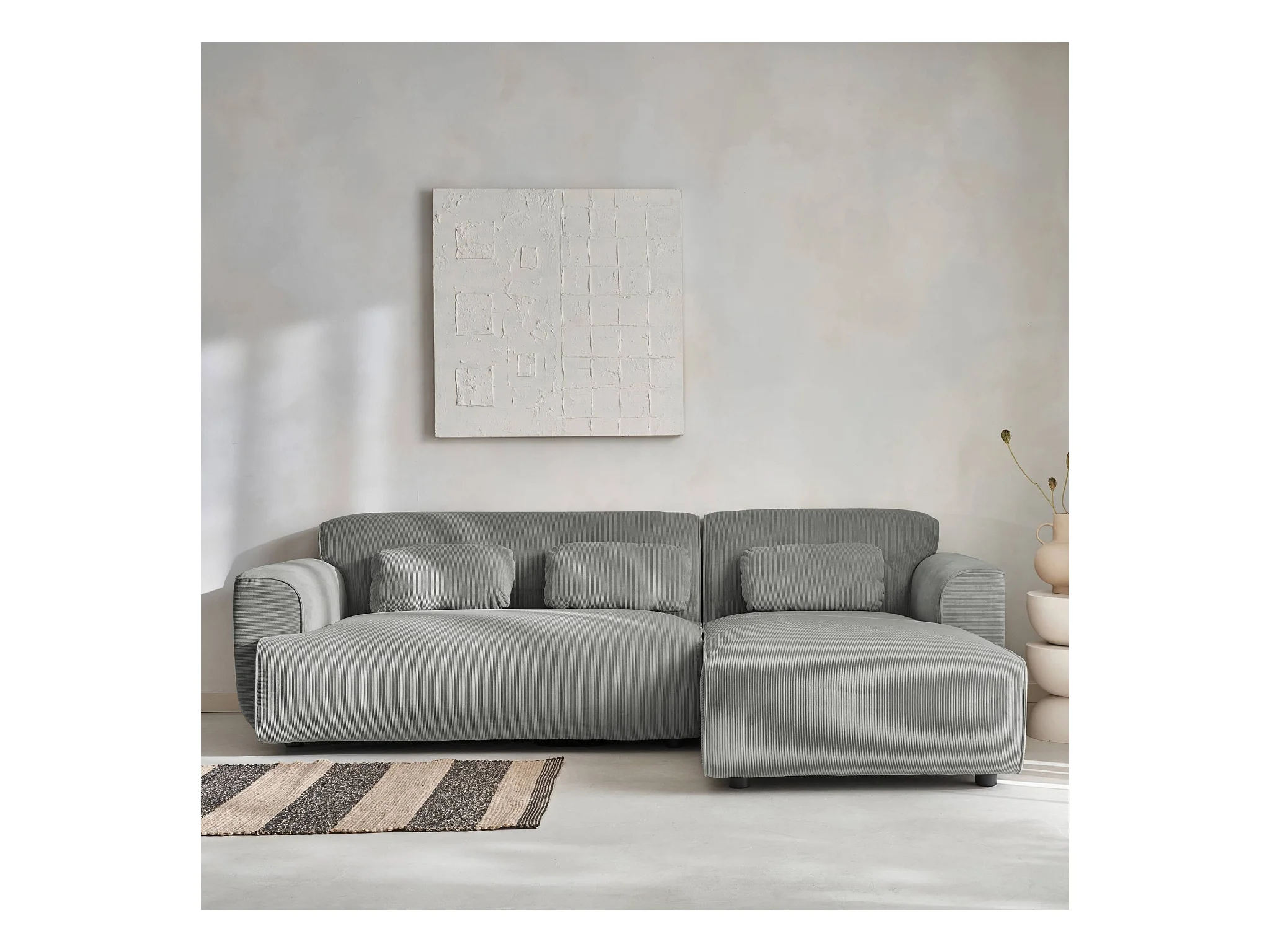 Canapé d'angle droit. 2 à 3 places. velours côtelé gris clair. Wallas L 196 x P 151 / 91 / x H 73cm