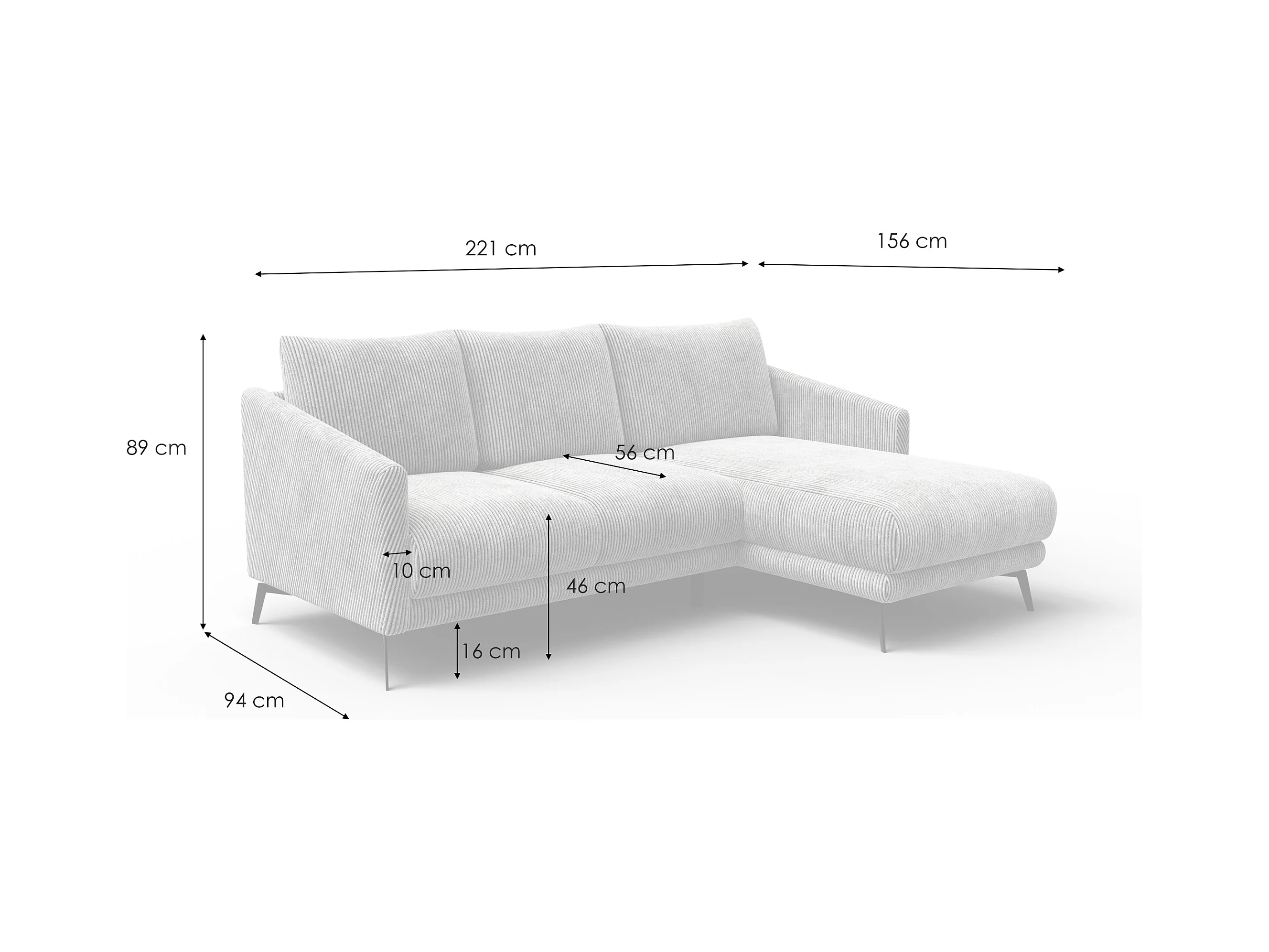 Canapé d'angle droit 3 places VILT, tissu gris clair