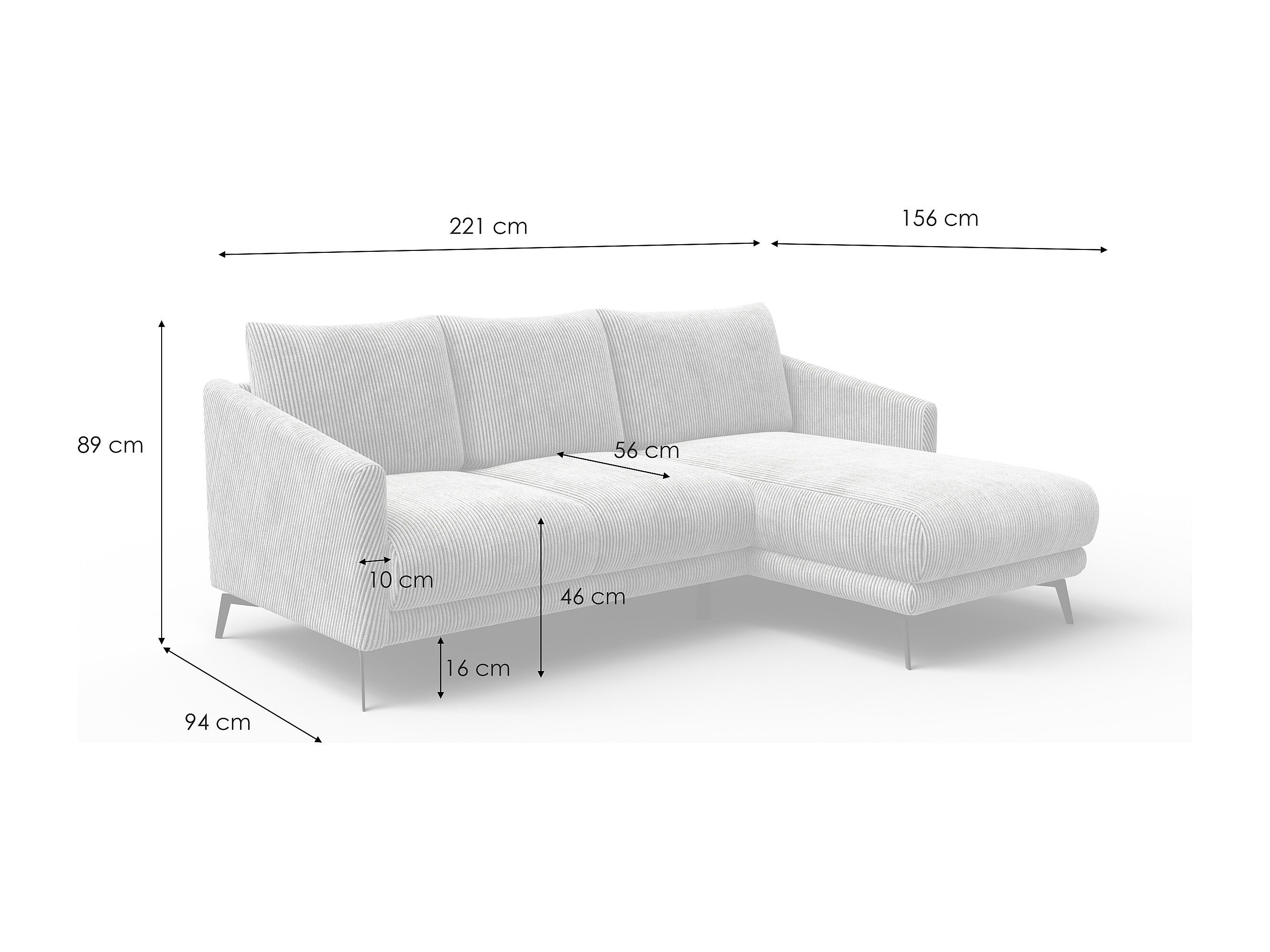 Canapé d'angle droit 3 places VILT, tissu taupe