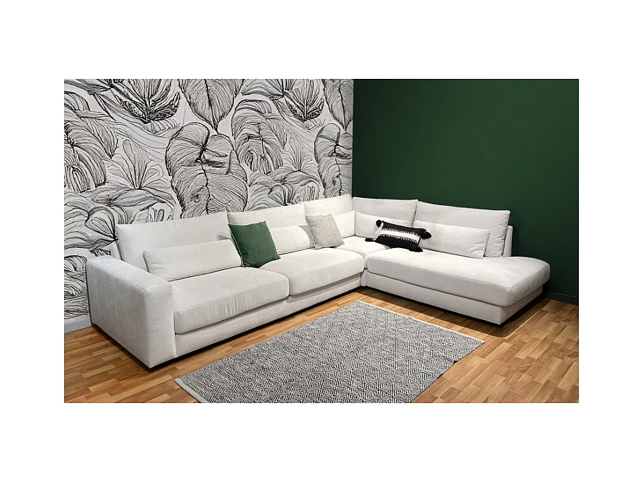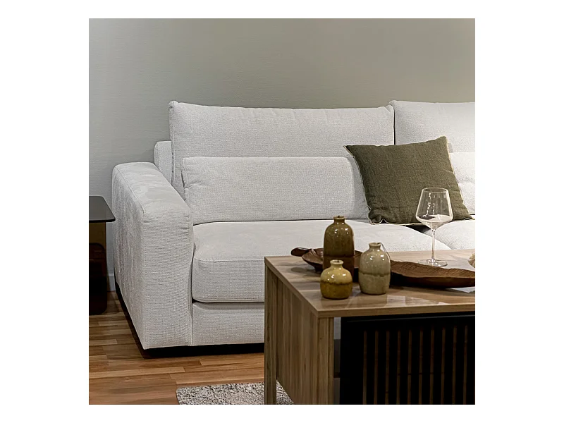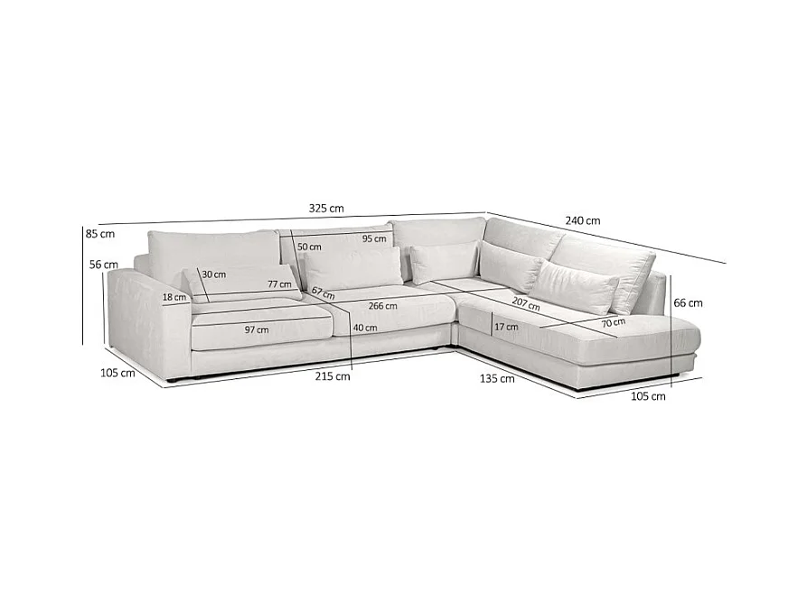 Canapé d'angle droit 325 cm en tissu microfibre ivoire - CECILE