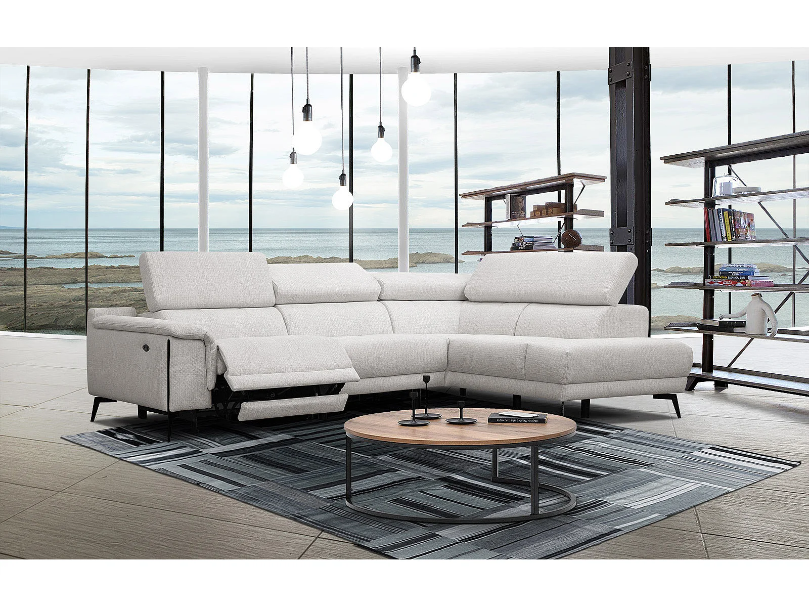 Canapé d'angle droit 4 places avec un relax électrique tissu écru - Matera