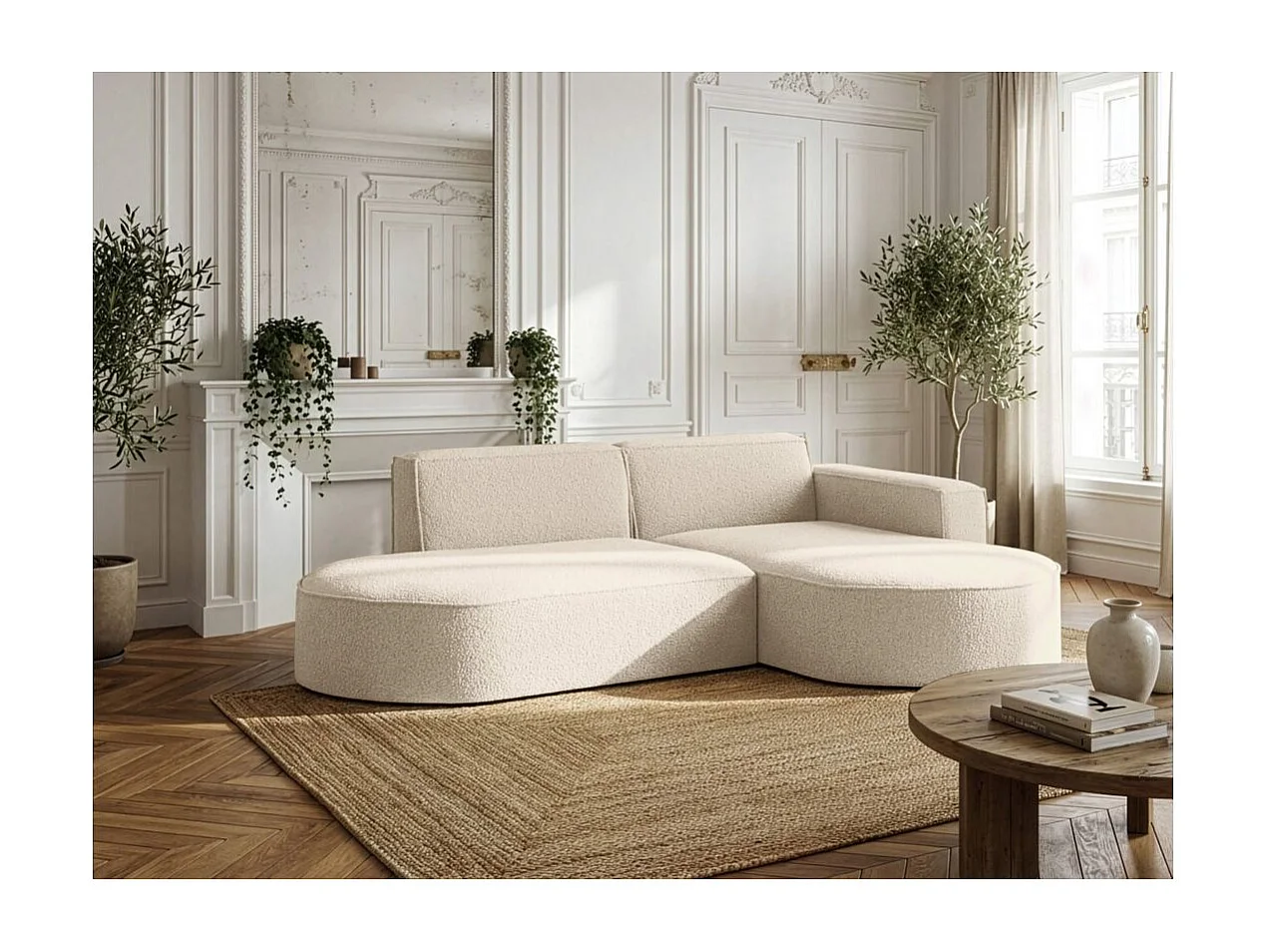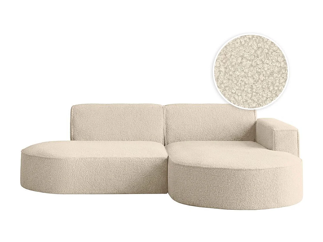 Canapé d'angle droit 4 places MARLA en tissu bouclette - Blanc