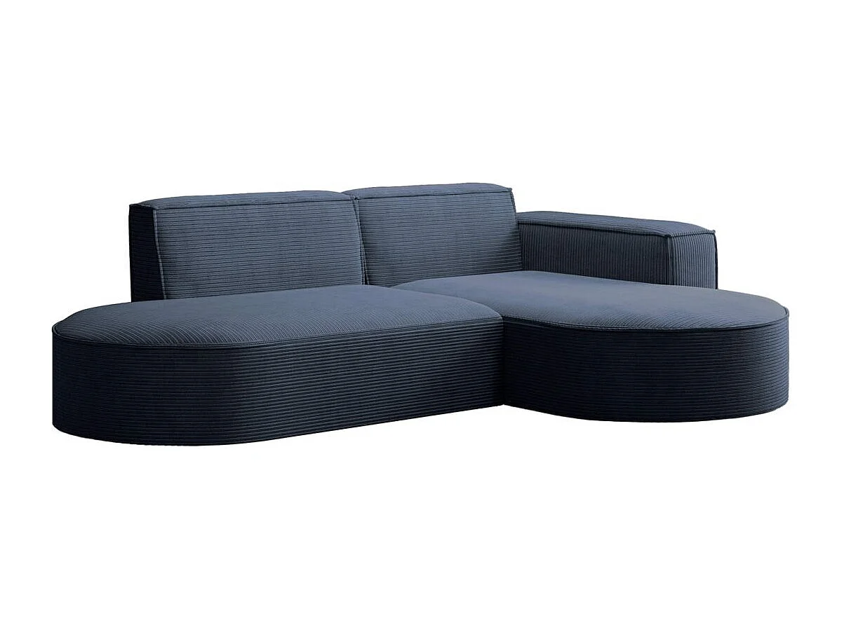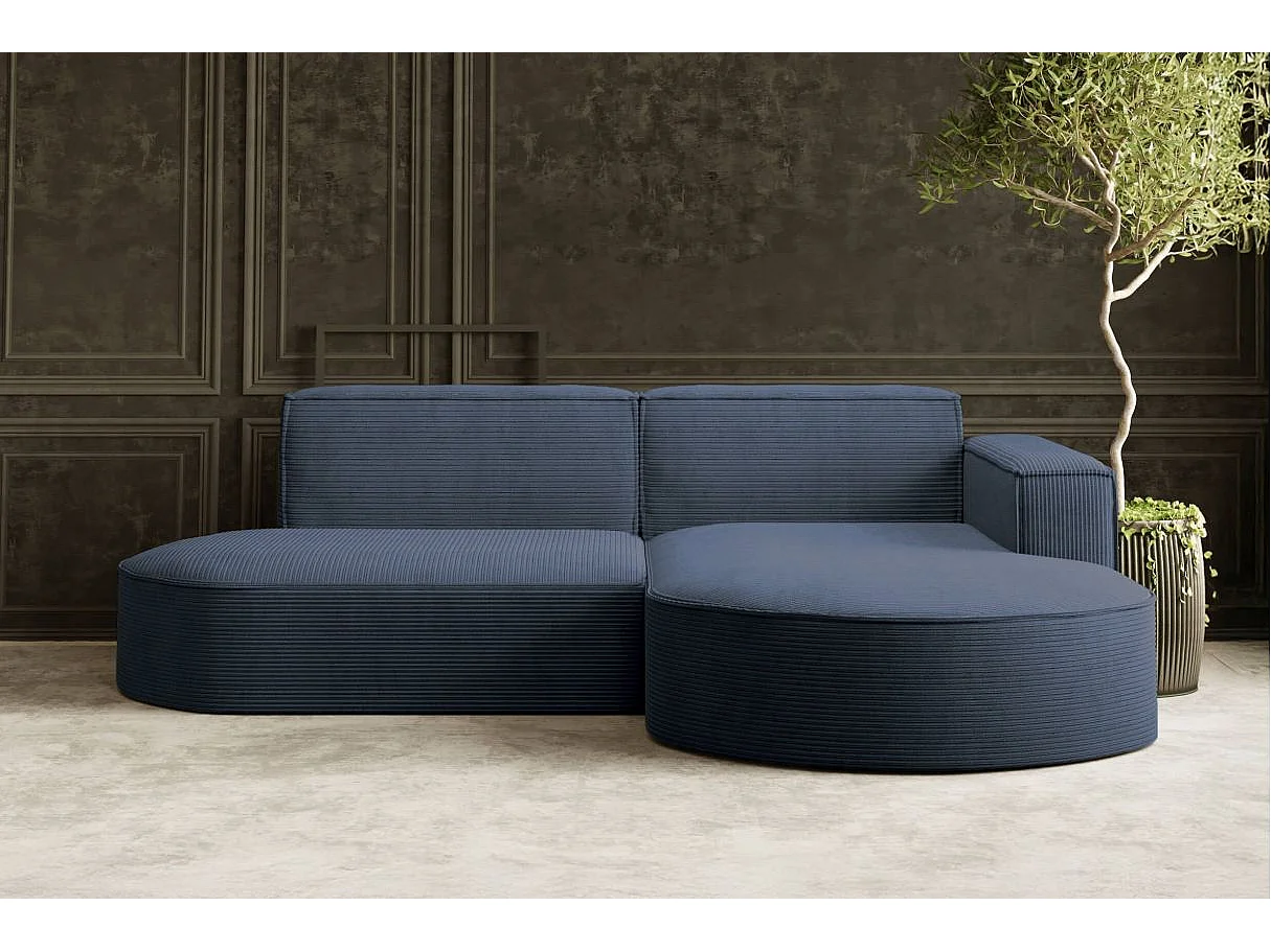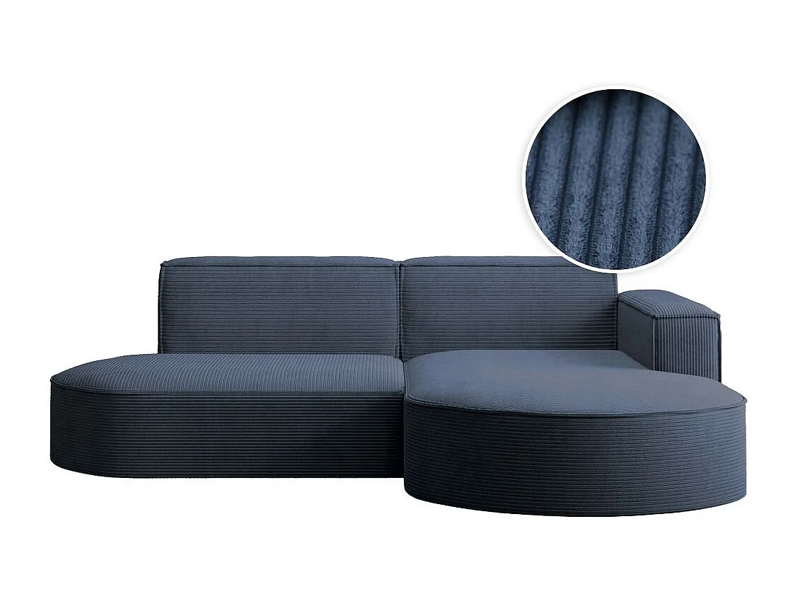 Canapé d'angle droit 4 places MARLA en velours côtelé - Bleu foncé