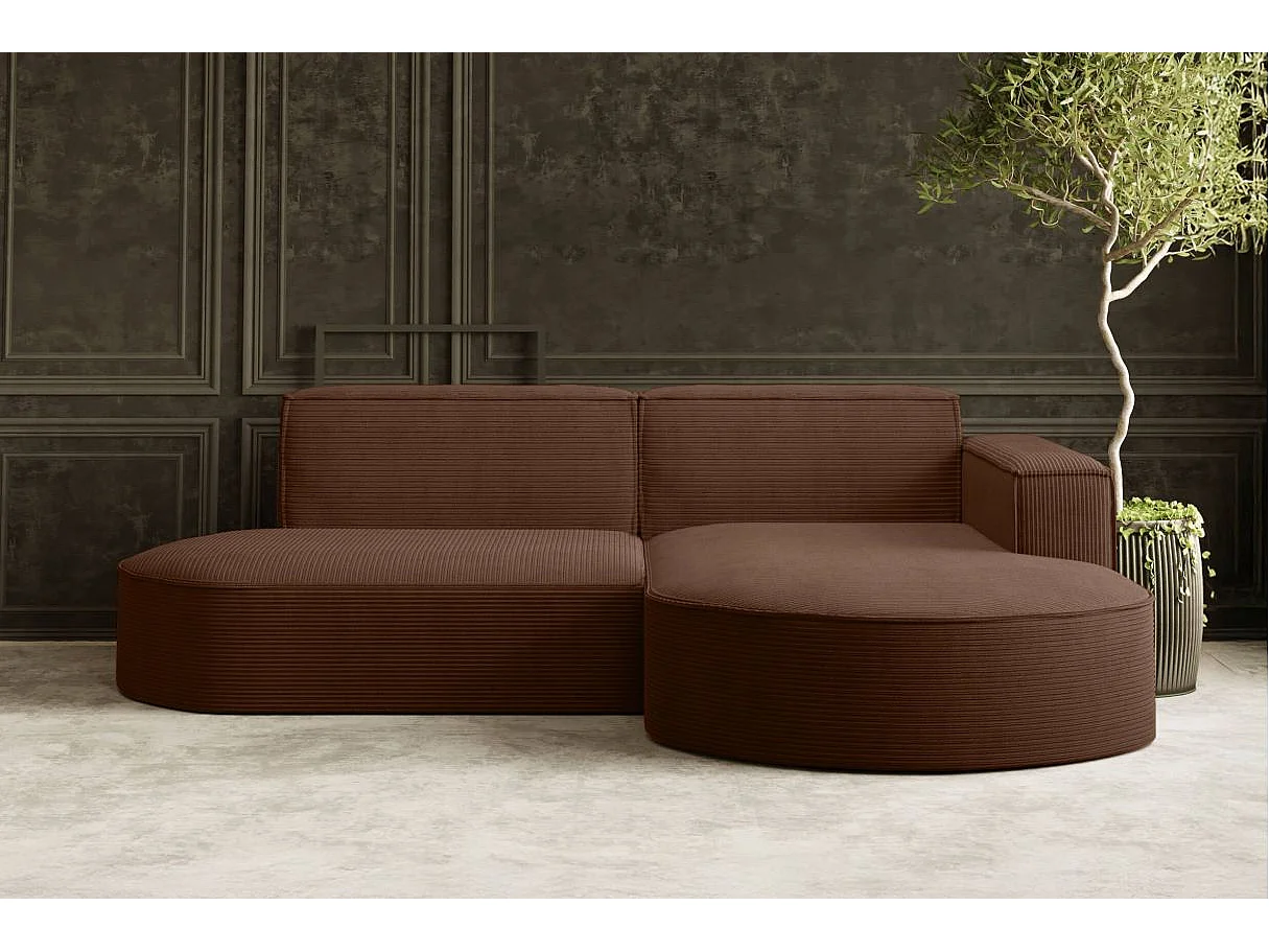 Canapé d'angle droit 4 places MARLA en velours côtelé - Marron