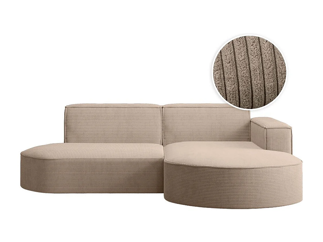 Canapé d'angle droit 4 places MARLA en velours côtelé - Taupe