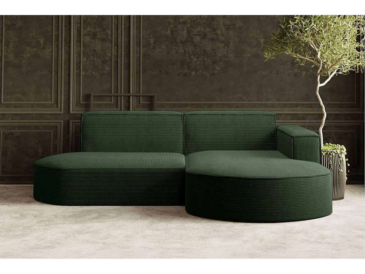 Canapé d'angle droit 4 places MARLA en velours côtelé - Vert foncé