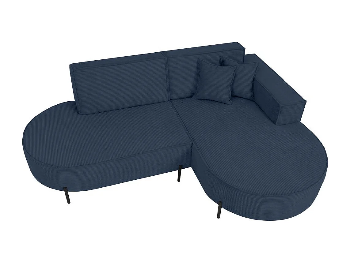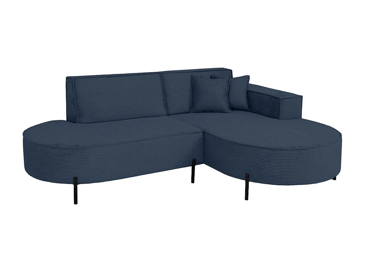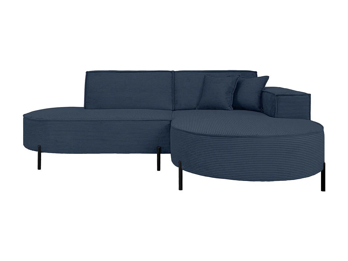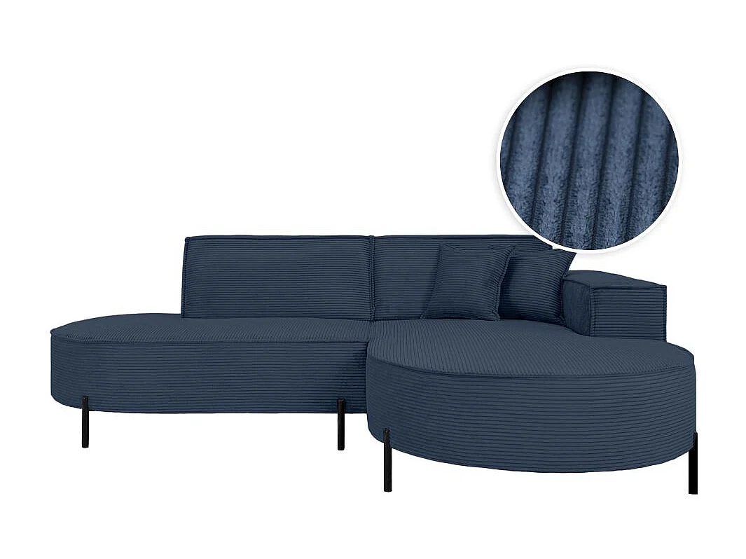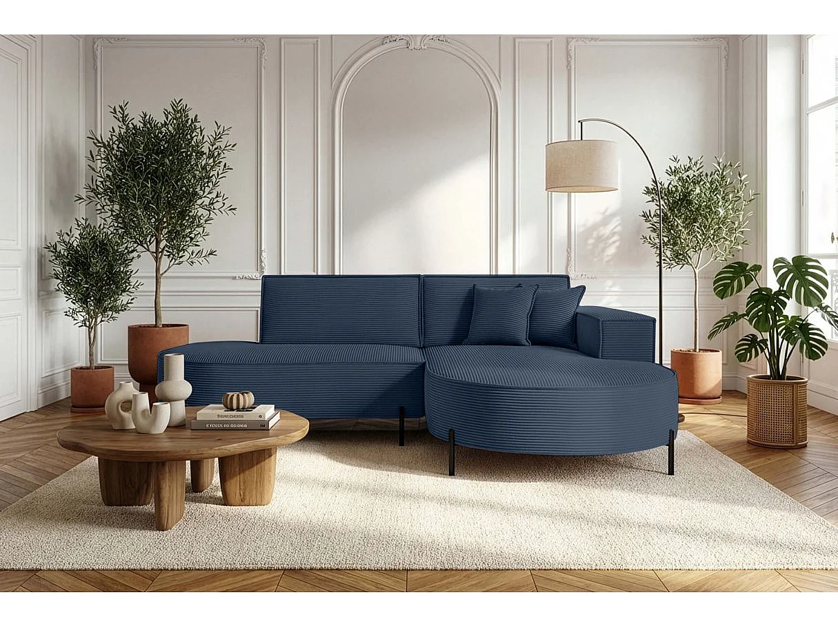 Canapé d'angle droit 4 places MARLON en velours côtelé - Bleu foncé