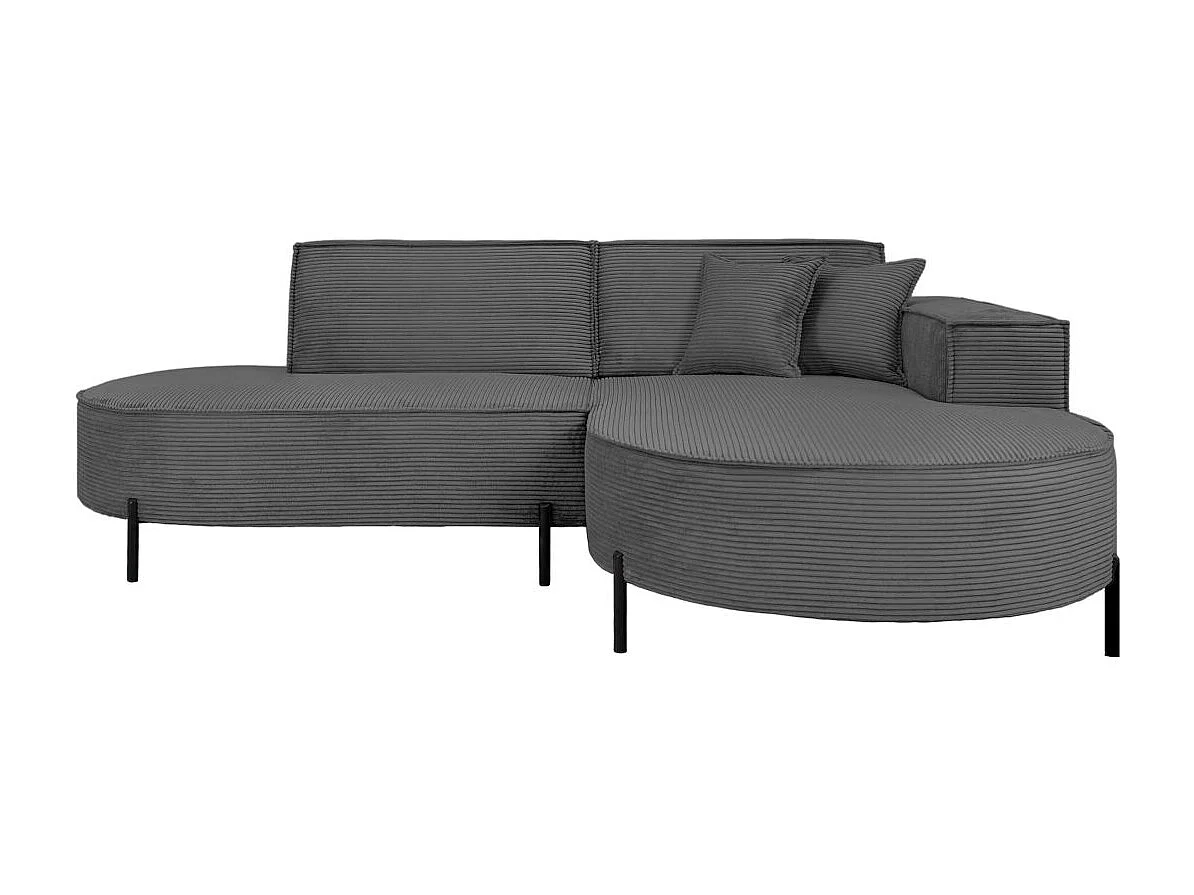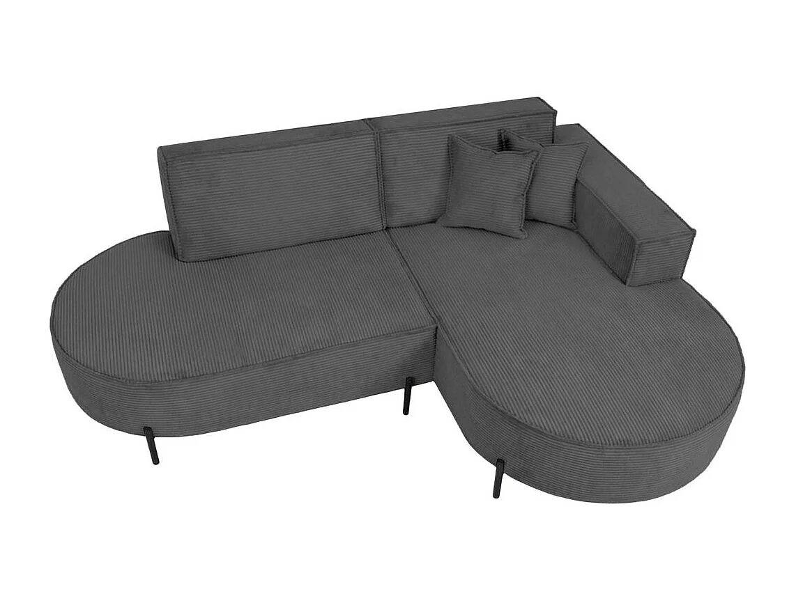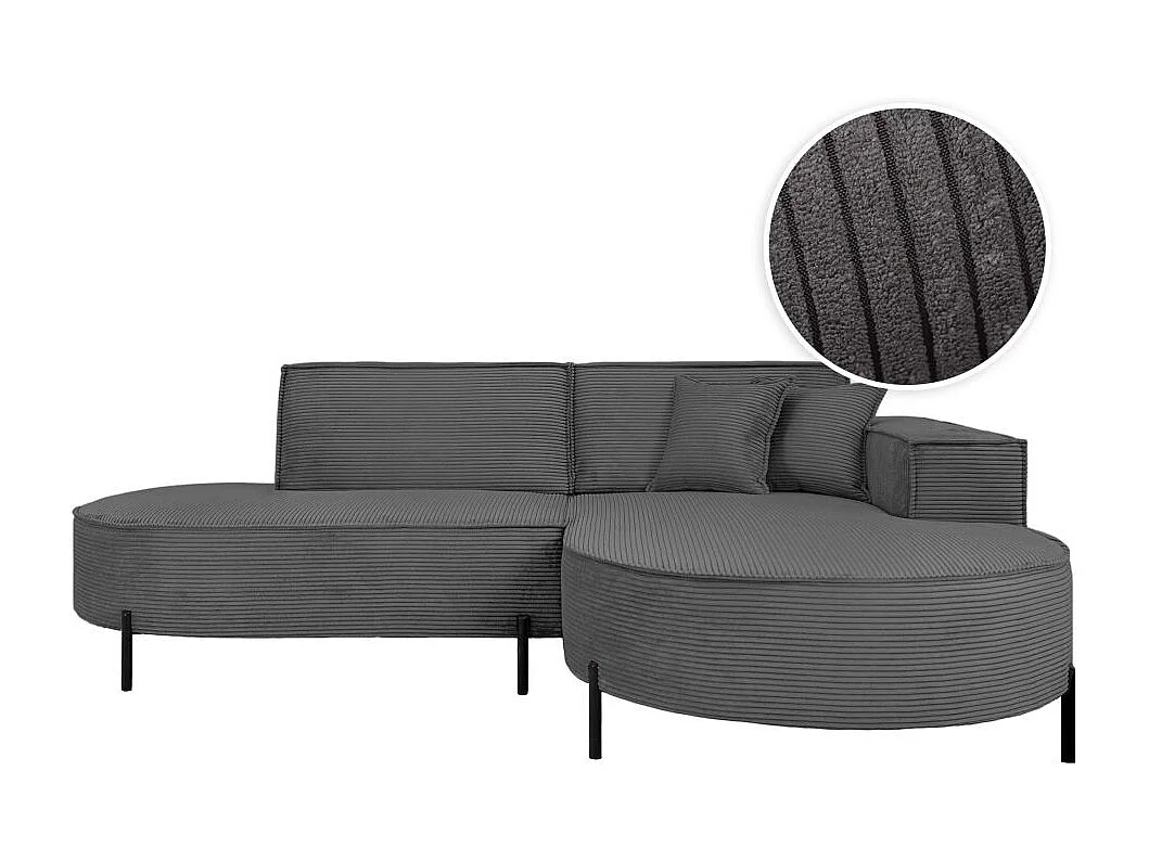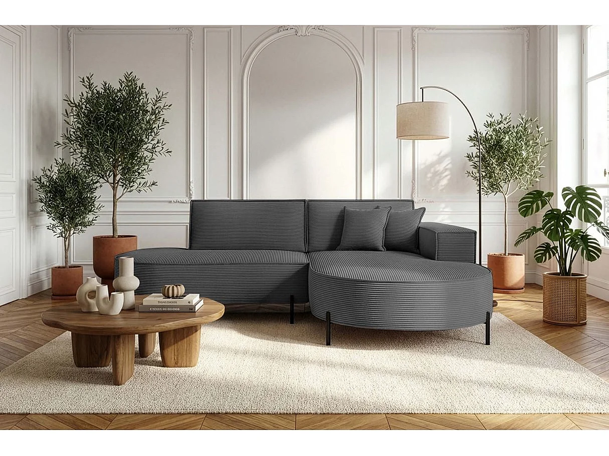 Canapé d'angle droit 4 places MARLON en velours côtelé - Gris