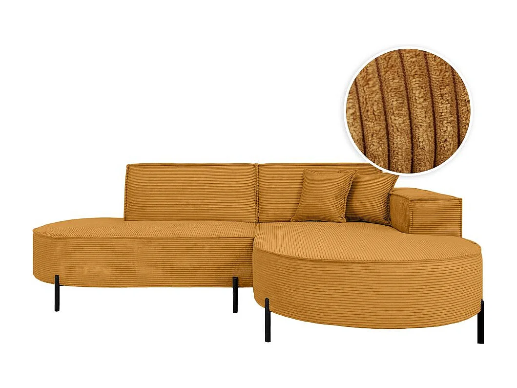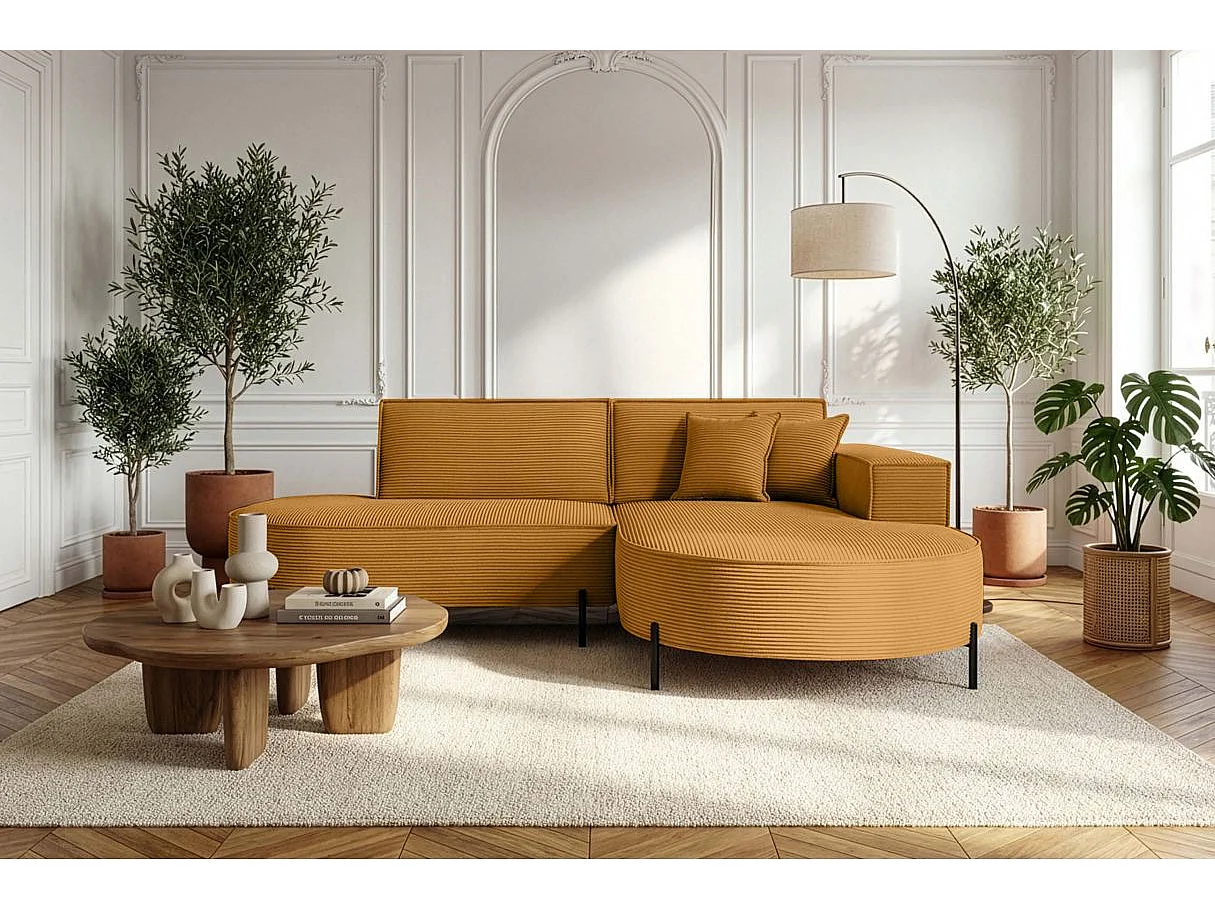 Canapé d'angle droit 4 places MARLON en velours côtelé - Jaune