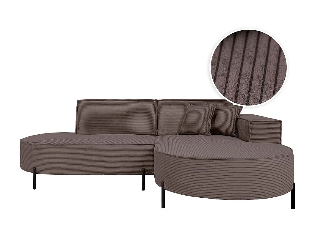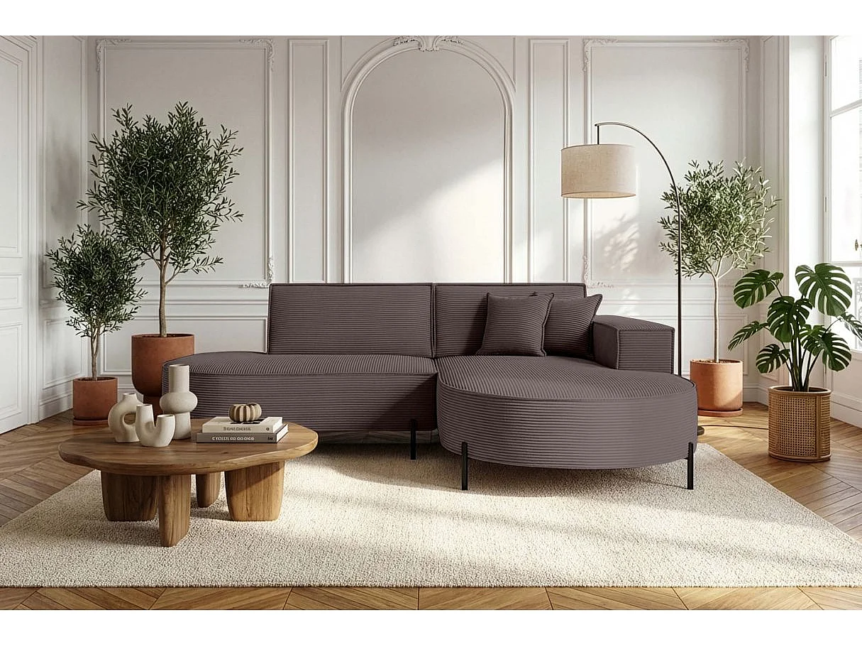 Canapé d'angle droit 4 places MARLON en velours côtelé - Marron glacé