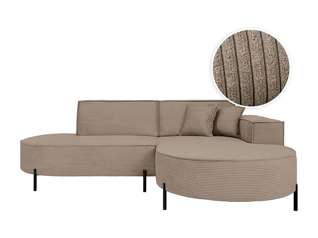 Canapé d'angle droit 4 places MARLON en velours côtelé - Taupe