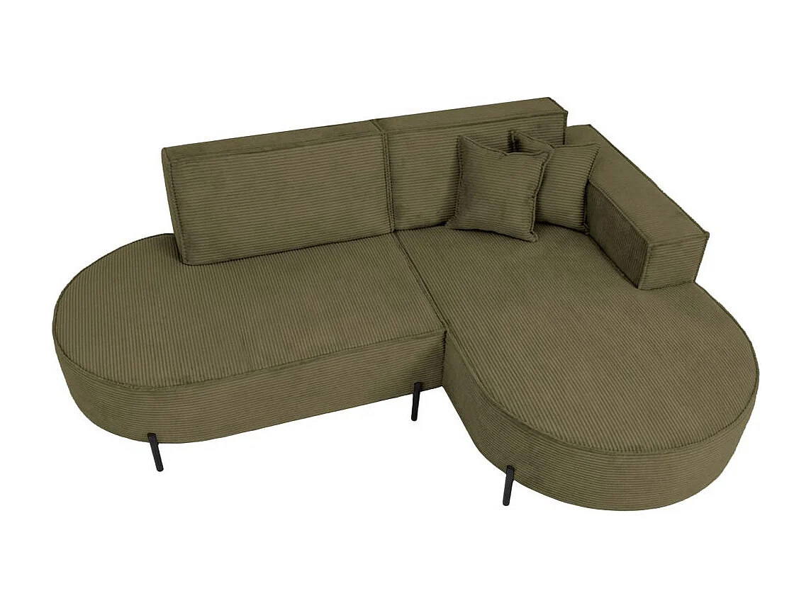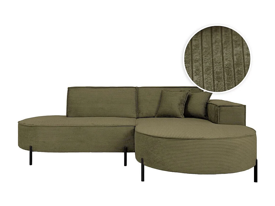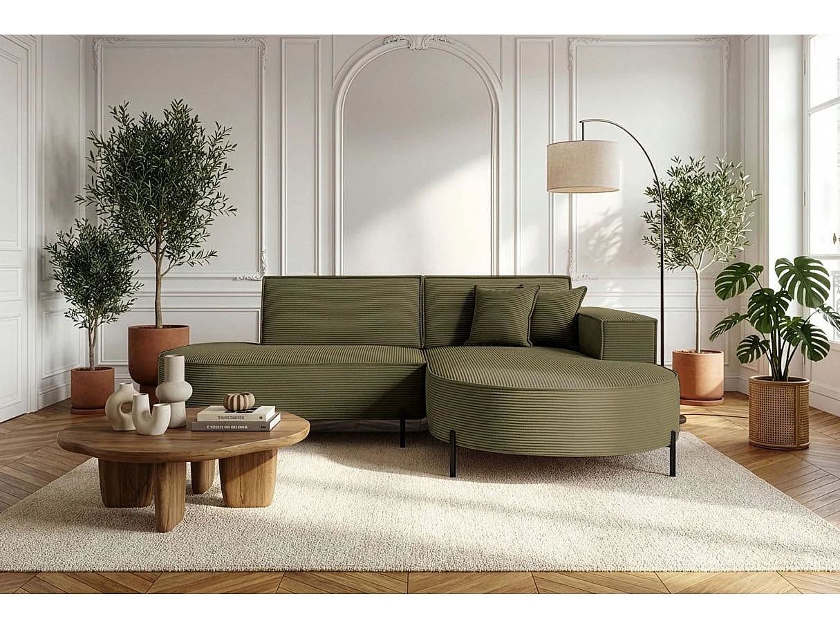 Canapé d'angle droit 4 places MARLON en velours côtelé - Vert kaki