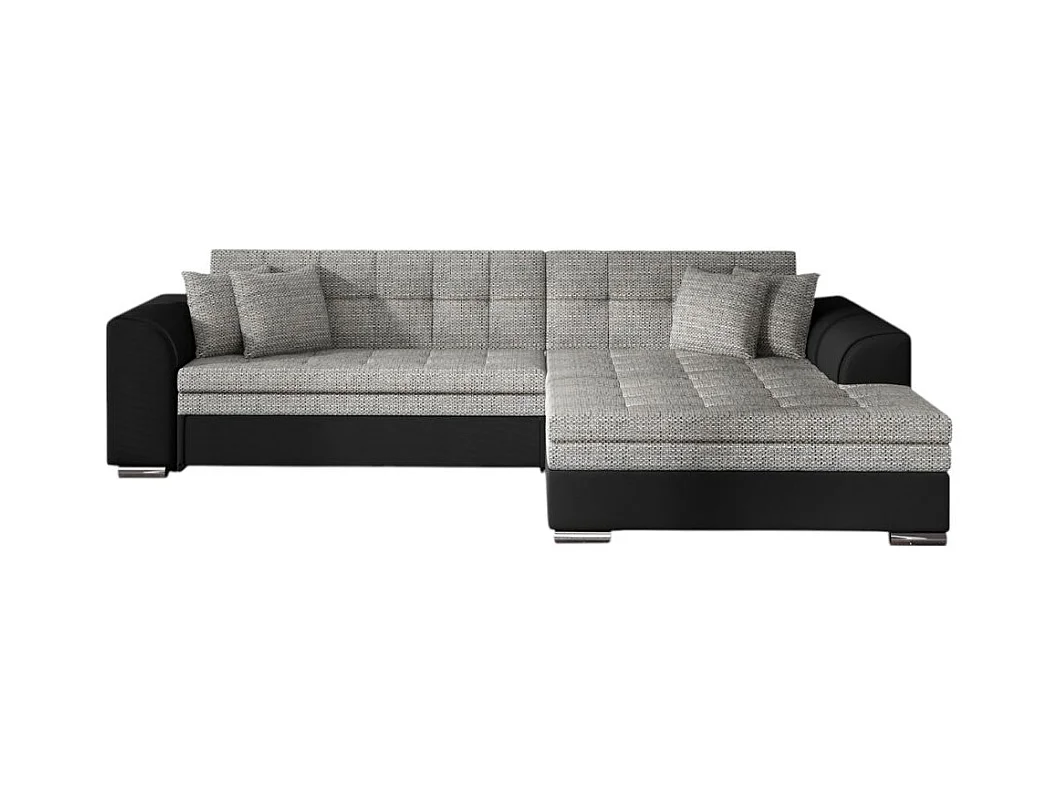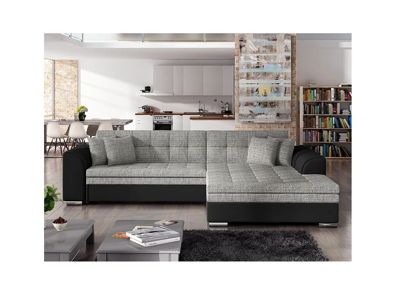 Canapé d'angle droit 4 places NILA convertible en simili et tissu - Noir/Gris clair