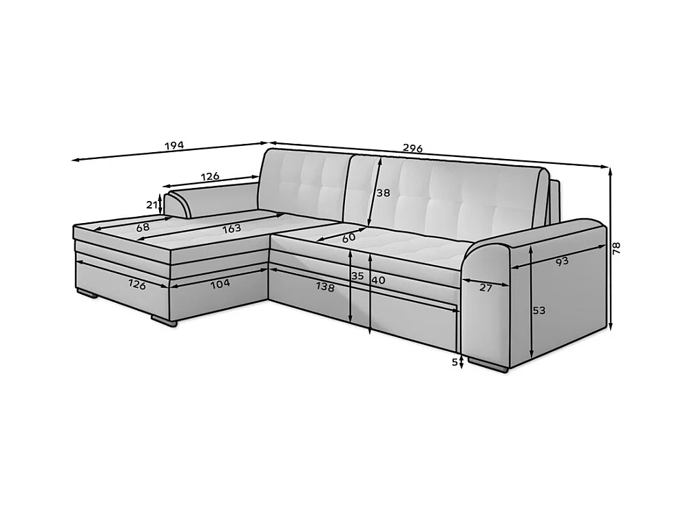 Canapé d'angle droit 4 places NILA convertible en tissu - Gris anthracite