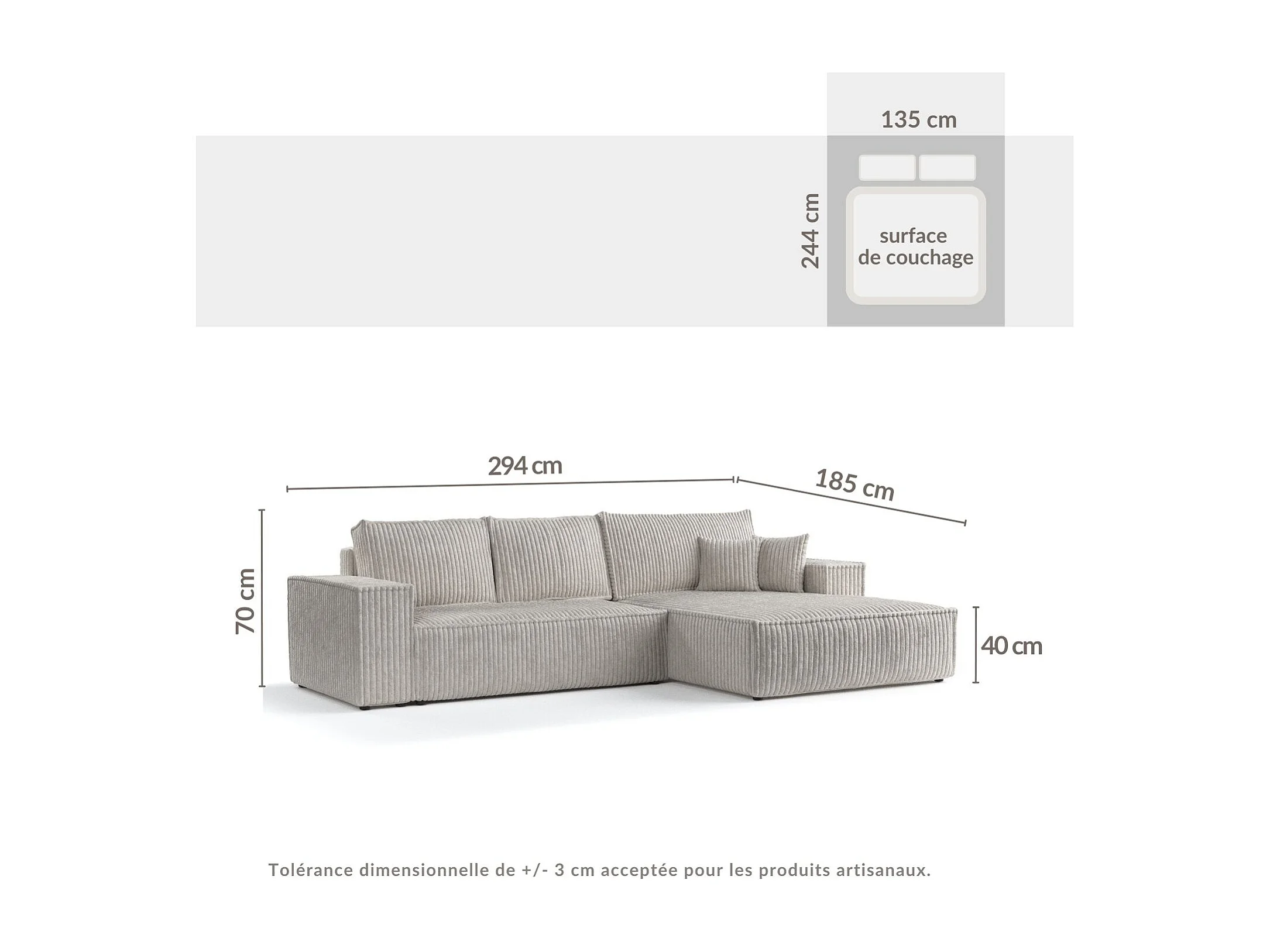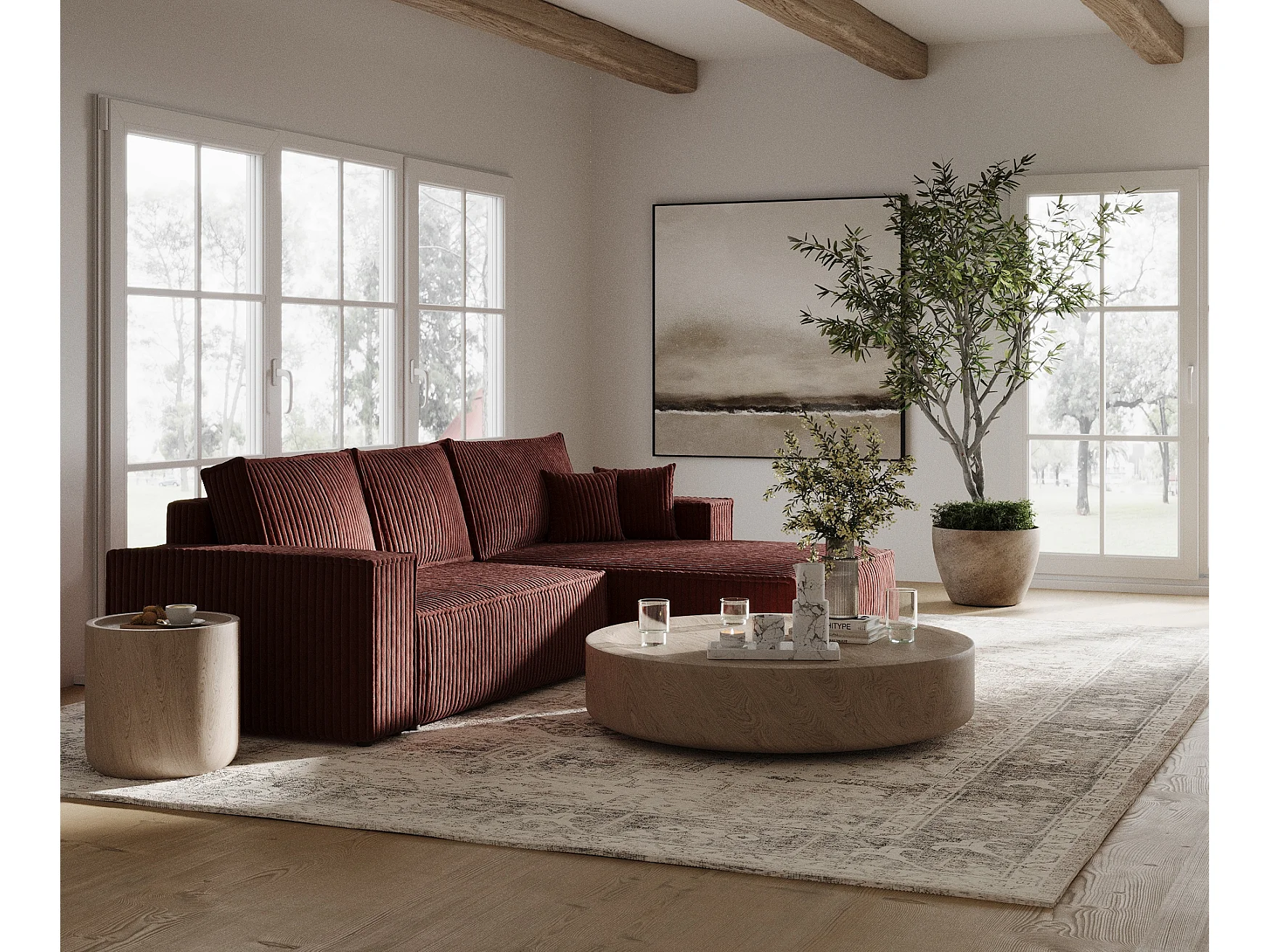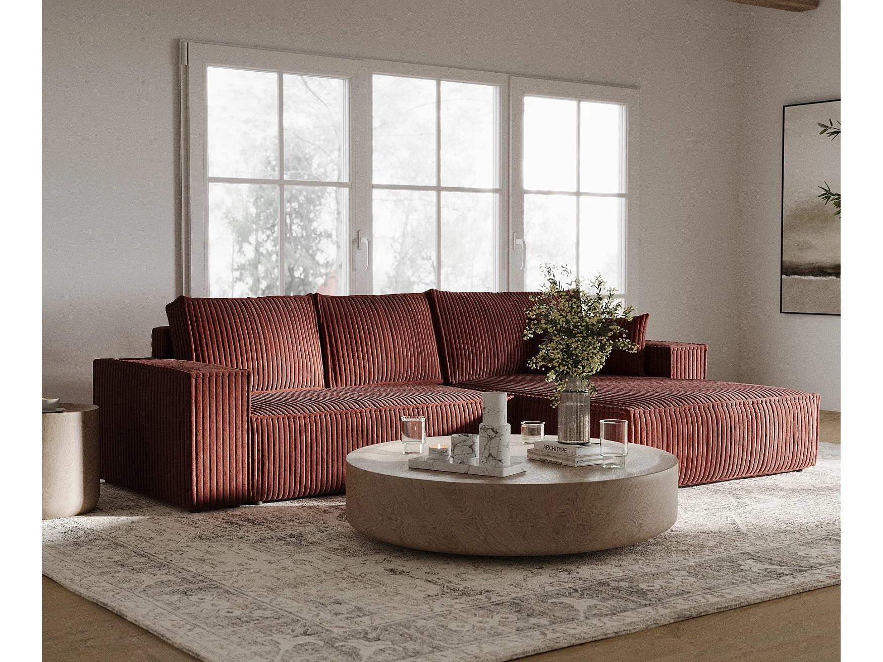 Canapé d'angle droit 5 places en tissu en peluche couleur brique MAZE